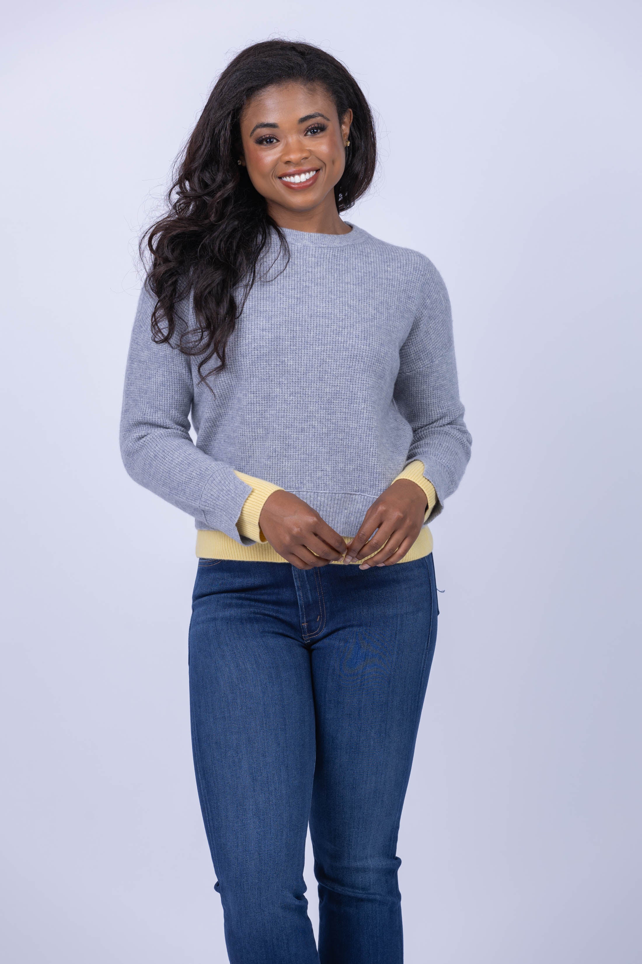 Breathe personality into your wardrobe with the DH Double Cuff Crew Neck Sweater in Quarry Combo. With its eye-catching yellow accents, you'll stand out from the monochrome crowd, giving your style an exciting, on-trend update. Dare to be different!