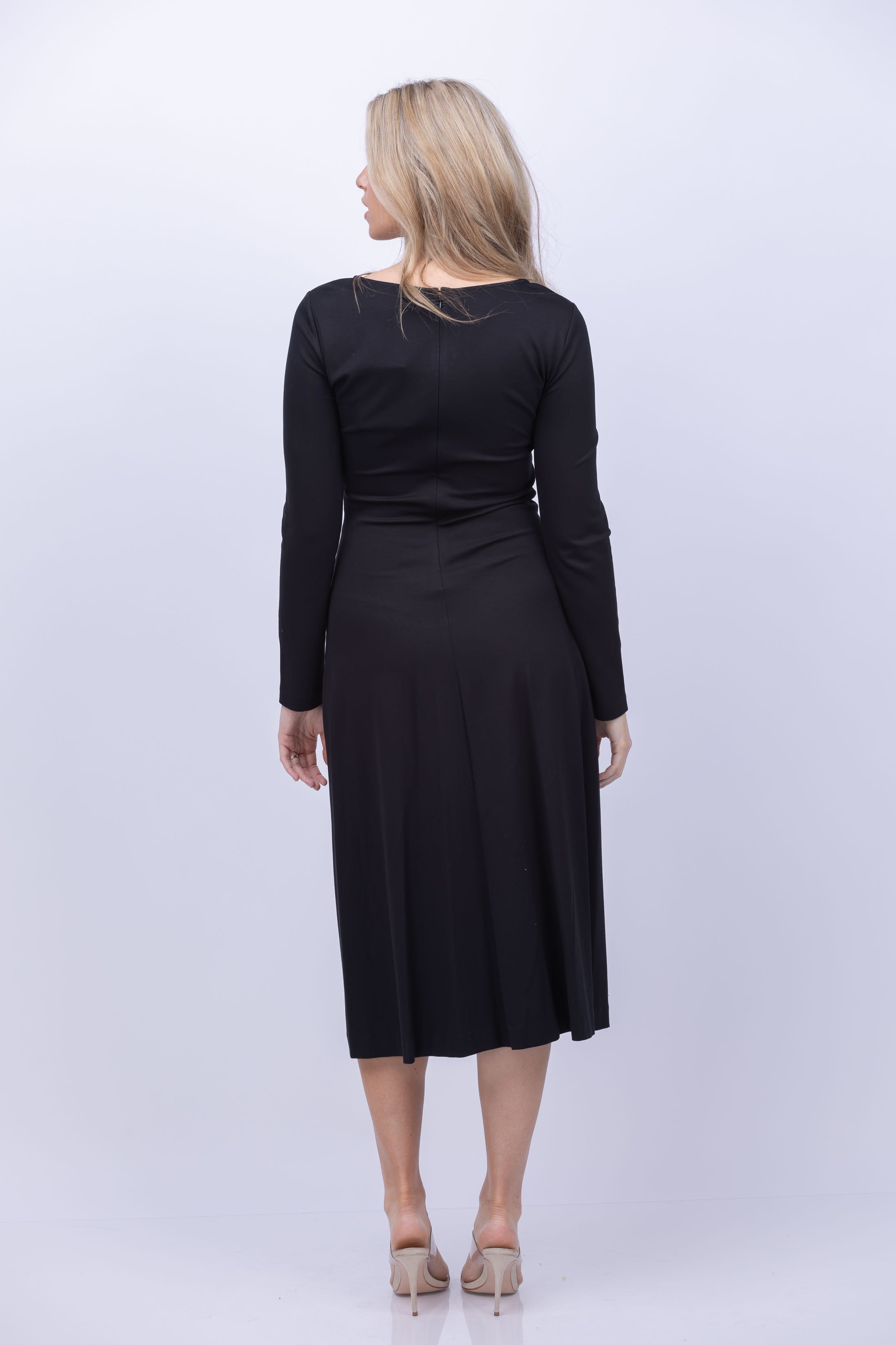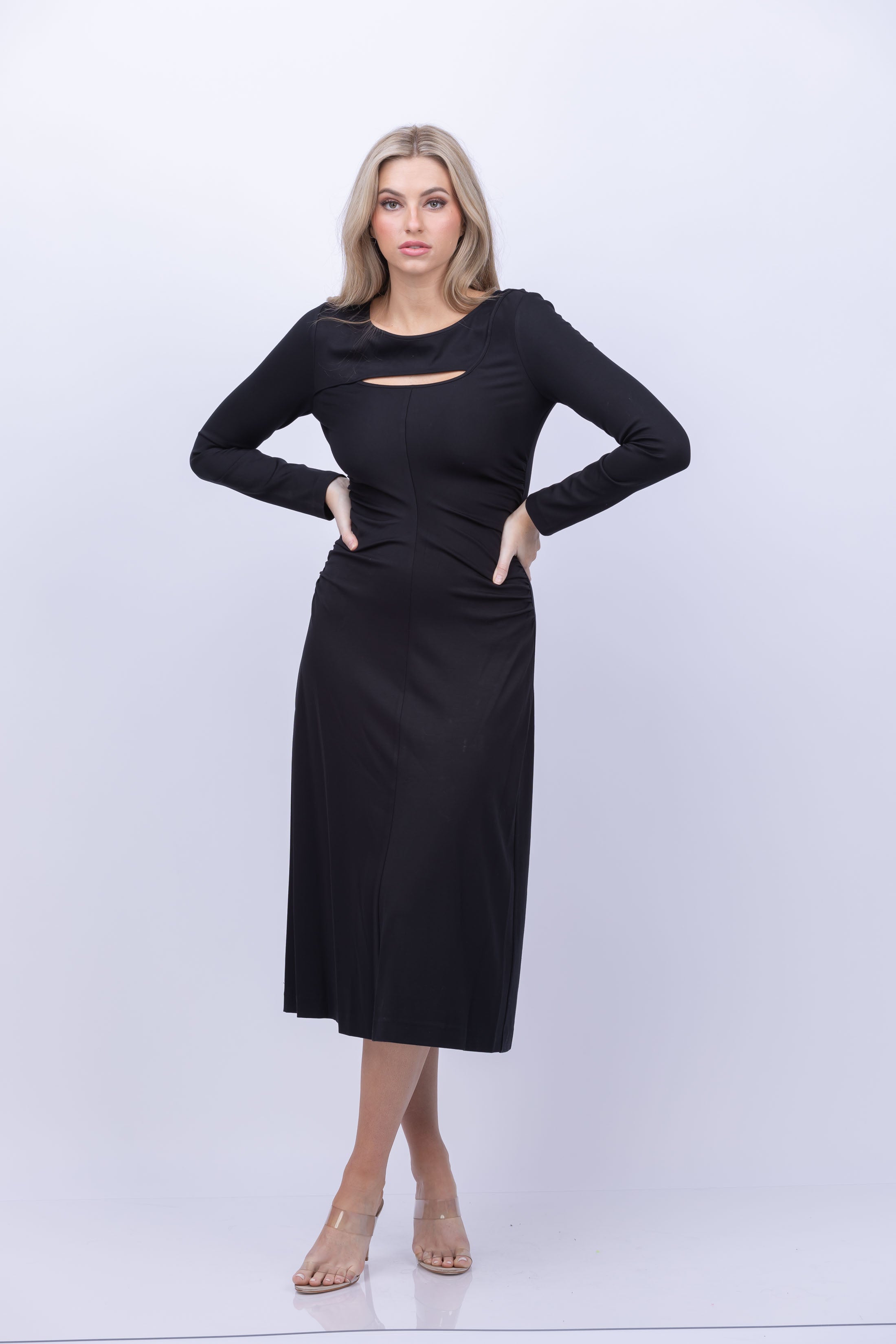 A chic LBD, the Andreina midi dress is cut from a substantial jersey - perfect for occasions in the colder months. This piece has long sleeves, cut-out detail at the neckline, and a close fit that flows into an A-line silhouette.