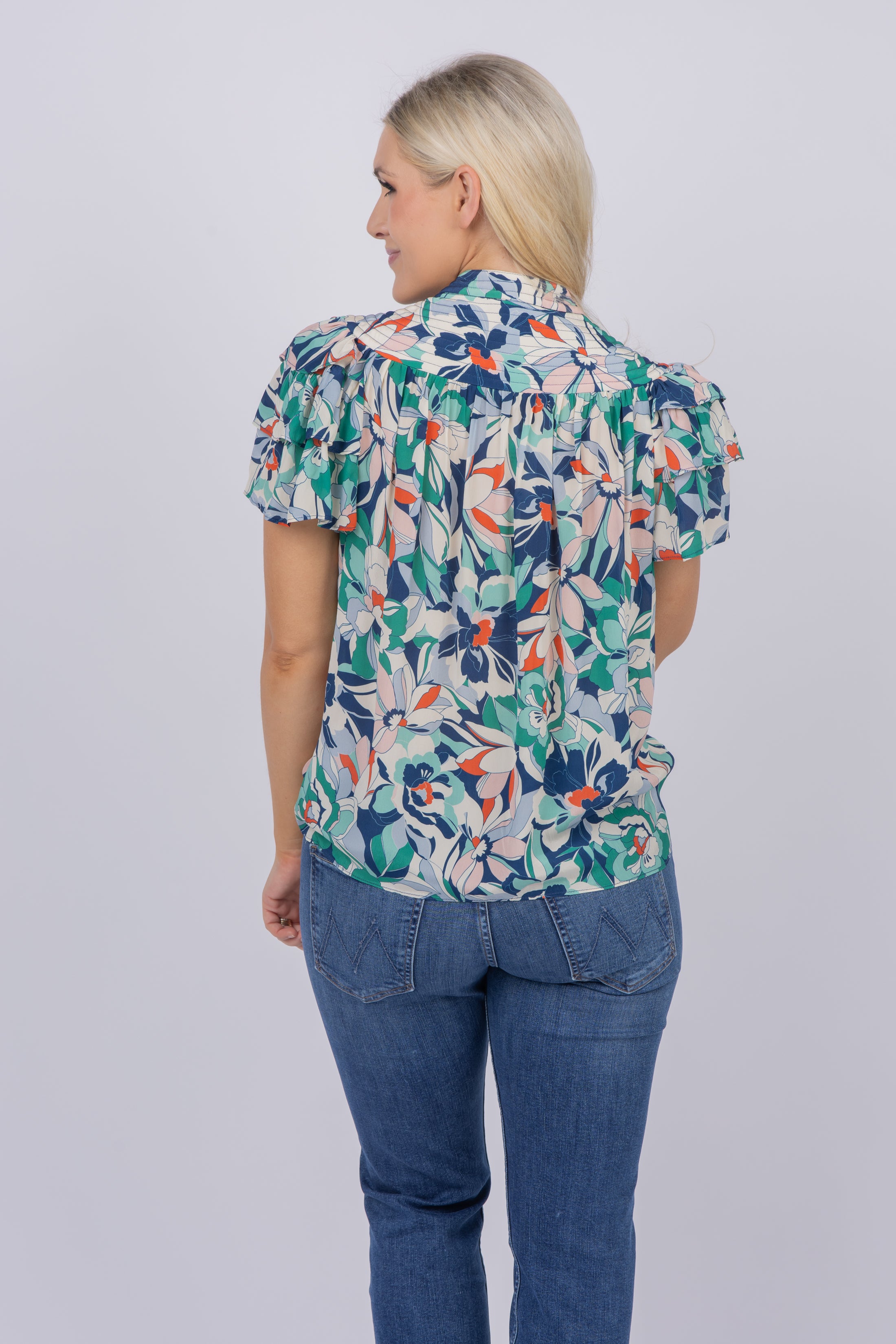 Beautify your wardrobe with the Gilner Farrar Dray Blouse! This luxe blouse is crafted with a lightweight, silky material and features quilted detail, a button front closure, and short ruffle sleeves for a touch of elegance and style. The 100% viscose fabric offers breathable comfort, perfect for any occasion. Enjoy the beauty of Magnolia with this gorgeous blouse - dry clean only.