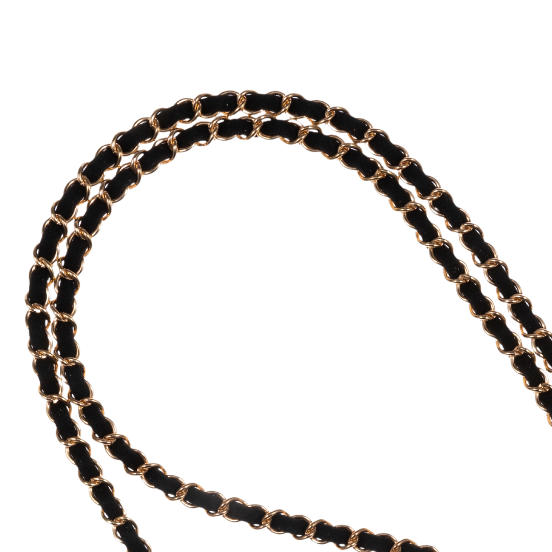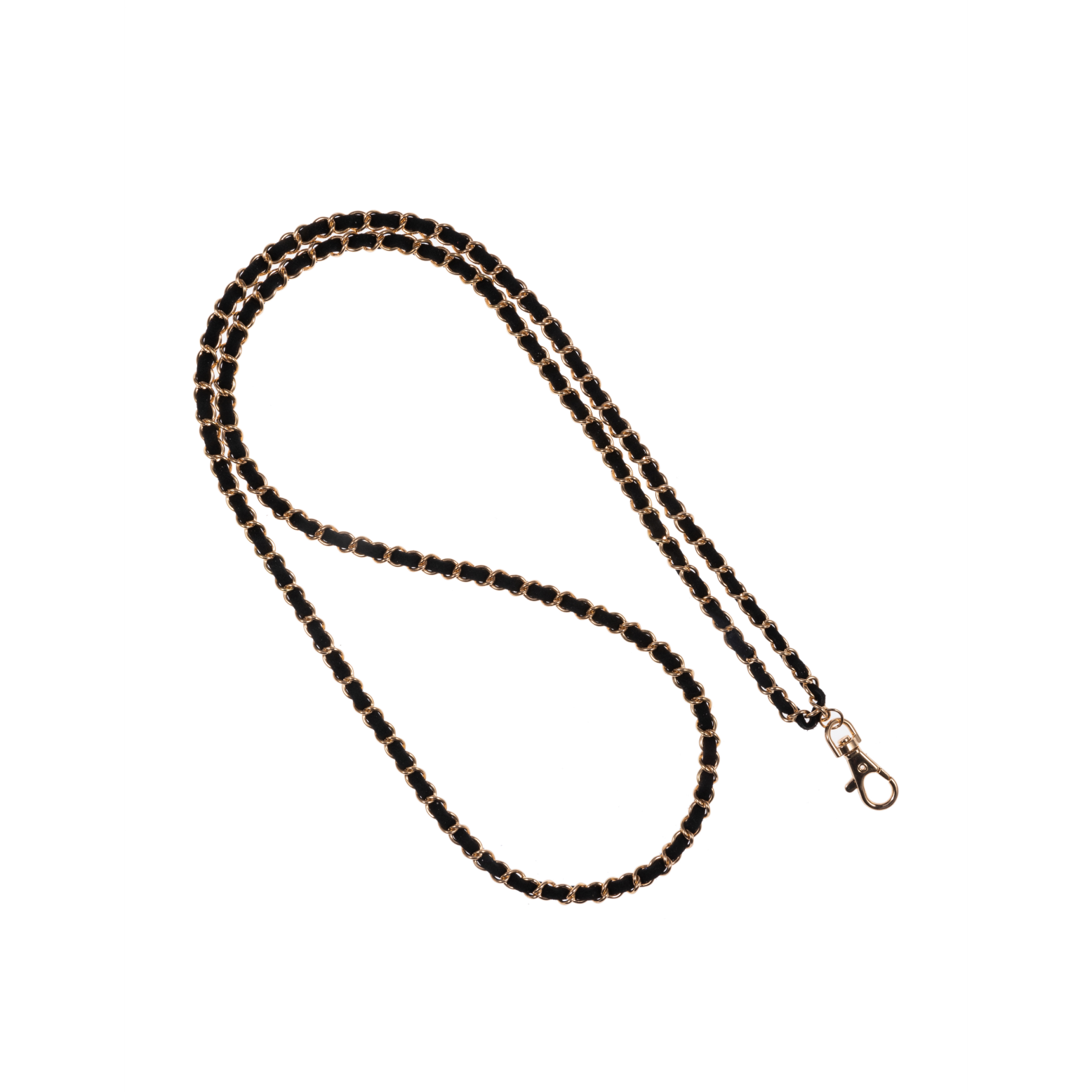 Gold Plated Crossbody Phone Chain with 100% Black Suede Woven Throughout. With Phone Chains this chic, there has never been a more convenient, lightweight, and fashionable way to keep your phone with you; hands-free.