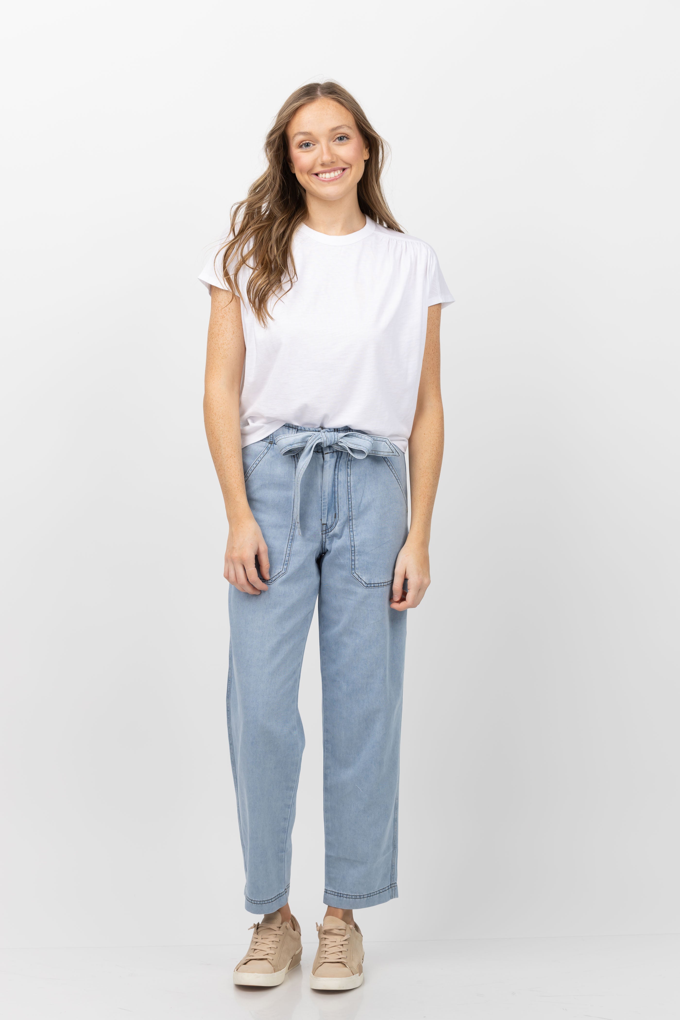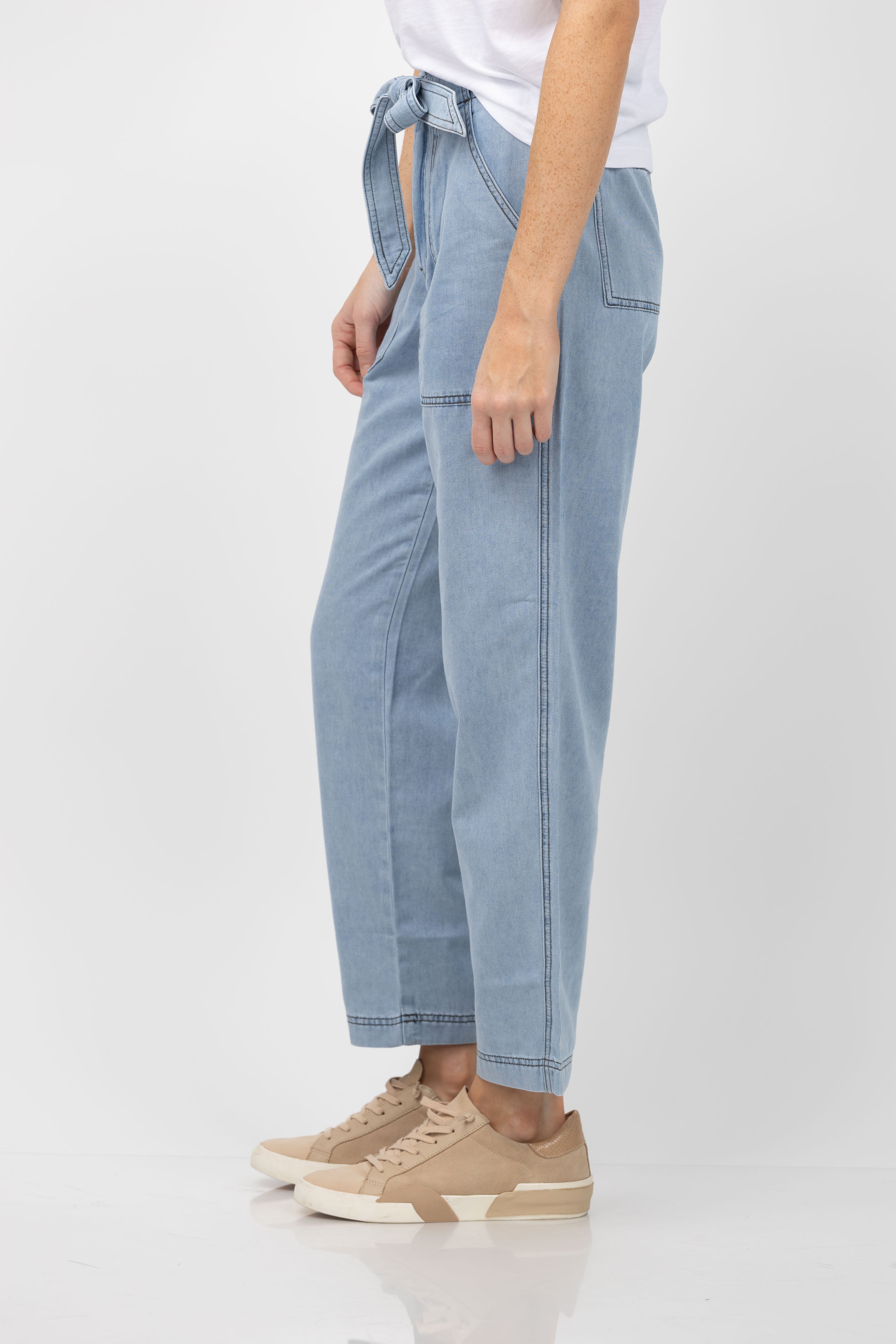 Lilla P Denim Belt Pant in Light Wash