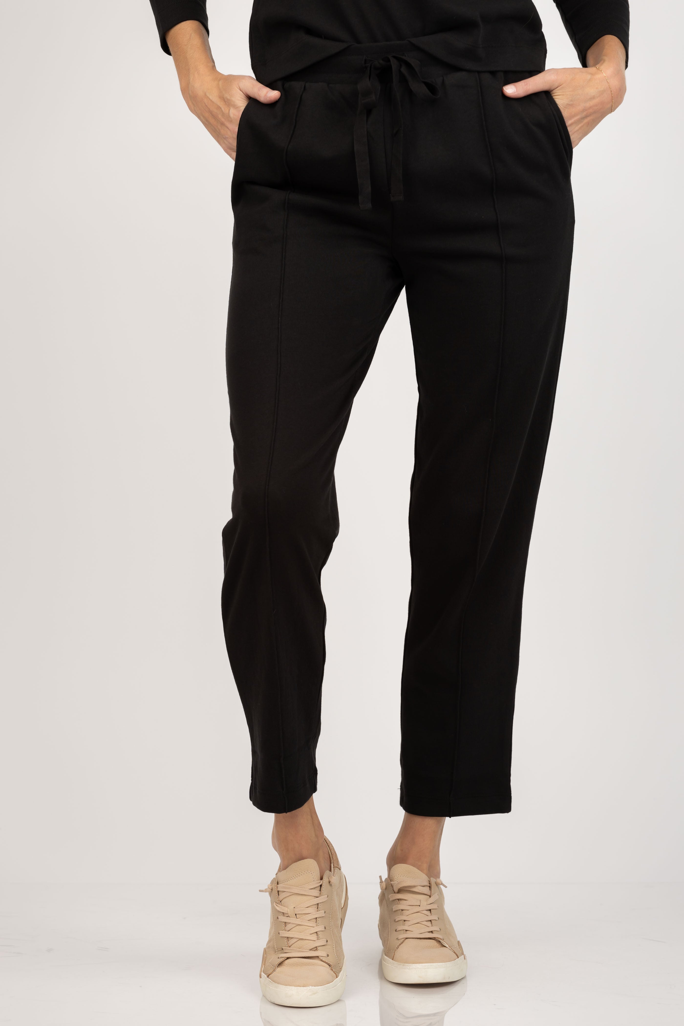 Elevate your wardrobe with the Lilla P. Front Seam Pant in Black. Made from our compact knit jersey fabric, these ankle length pants feature raised front seams and pockets for a sleek and refined look. Perfect for any occasion, pair it with our coordinating tops or mix and match with your favorite pieces.