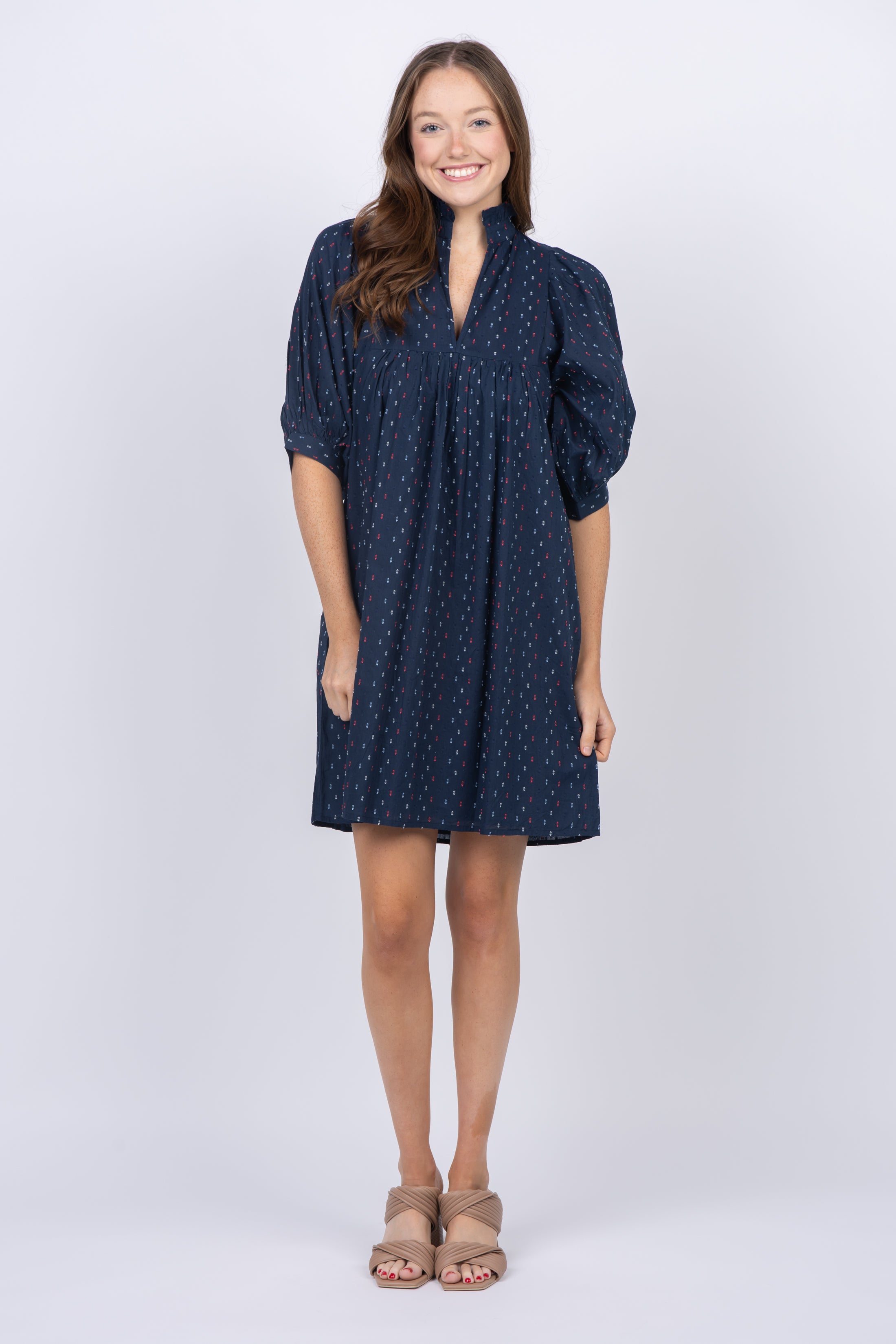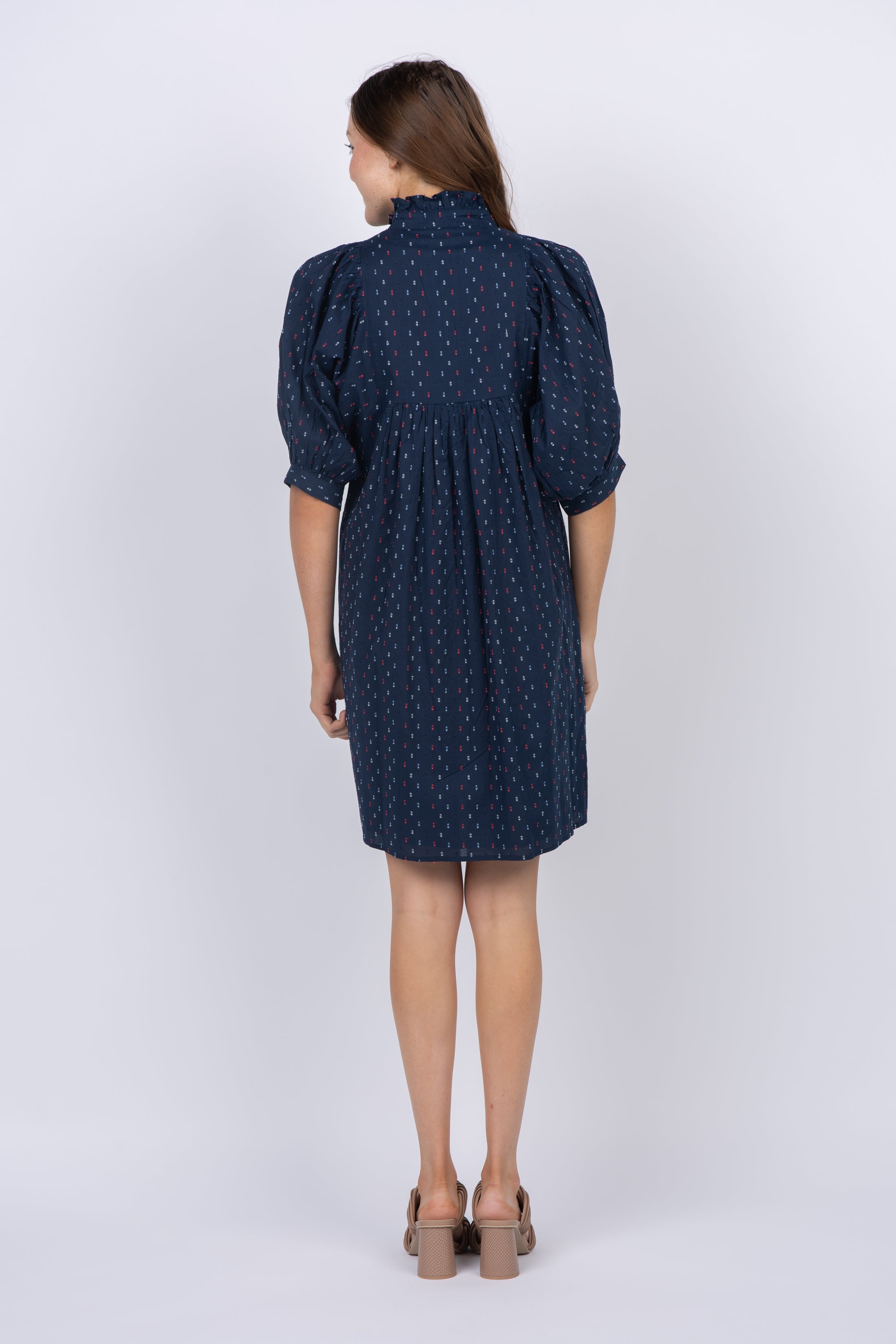 Never A Wallflower High Neck Dress in Navy Swiss Dot