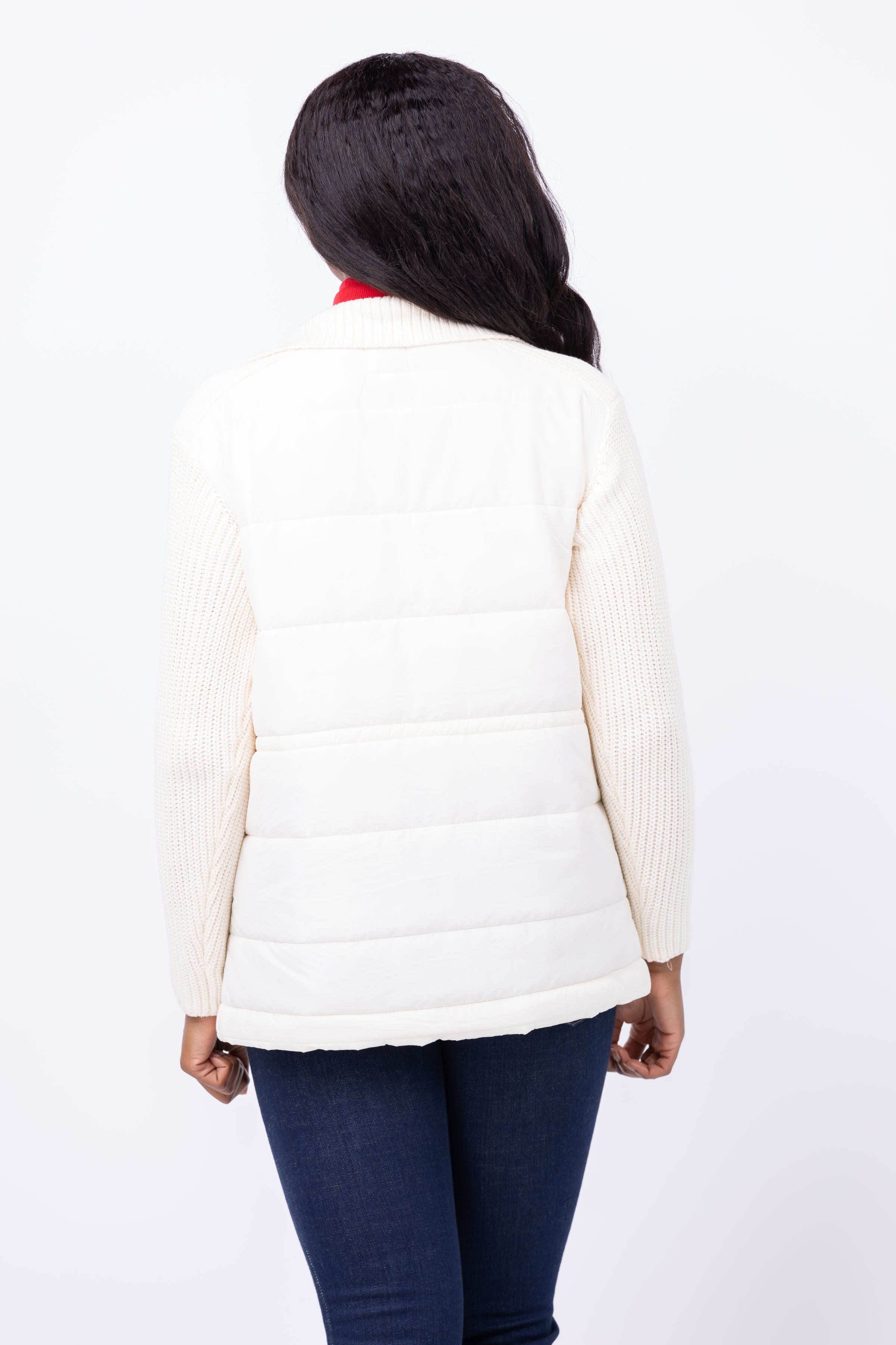 Nic + Zoe Mix Media Quilted Puffer Jacket in Classic Cream