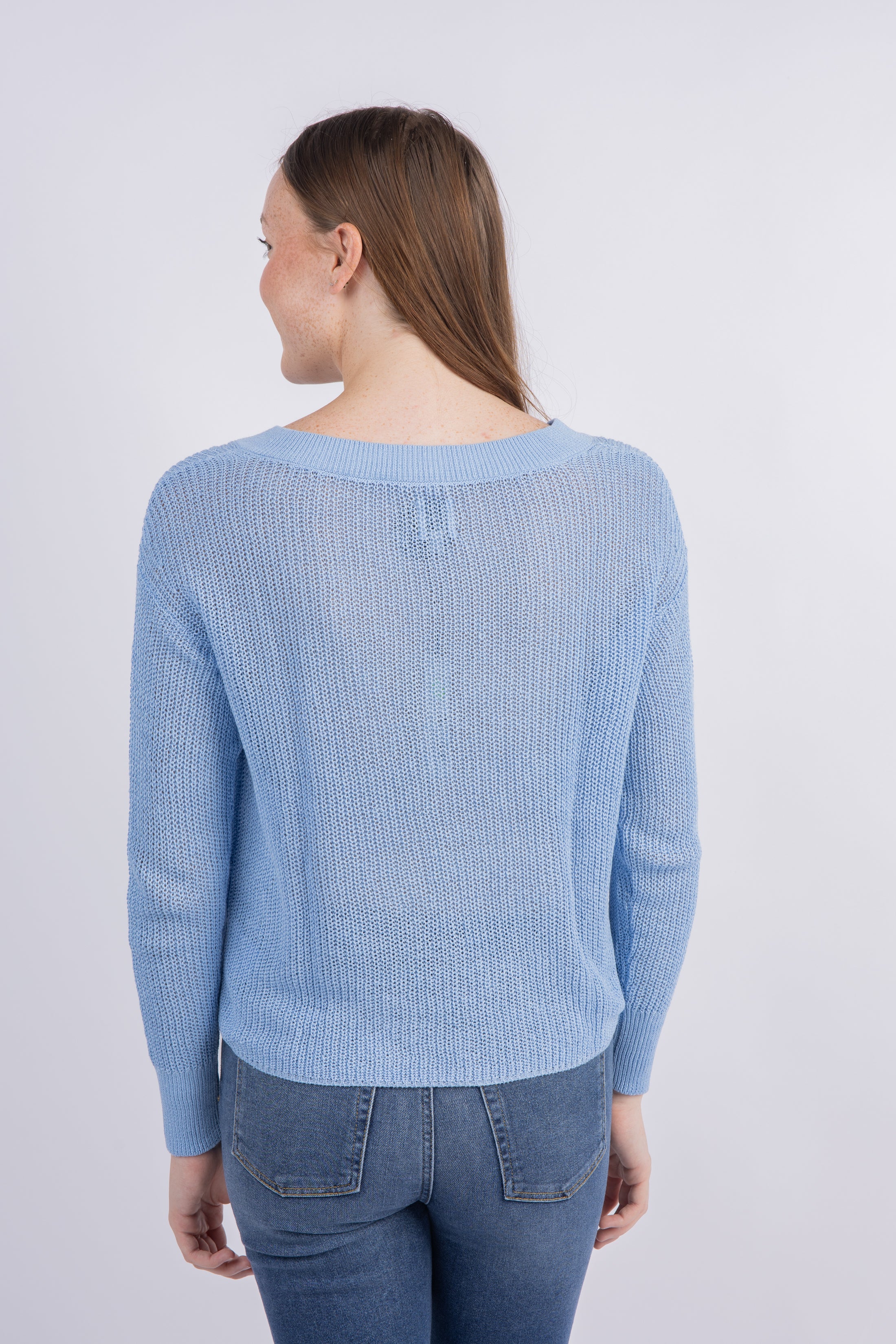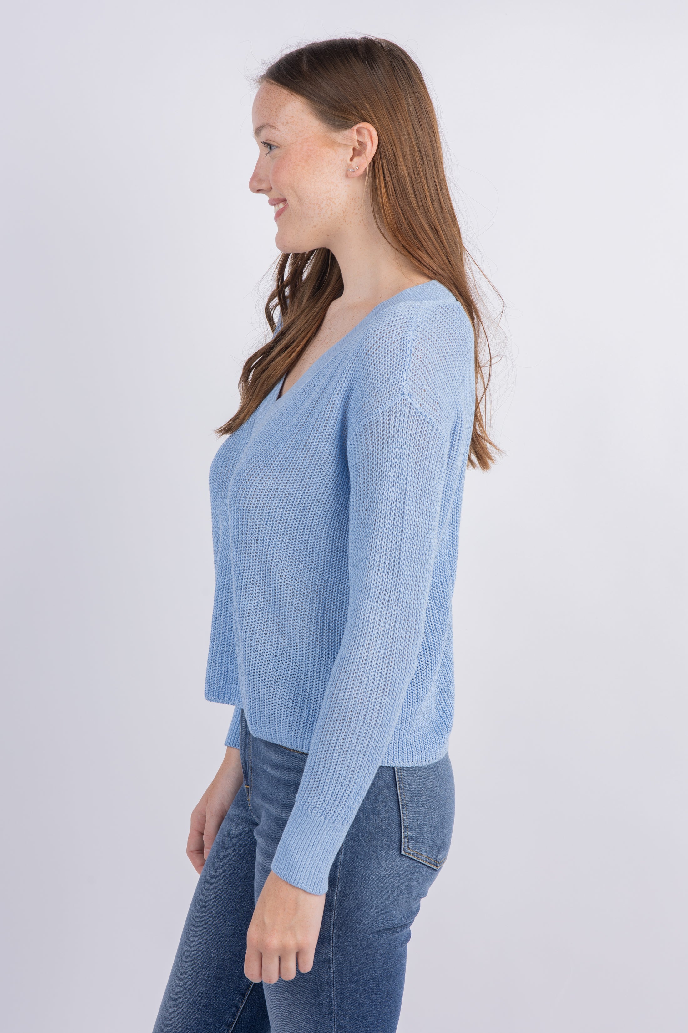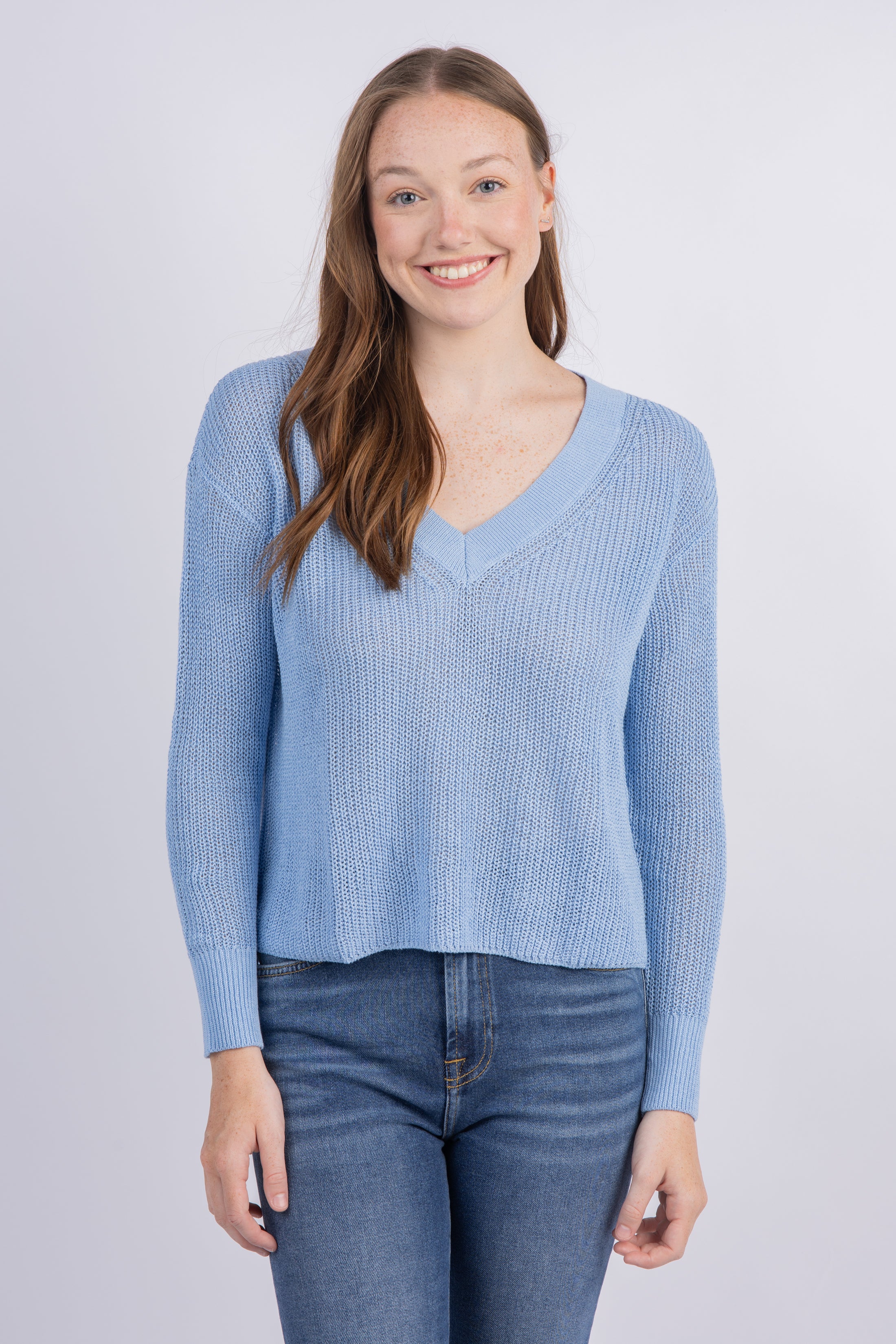Look graceful and elegant with the Nic+Zoe Shorty V Sweater. Enjoy its flattering V-neck and drop shoulder design, along with its long sleeves and semi-sheer shaker knit. This stylish pullover also features ribbed trim, so you can look your best every day! Jump into the perfect sweater and experience a refreshing zephyr.