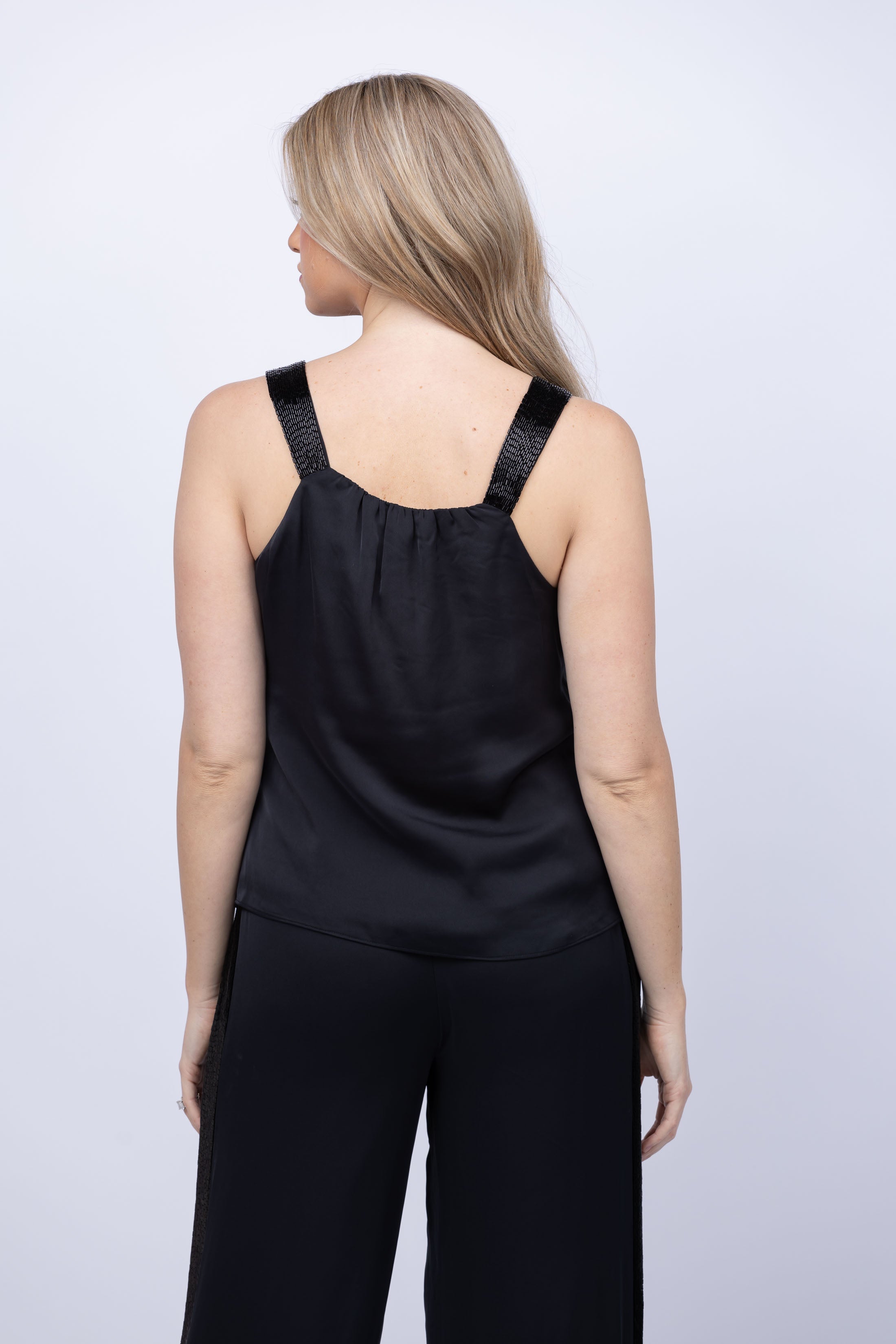 The Ramy Brook Amy V-neck tank top is the perfect balance of elegance and edge. Crafted with luxe beaded straps and a tie detail at the chest, it will take your dinner look to the next level. Slip into a sophisticated style that exudes confidence and modernity. Wow!