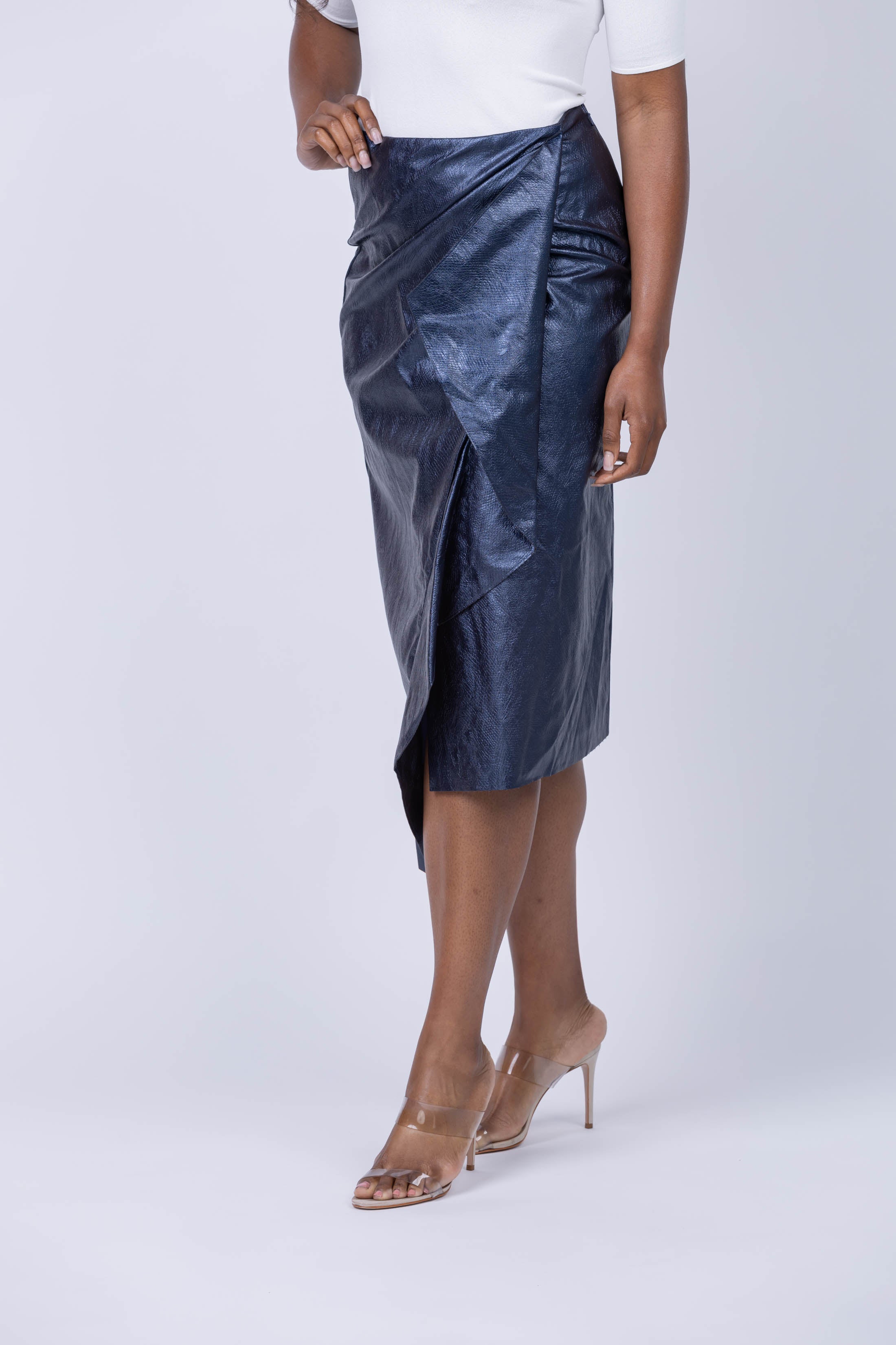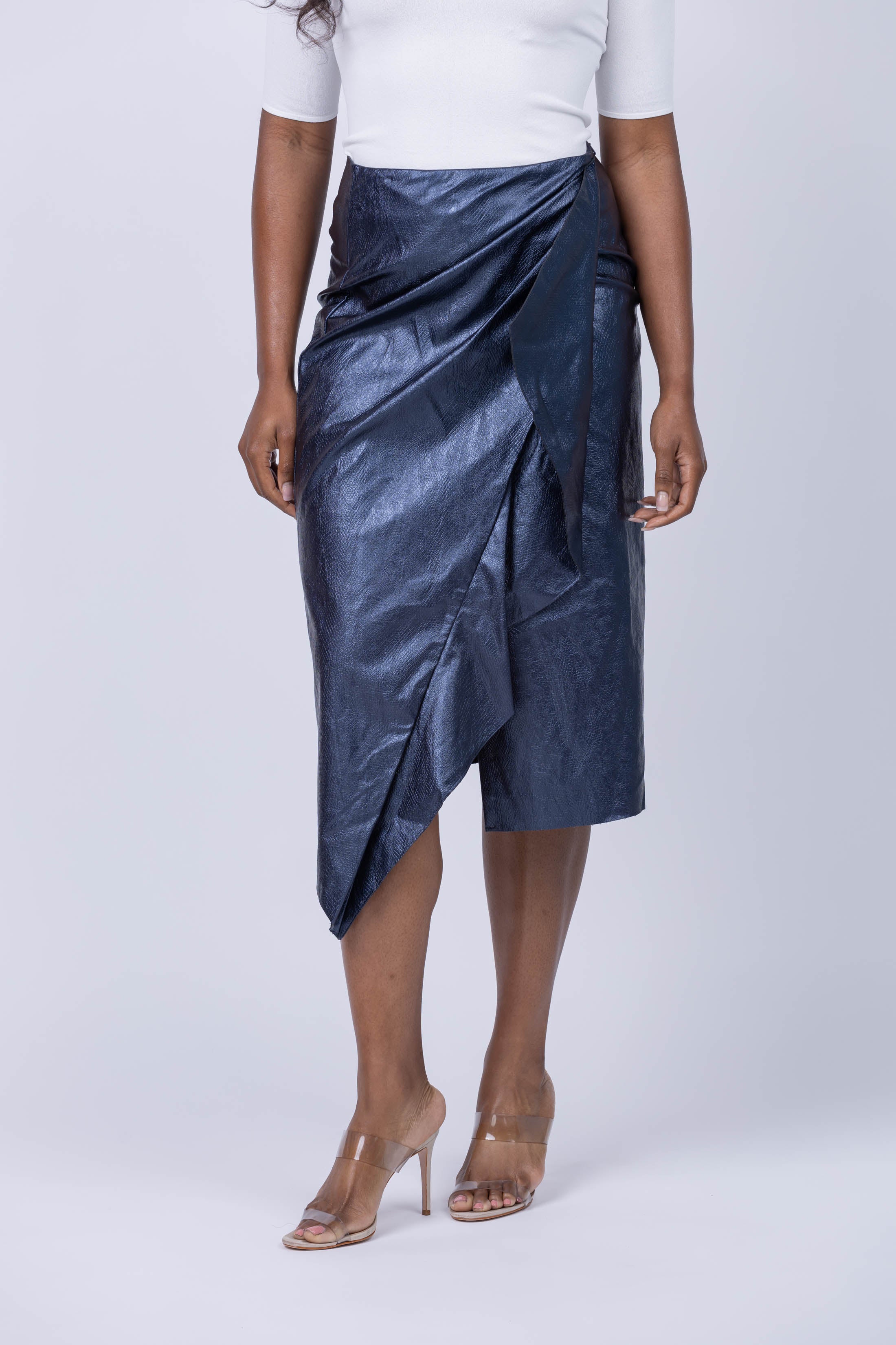 Ramy Brook Quinn Skirt in Navy Faux Leather