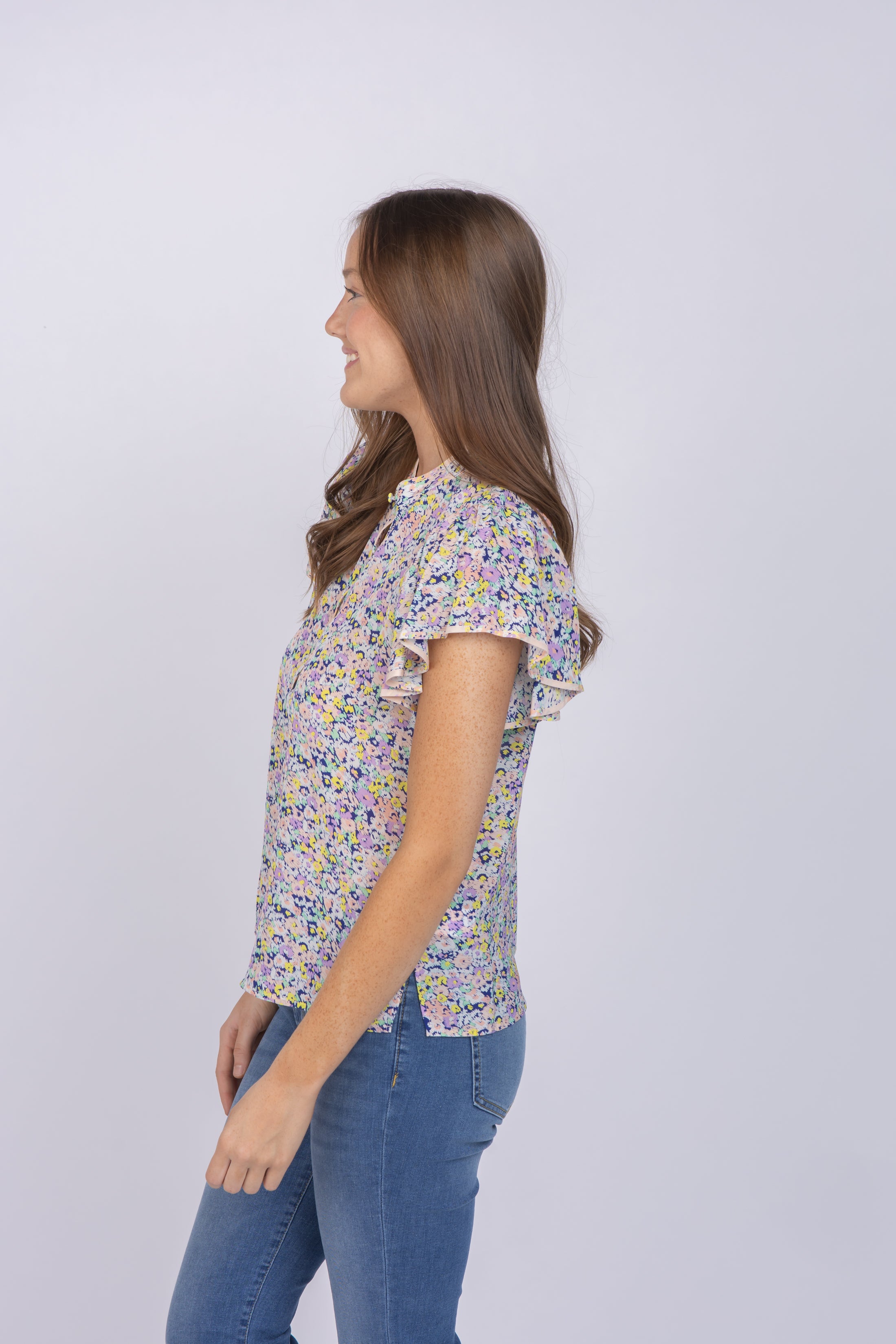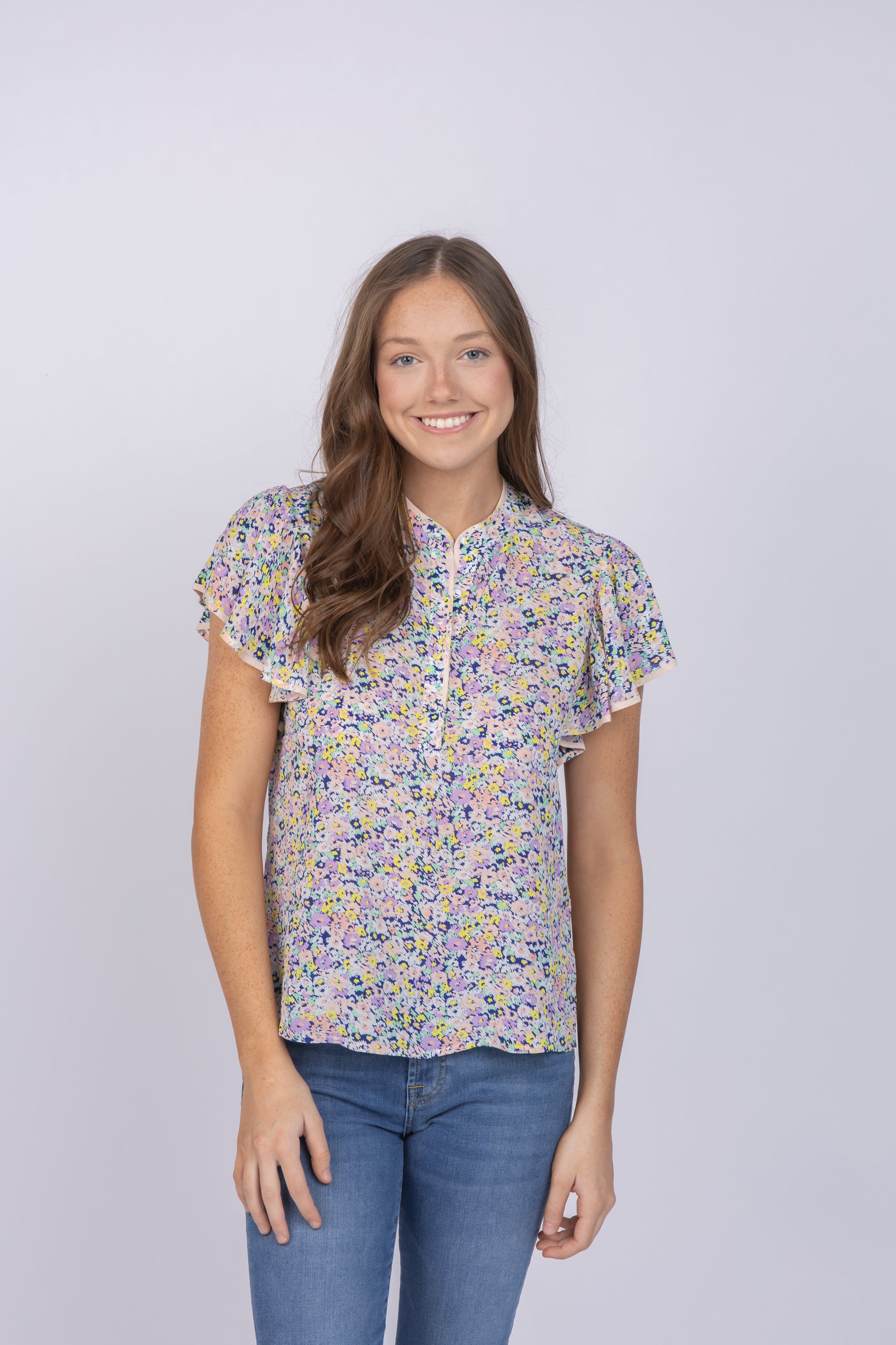 Make a statement in the Shoshanna Tavi Top. With its vibrant floral pattern, flirty blouson sleeves, and statement buttons, this top adds a burst of color to any wardrobe. A perfect blend of fun and flirty for a confident and inspiring look.