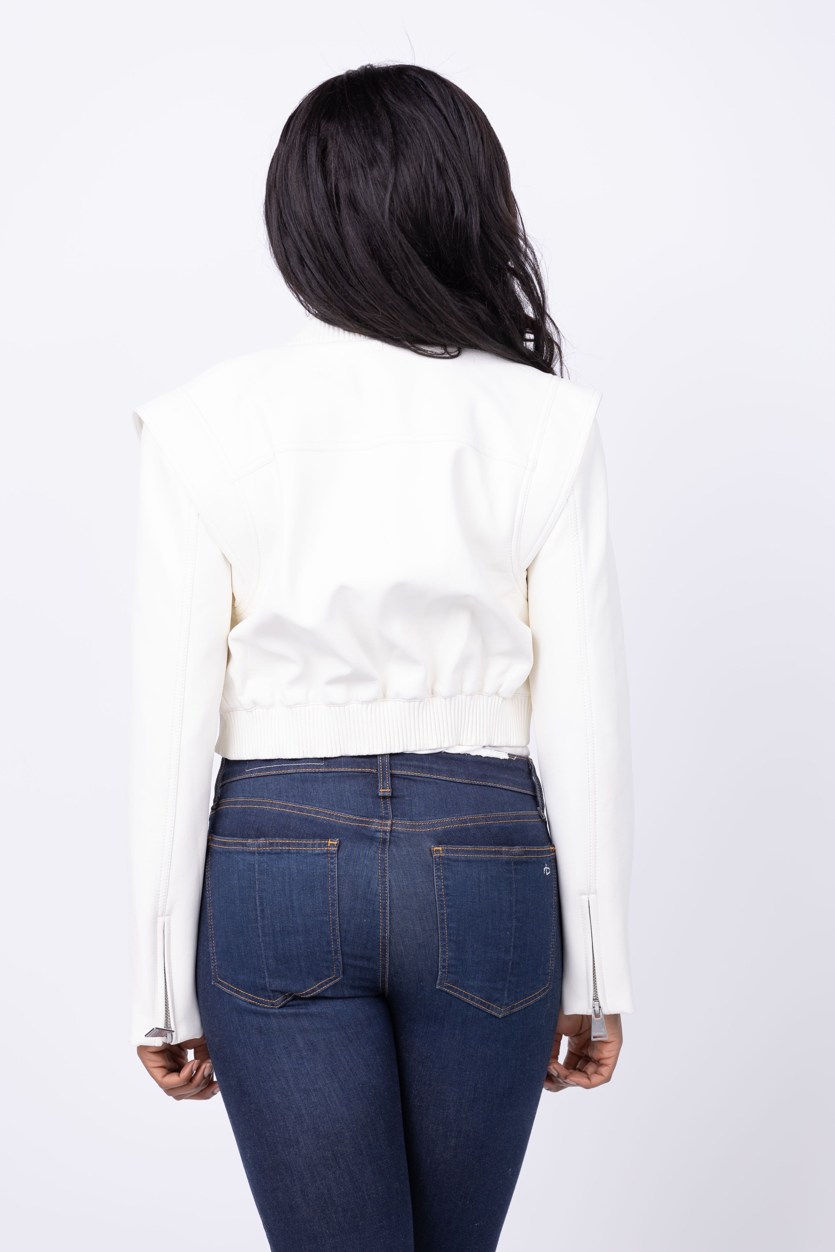 Simkhai Doreen Luxe Vegan Leather Boxy Bomber Jacket In Ivory