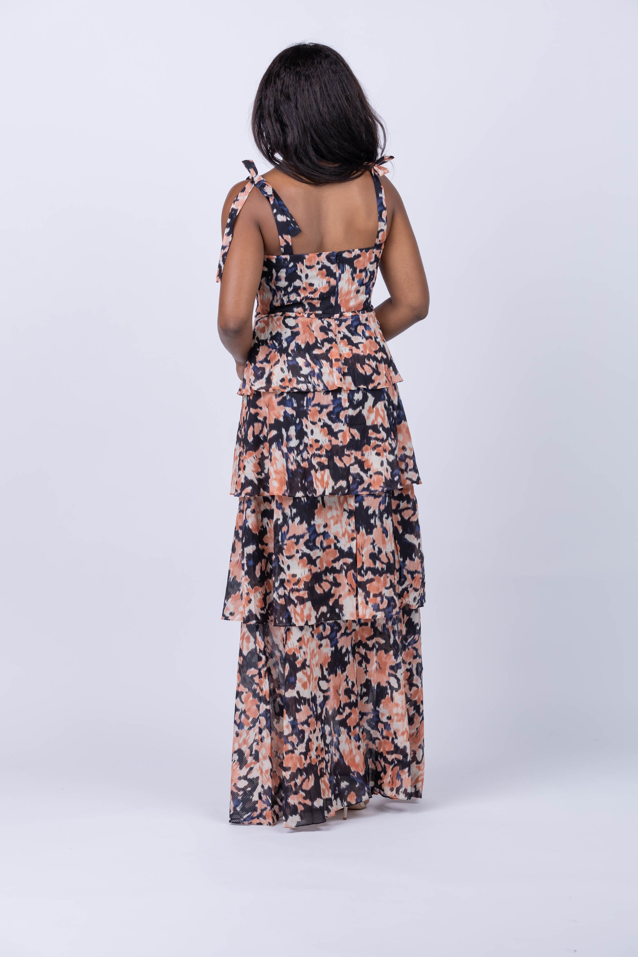 Designed in a textured georgette, the Paige Dress is a modern maxi dress in our hand-painted Peony Bloom print. A figure-grazing fit with tiers throughout the skirt and a sweetheart neckline, the Paige Dress is a universally fun and flattering seasonal silhouette. With self-tie straps and a lined bodice, this style lends a feminine sensibility to any event.