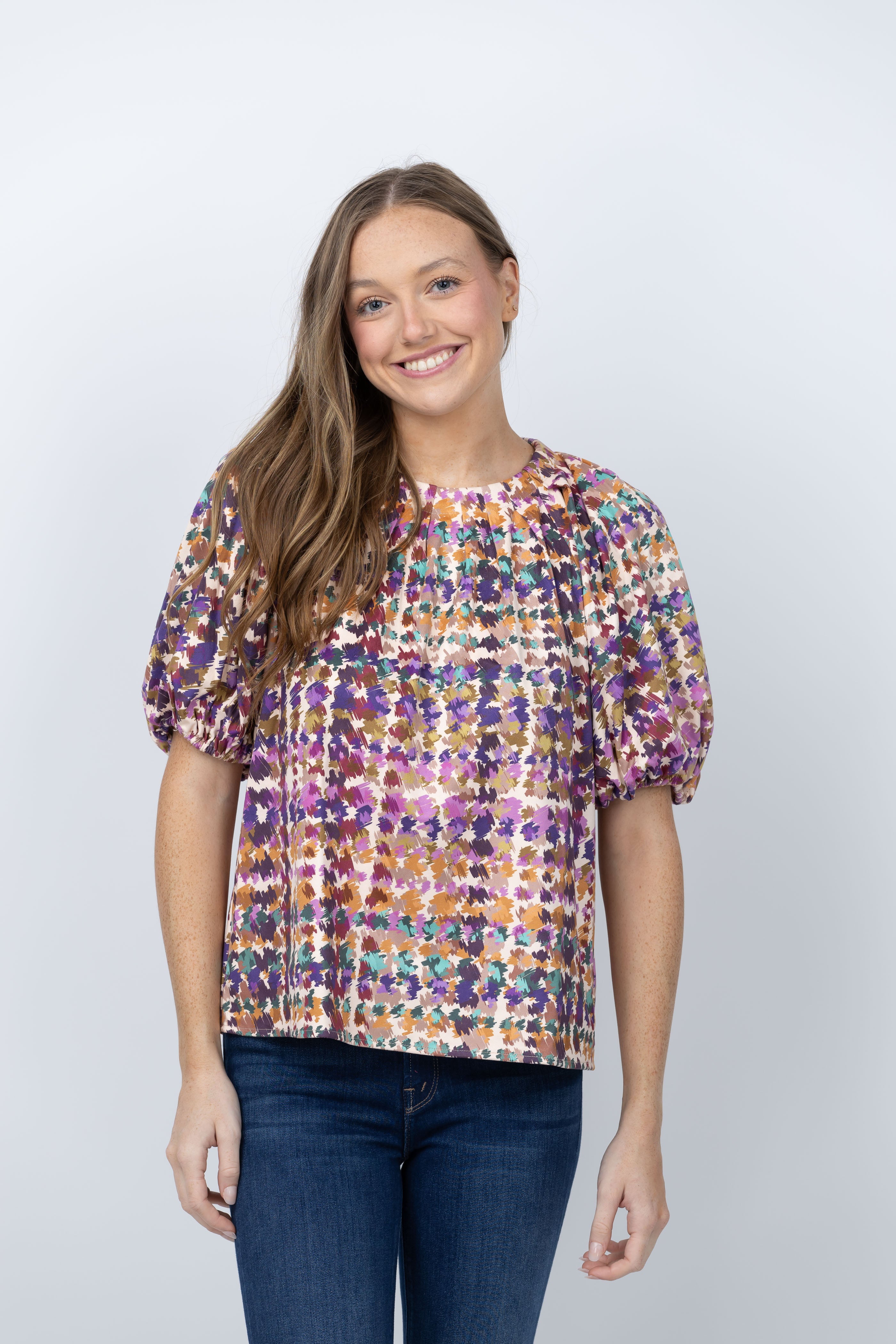 Elevate your everyday look with the Tyler Boe Blse Mlt. Its crewneck and short puff sleeves provide comfort and style, while the mix of perfect fall colors adds a touch of vibrancy. This top is a must-have for any fashion-forward individual looking to make a statement.
