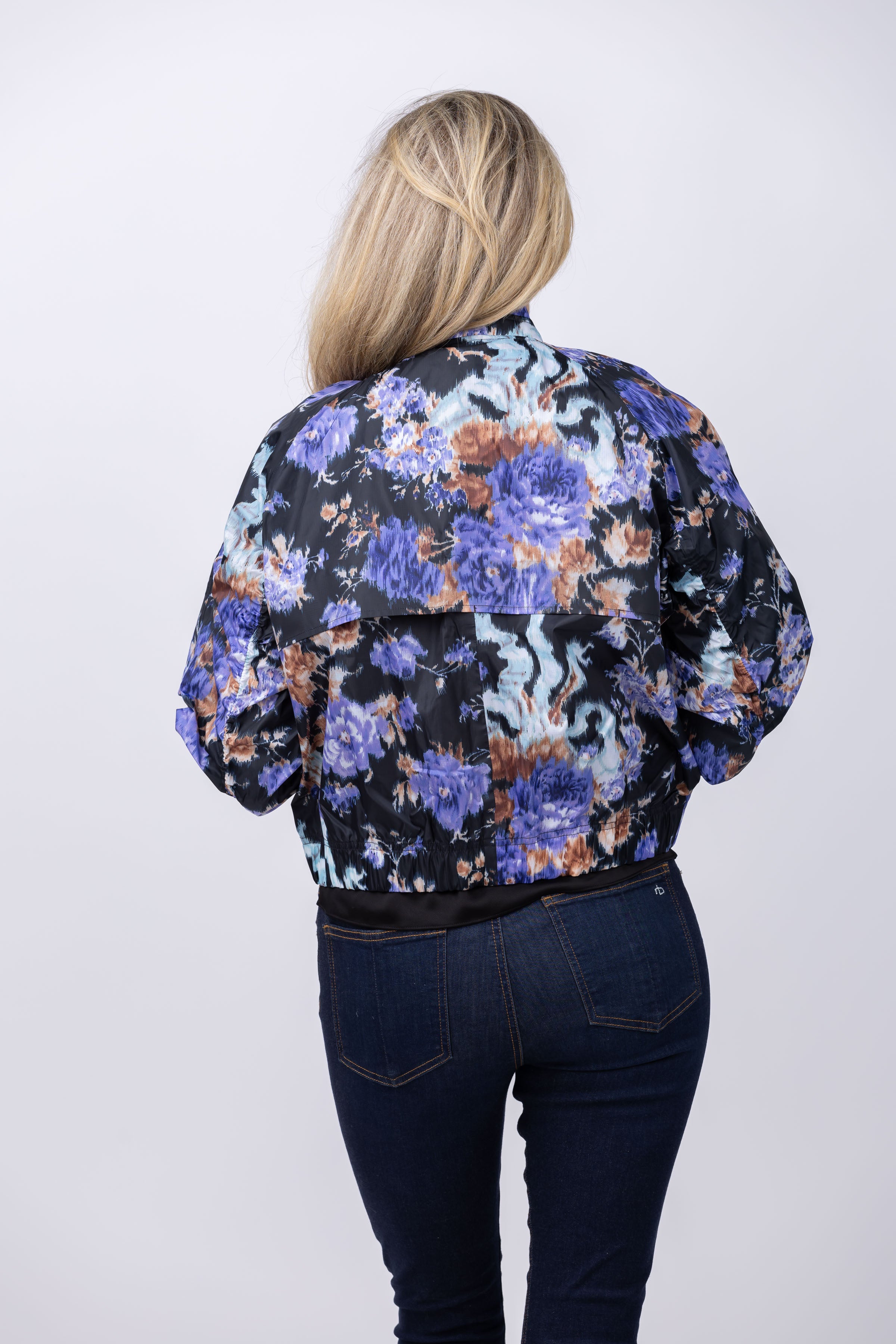 Elevate your outerwear game with our Ulla Johnson Asa Bomber in Iris. The collaboration with K-Way brings you waterproof performance ripstop fabric adorned with vibrant blurred florals. This cropped jacket features a hood and adjustable cords for a personalized fit, along with convenient front pockets and K-Way's eye-catching zipper. Finish off your look with the iconic logo patch.