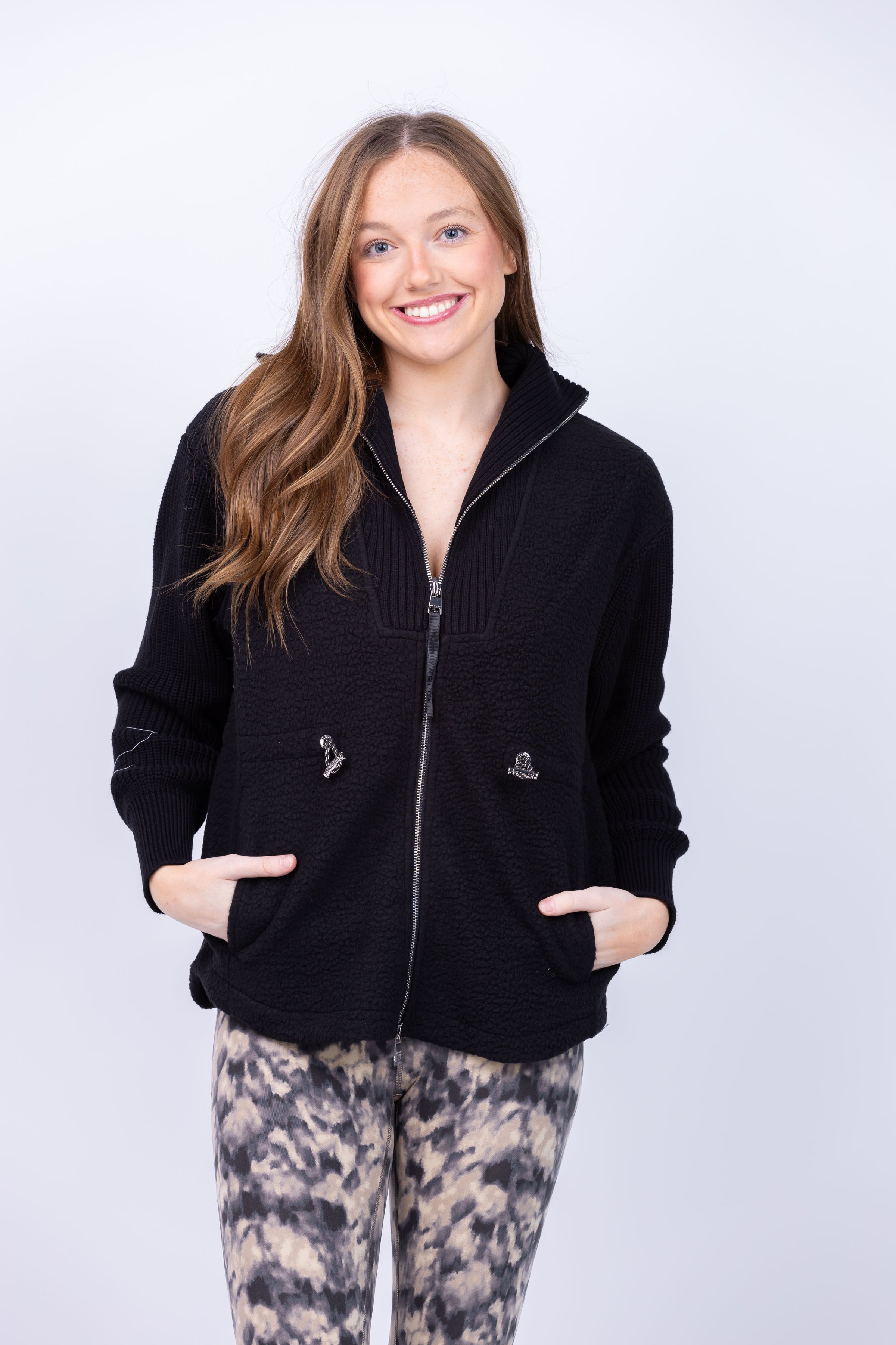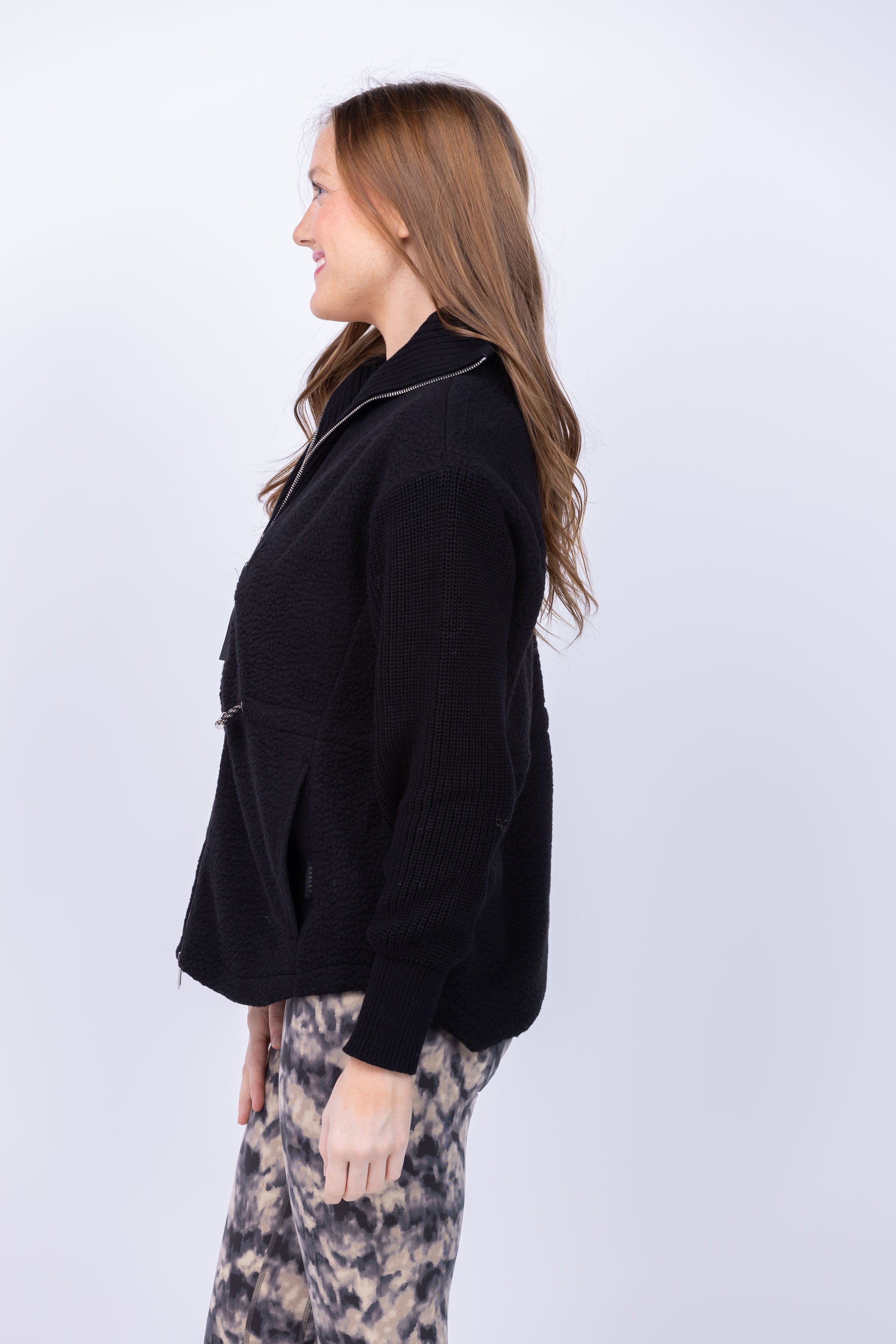 Elevate your cold weather wardrobe with the Varley Renea Fleece Jacket. Crafted from Plush Borg Fleece, this versatile jacket offers both comfort and style. Its rib-knit collar, sleeves, and front panel add a touch of chic, while the cinchable waist and drop-back hem enhance your silhouette. Stay cozy and elegant all season long.