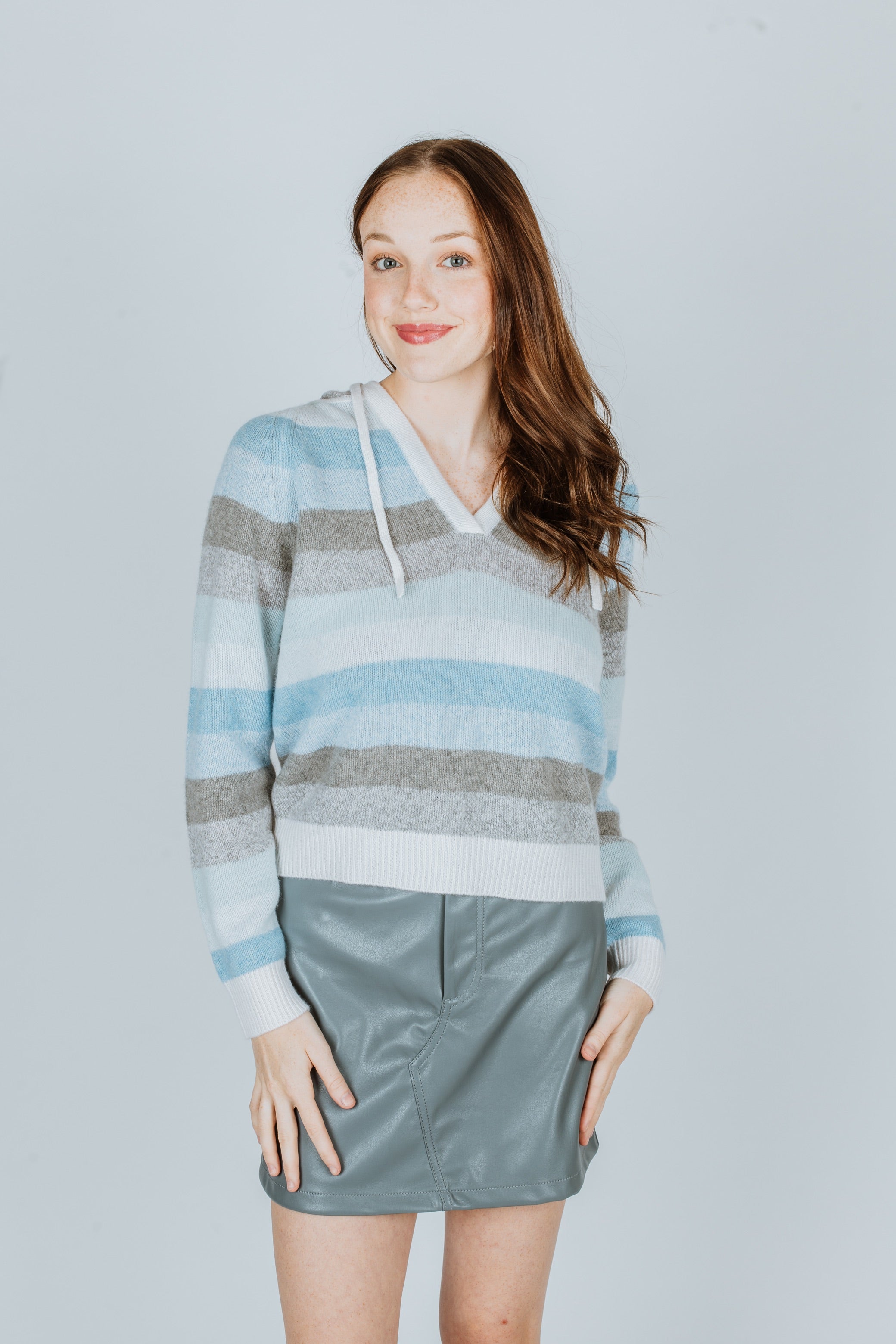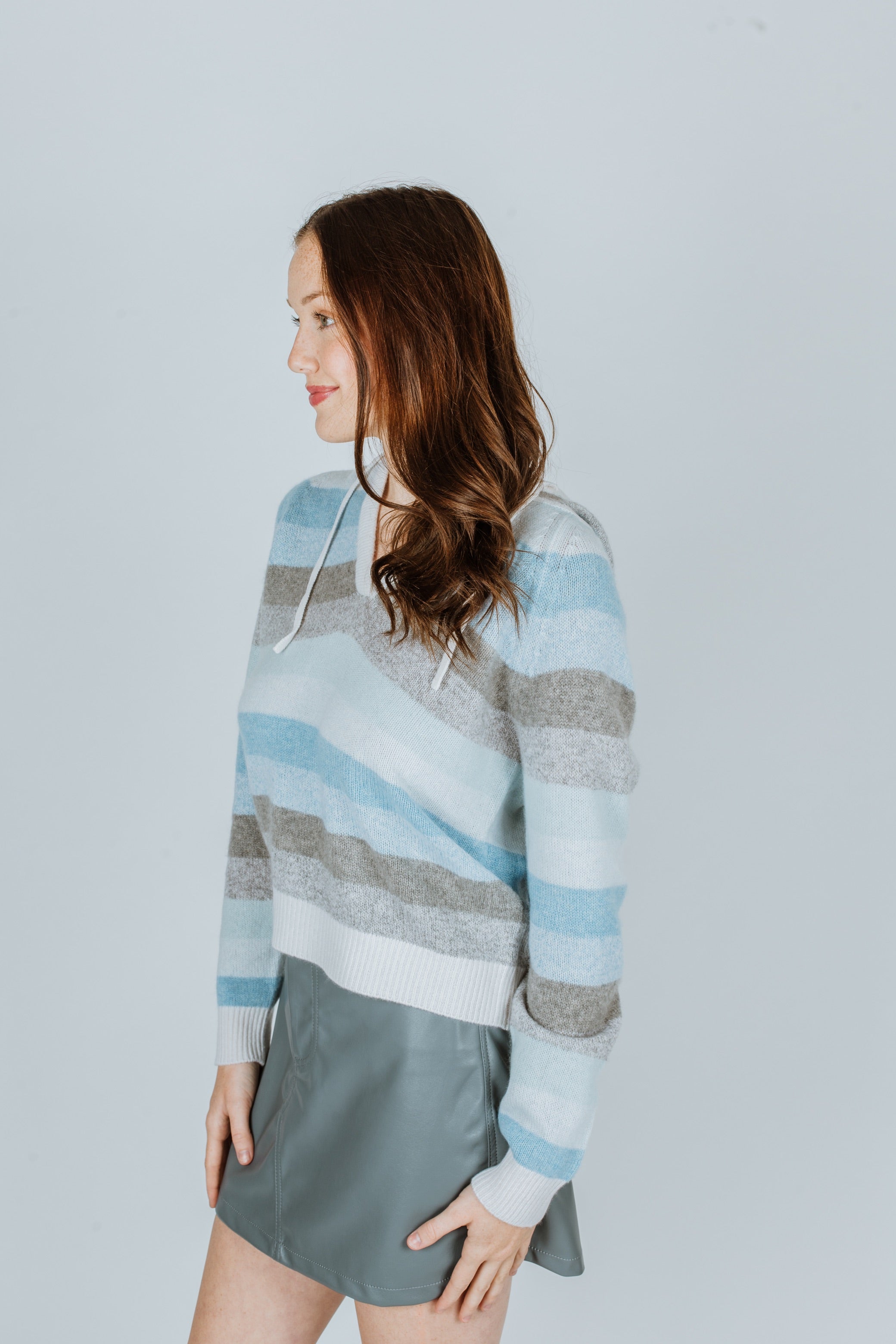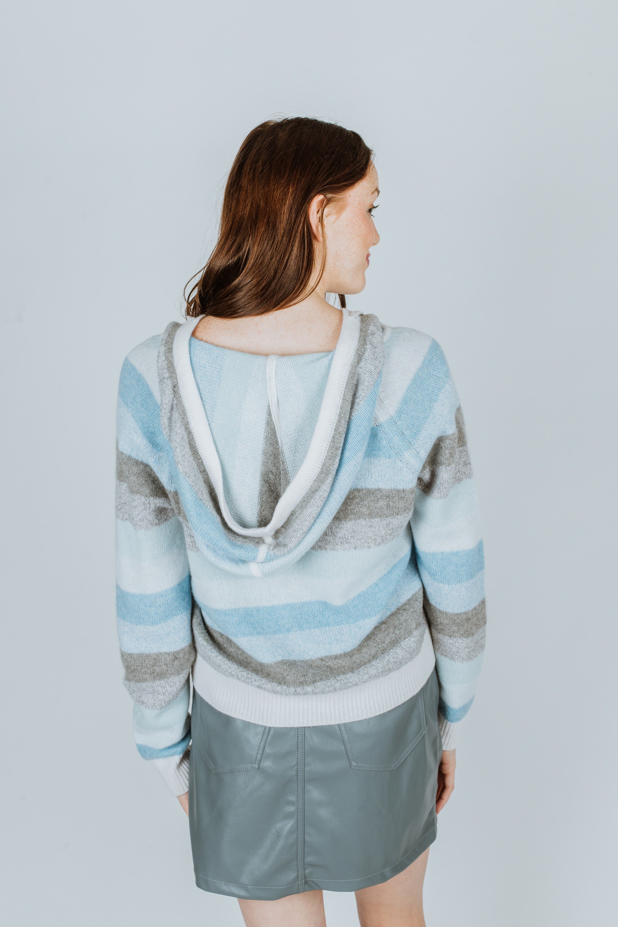 White + Warren Cashmere Striped Hoodie Blue Multi