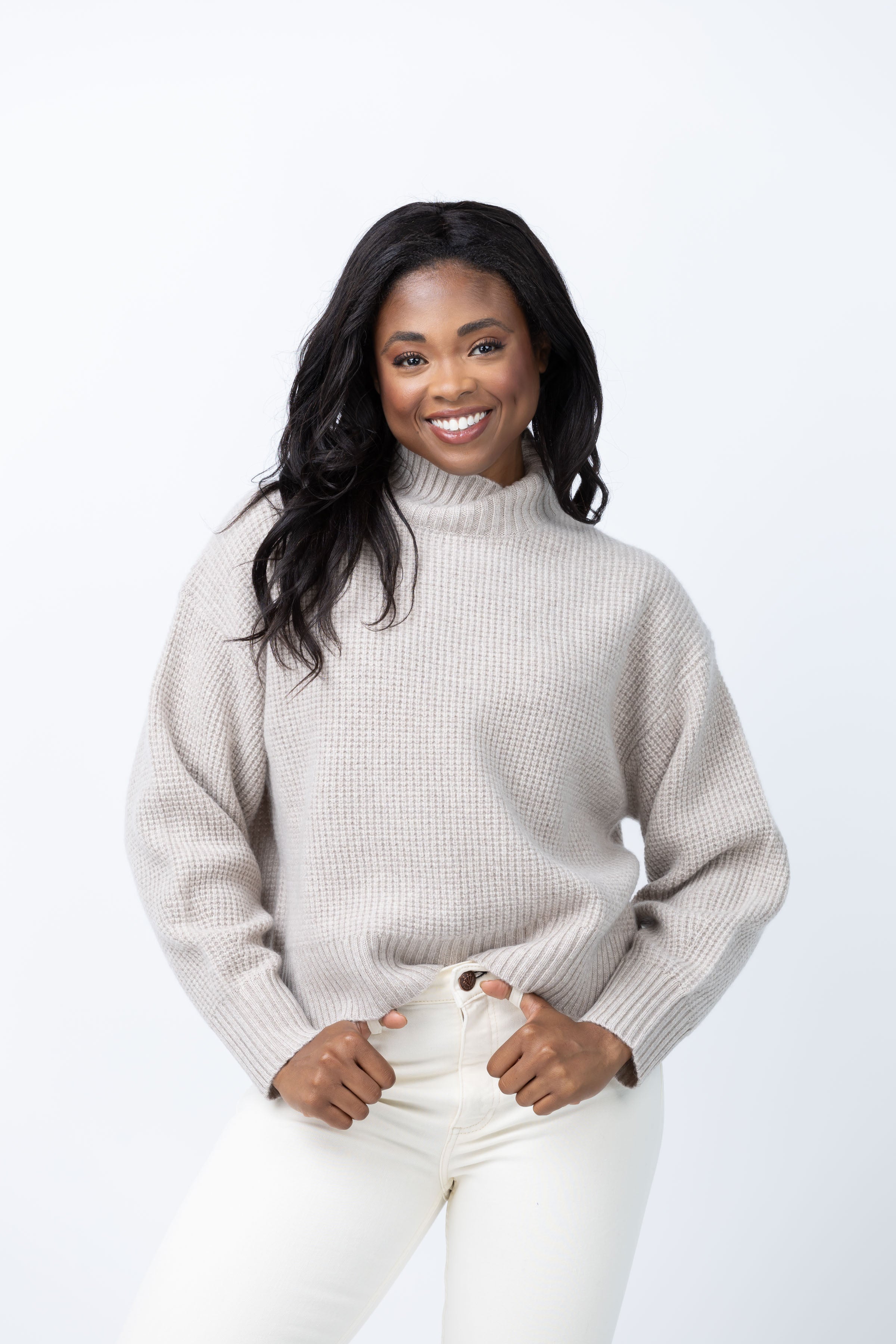 Experience ultimate luxury with the White + Warren Cashmere Waffle Standneck in Sandwisp Heather. Made with two layers of cashmere, this waffle-knit sweater offers a softer and cozier option for the colder months. Its perfect standneck design provides both style and warmth, while the oversized fit and length offer a relaxed, yet elegant look. Pair with a knee-grazing skirt for a chic and comfortable outfit.
