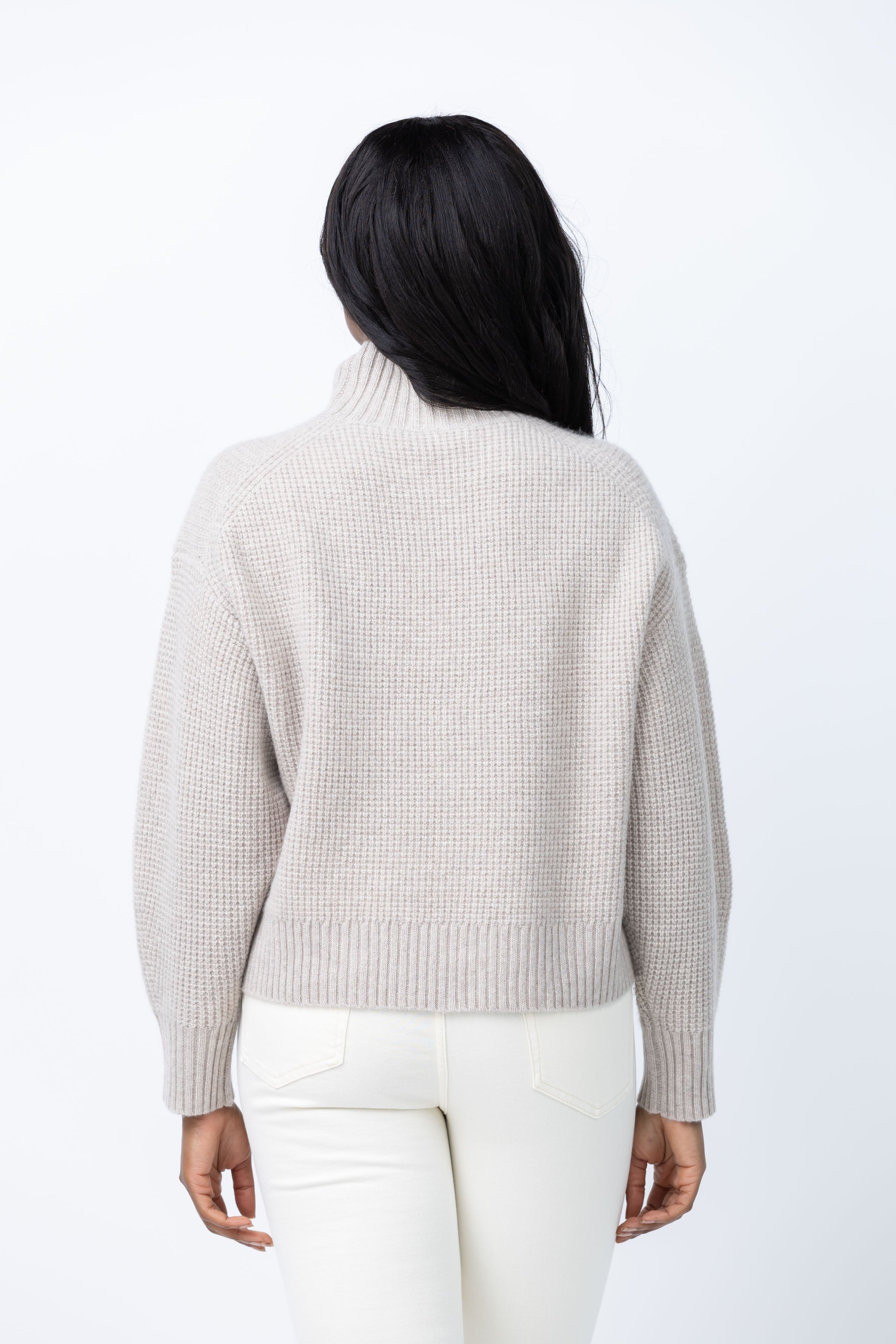 White + Warren Cashmere Waffle Standneck in Sandwisp Heather