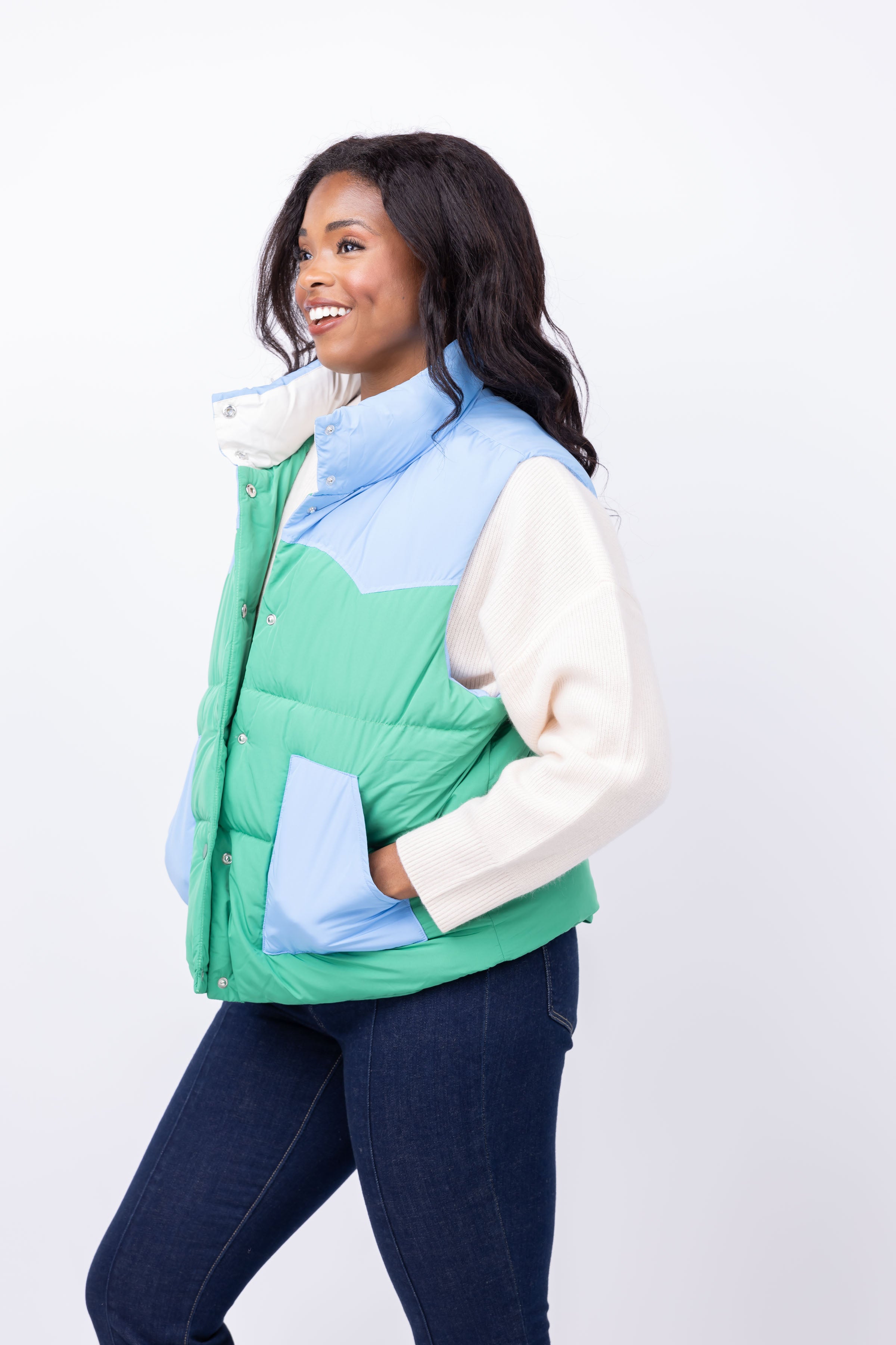 Elevate your winter style with Xirena Miller Vest! This quilted puffer vest not only adds warmth but also a touch of Western-inspired flair. The contrast color lining, stand collar, and adjustable hem make it perfect for layering. Stay cozy and chic all season long.