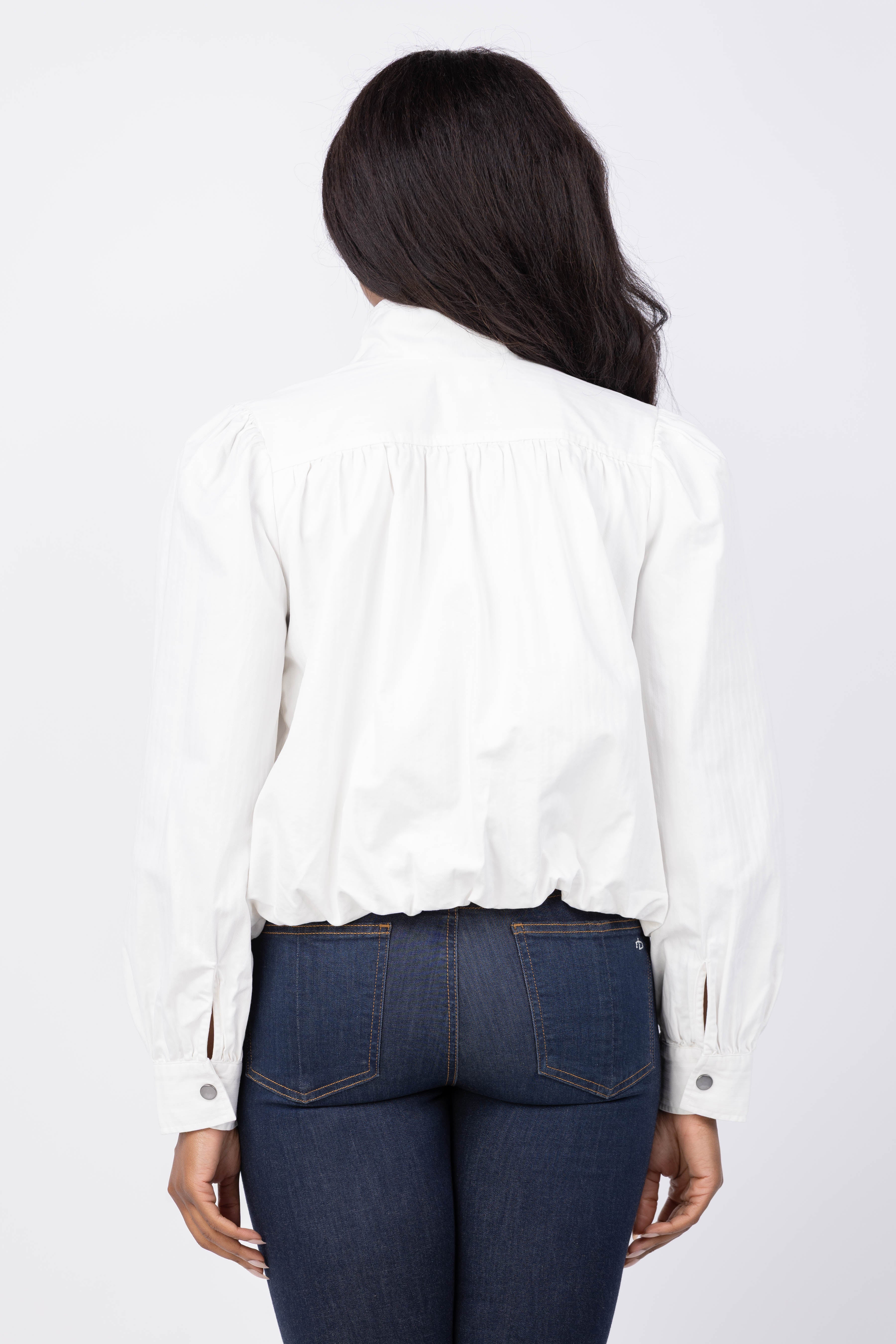 The We Are Sundays Elodie Jacket in Bone is the perfect layering piece, blending classic New York style with a modern twist. Made from soft, garment-washed washed herringbone twill, it offers a lived-in feel and subtle bubble hem for a flirty, feminine silhouette. The zip-front design and stand collar add timeless appeal, while gently gathered sleeves provide volume and movement. Slightly cropped to sit just above the high hip, Elodie pairs effortlessly with washed twill Sawyer Pants for a cool, casual look. Elevate your wardrobe with this versatile essential.