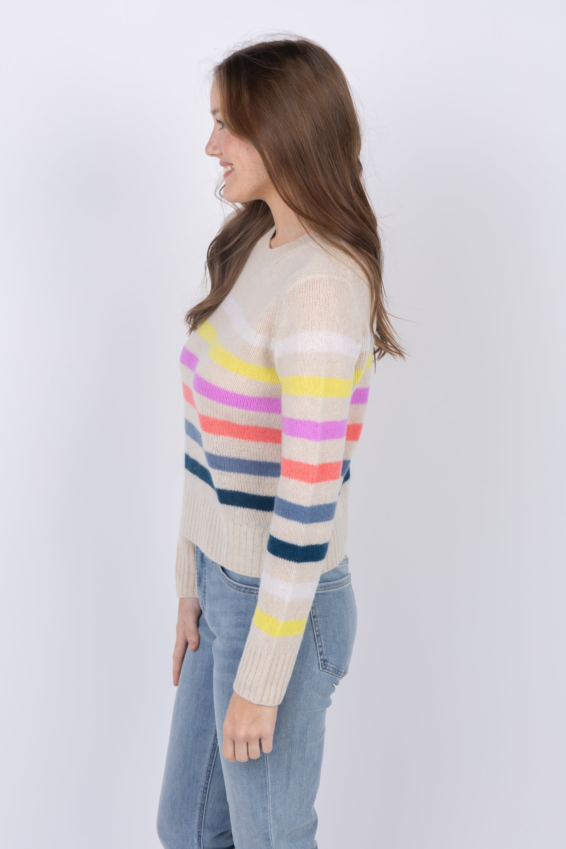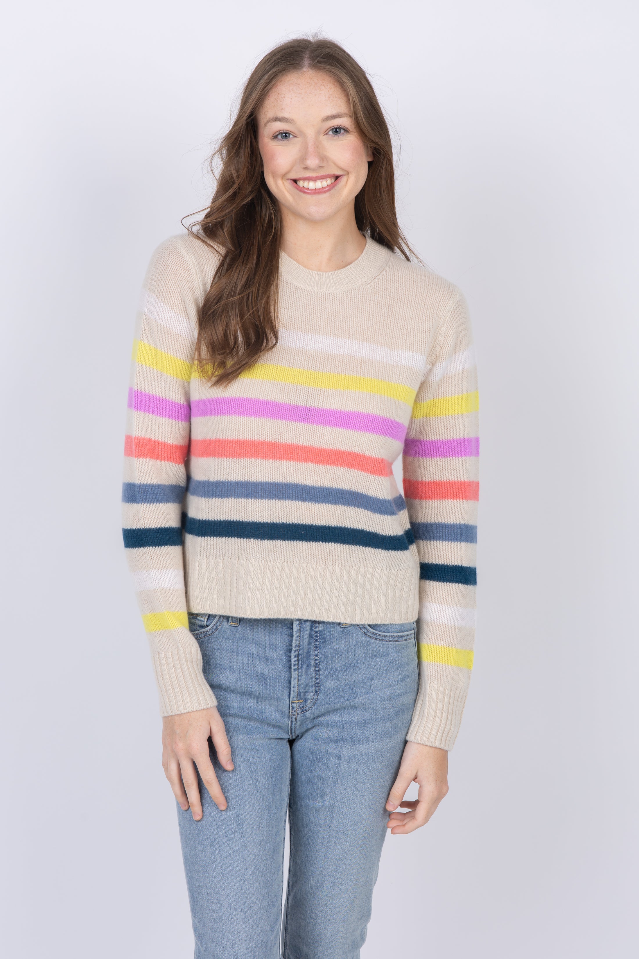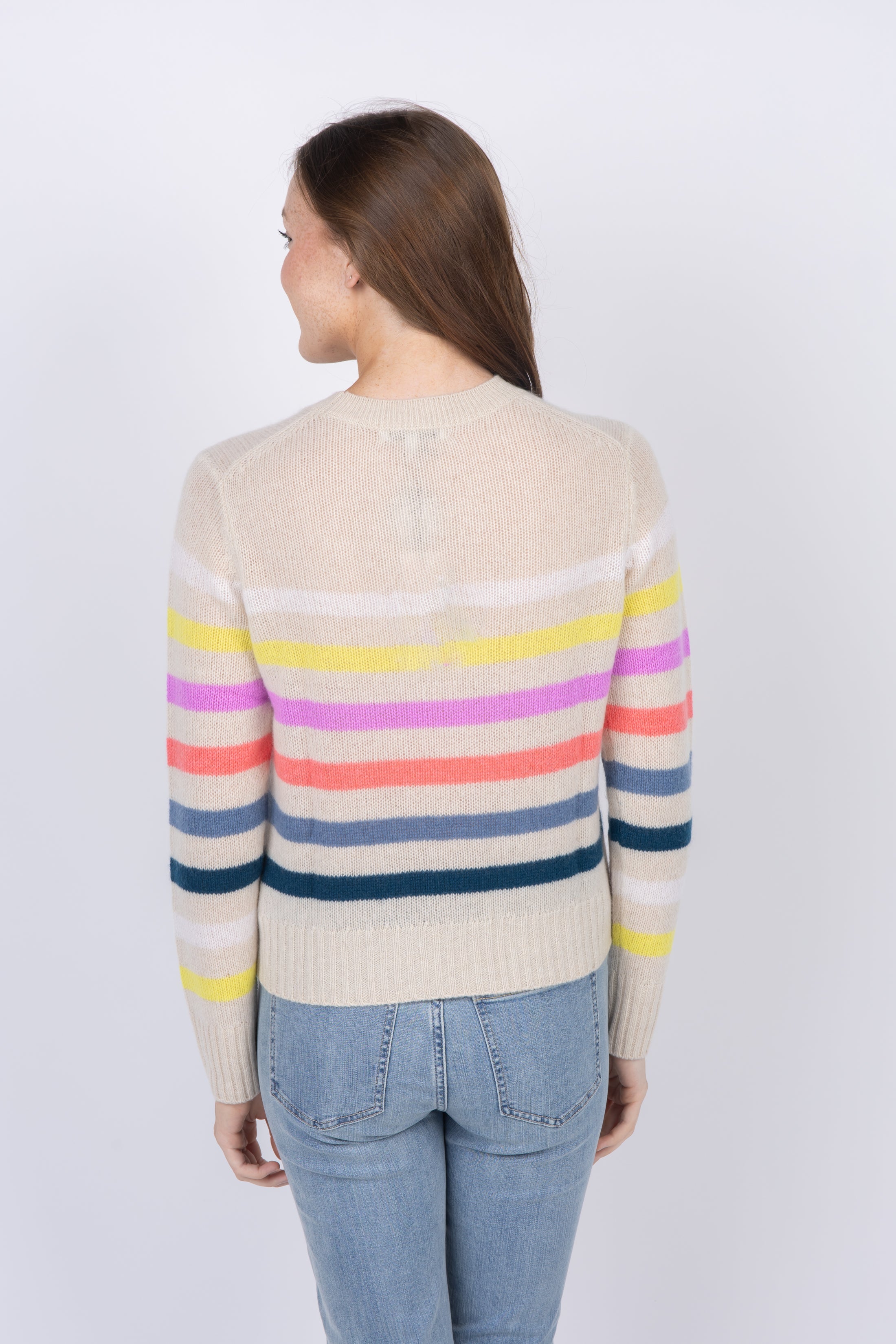 White + Warren Cashmere Featherweight Striped Crewneck in Multi Combo