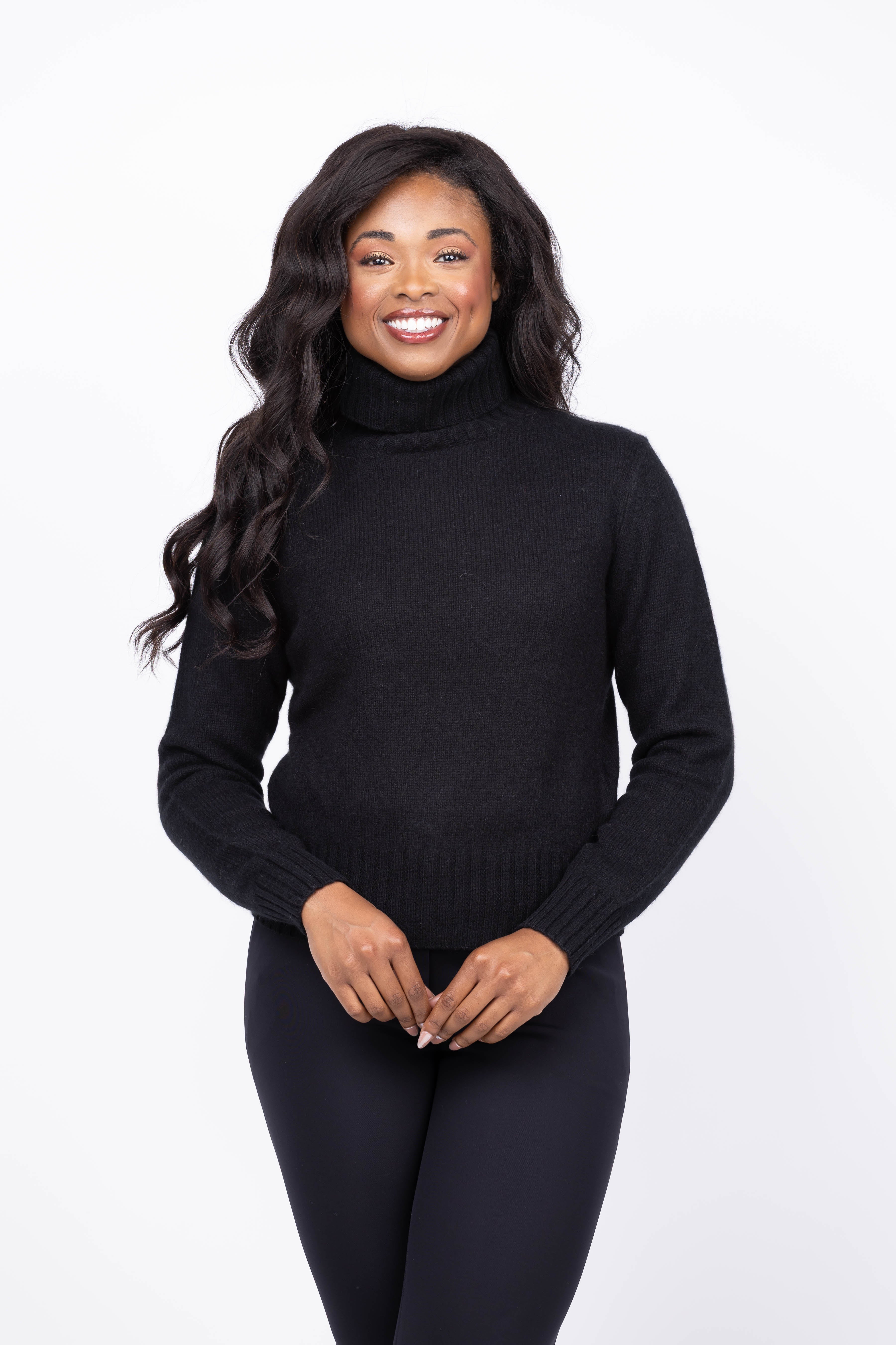 White & Warren Cashmere Featherweight Turtleneck in Black