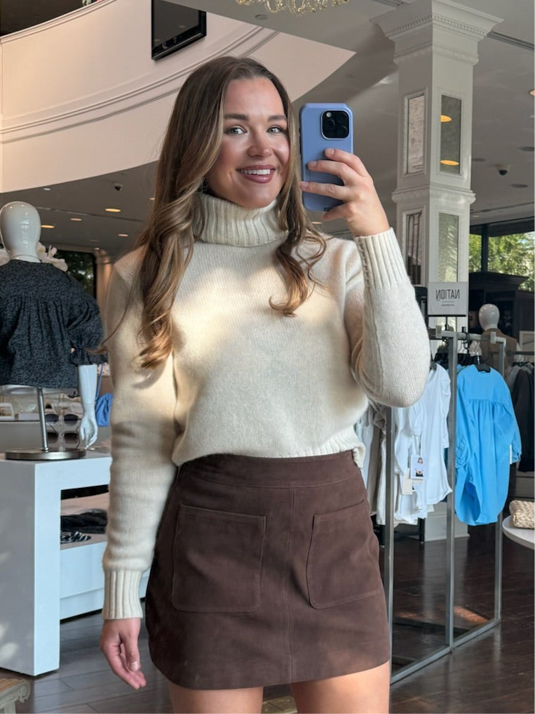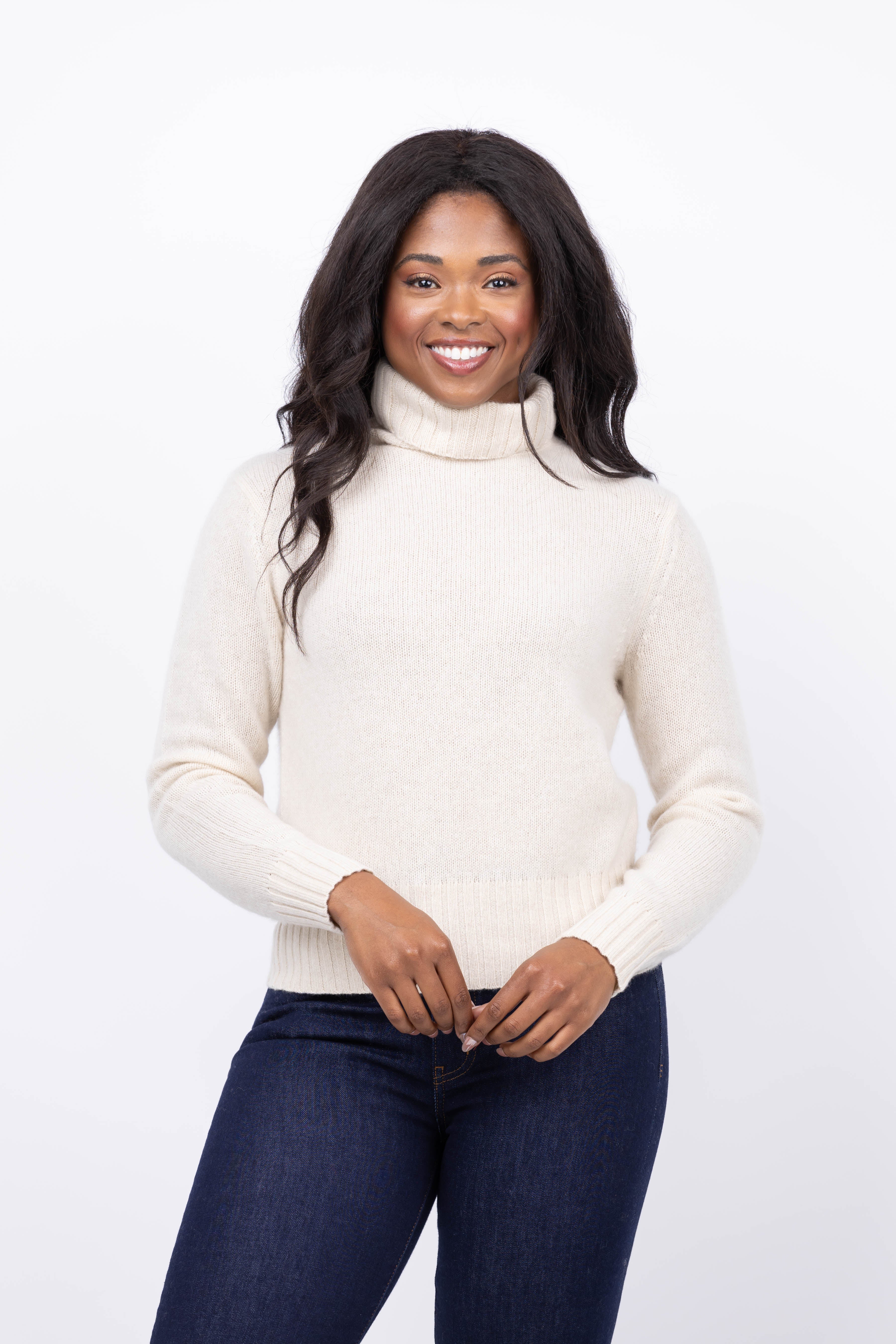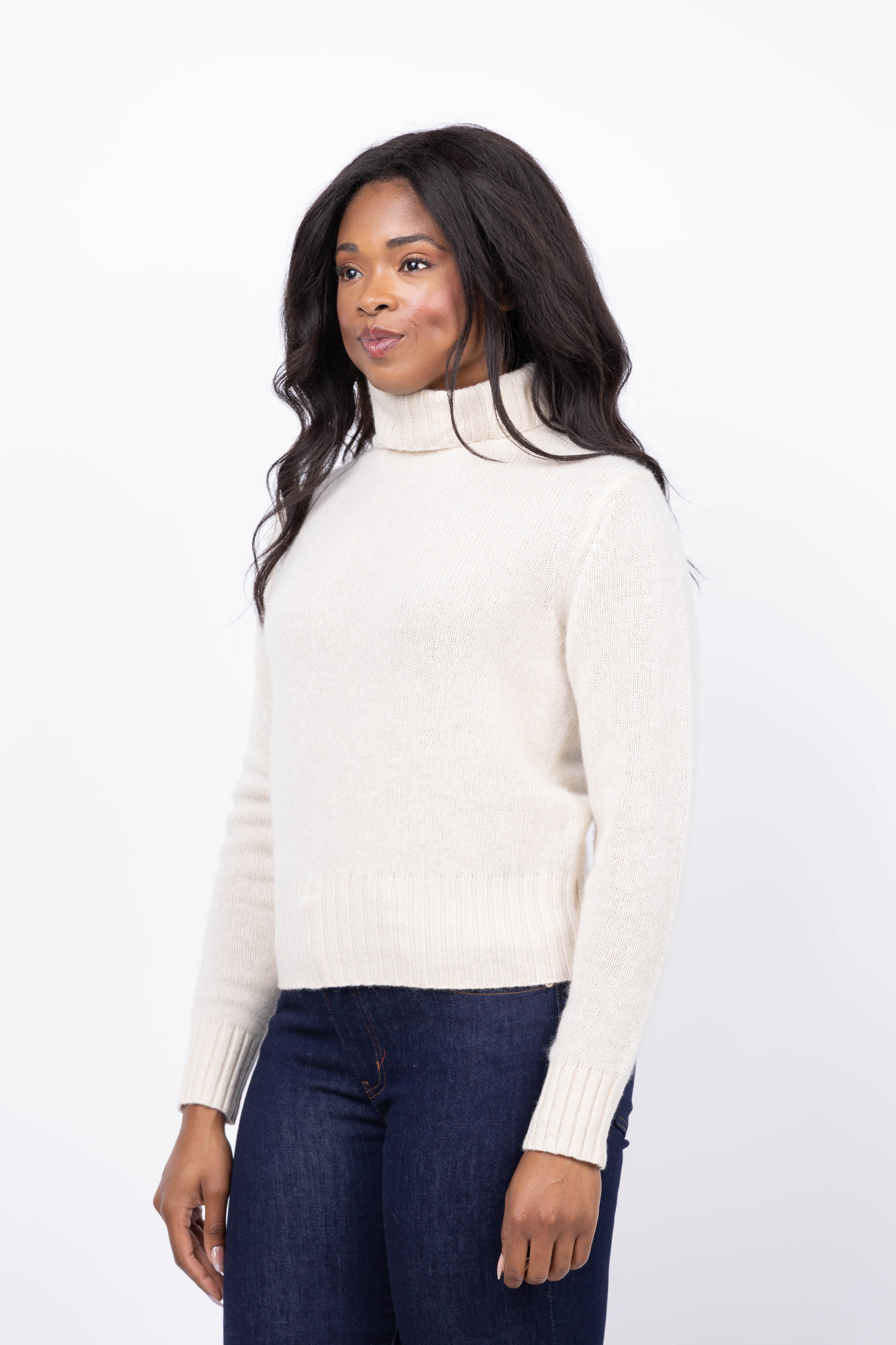 Experience everyday luxury with this White + Warren featherweight cashmere turtleneck in natural heather. Its classic weight and subtly shrunken silhouette deliver a flattering vintage ’90s vibe, while handcrafted tacking at the cuffs adds a refined, artisanal touch. Soft, breathable, and timeless, this elegant piece elevates your wardrobe with effortless style and comfort.