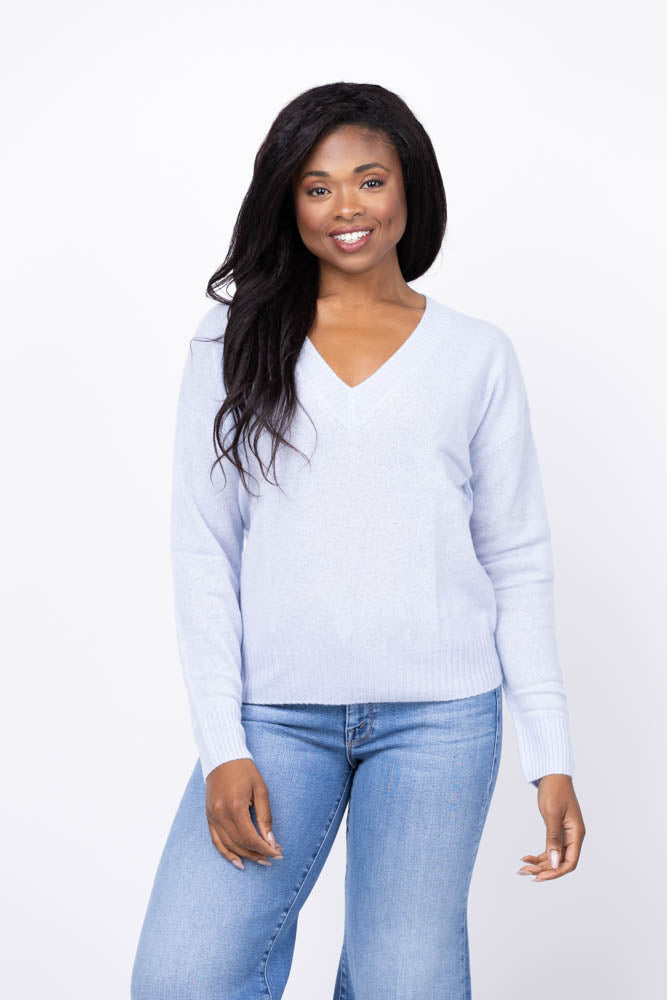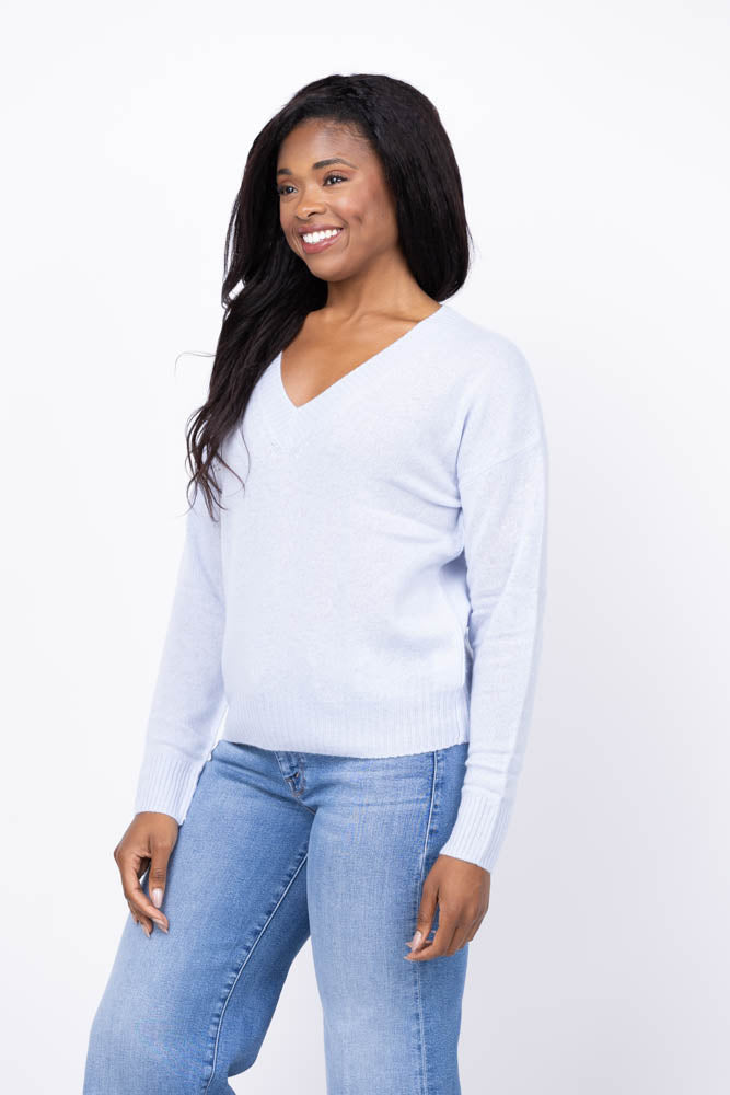 White + Warren Cashmere Featherweight V-neck in Pale Mist