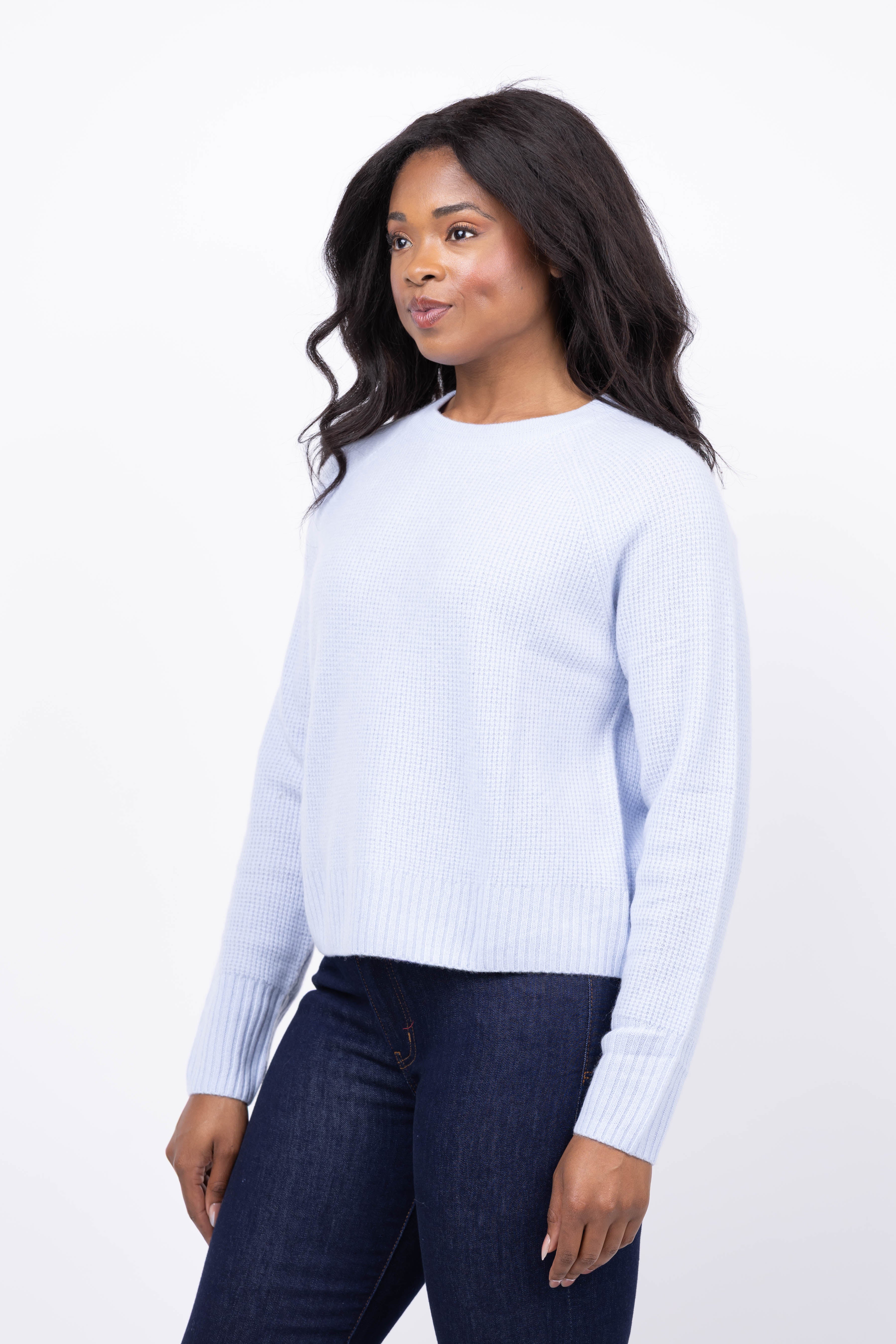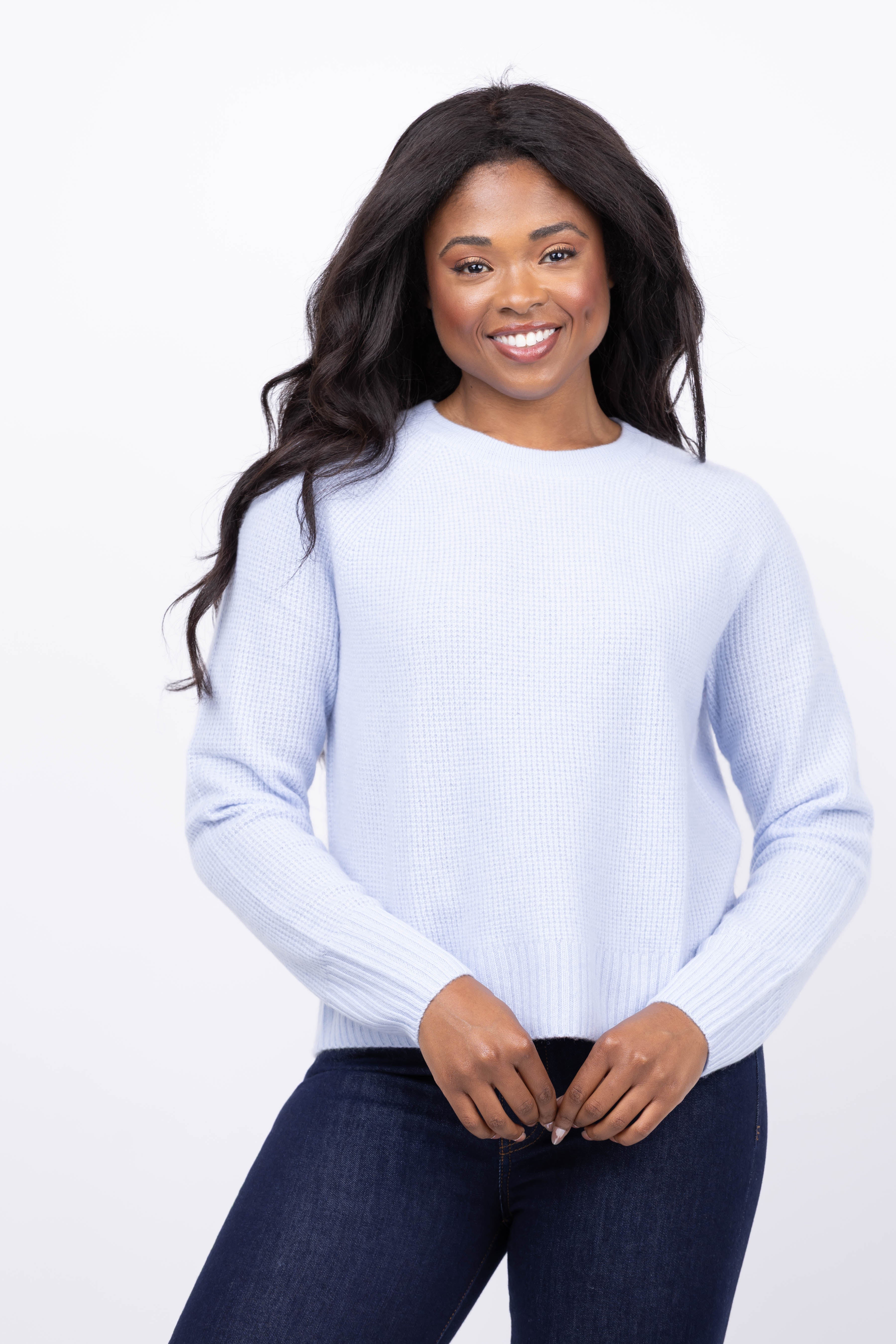 White + Warren Cashmere Waffle Sweatshirt in Pale Mist