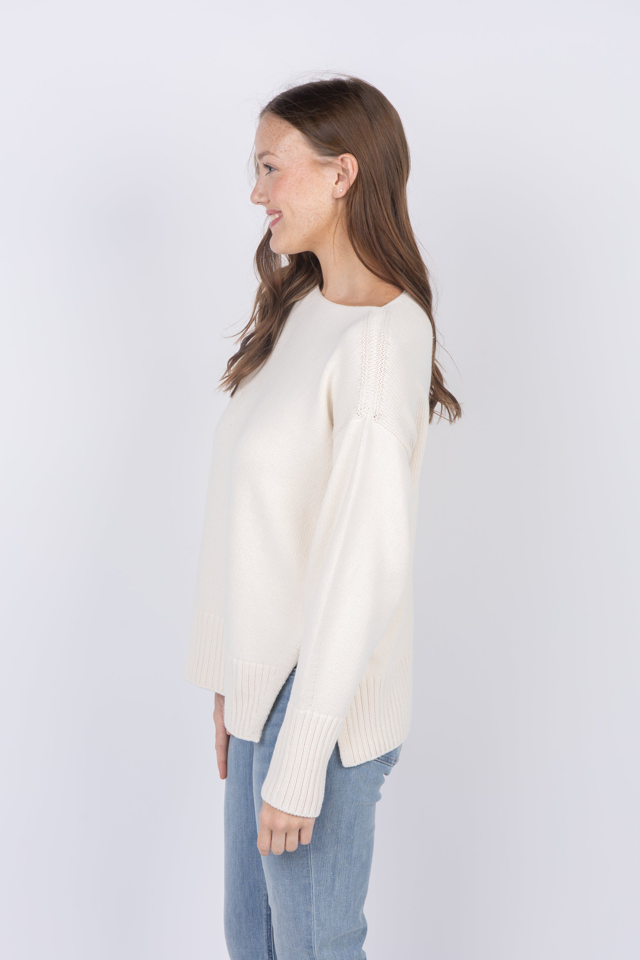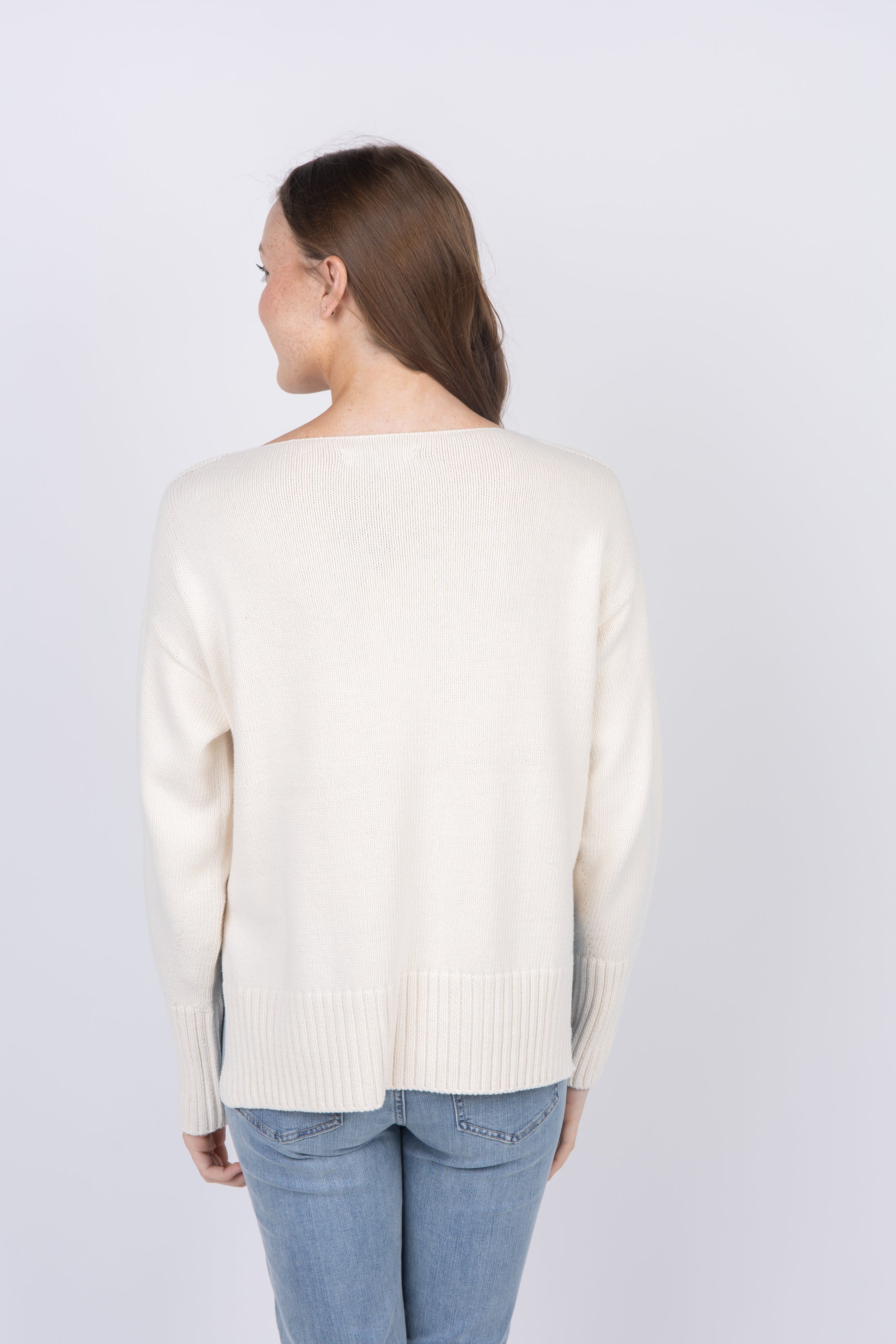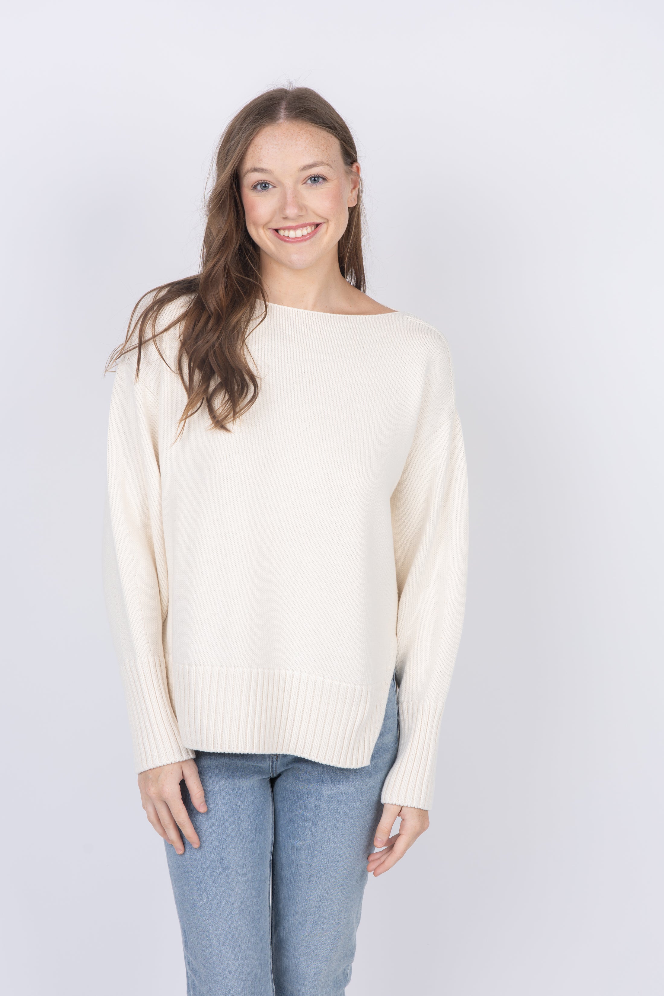 This boatneck sweater is made from organic cotton, which is grown without the use of pesticides or synthetic fertilizers, so it’s a little kinder to the planet. It has an open neckline with a slight roll, and a longer silhouette bordered by elongated ribbed trims. Complete with side slits for added movement, it can be worn as easily with denim as with dresses.