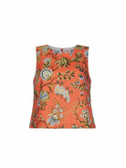 Meet the Cara Cara Mackenzie Top—your new go-to for effortless style! This sleeveless crewneck shell keeps things breezy with its slightly cropped, boxy silhouette that works beautifully layered or solo. French darts at the front bodice create subtle shaping, while the center back zipper with hook-and-eye closure adds a chic finishing touch. Dressed in a vibrant Clover Orange allover print and lined in soft cotton voile, this versatile top is ready to brighten up your wardrobe rotation.