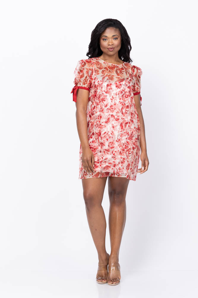 Cinq à Sept Floral Ribbons Junette Dress in Cherry Rose Multi