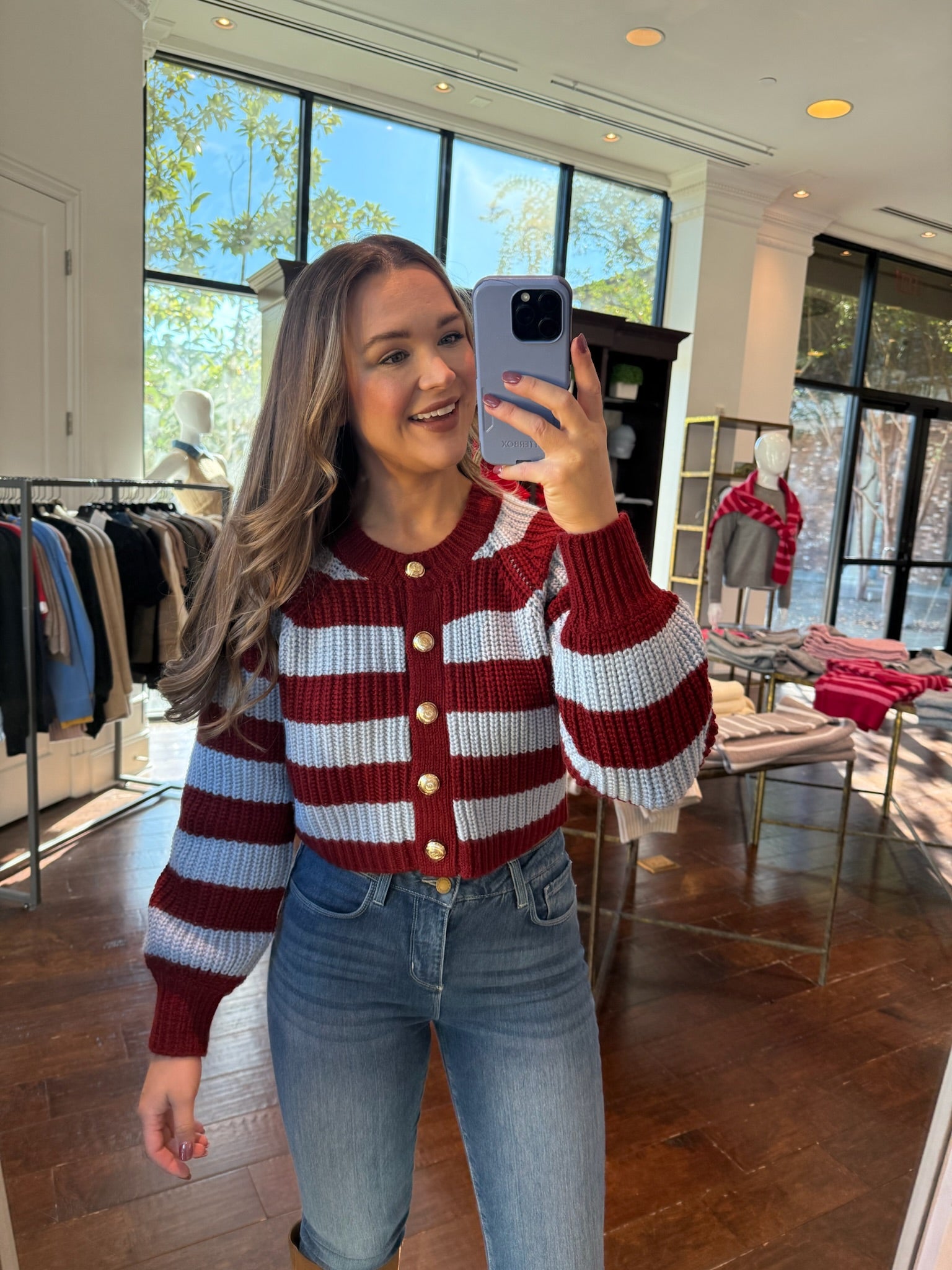 Cinq à Sept Striped Millie Cardigan in Misty Blue/Bordeaux
