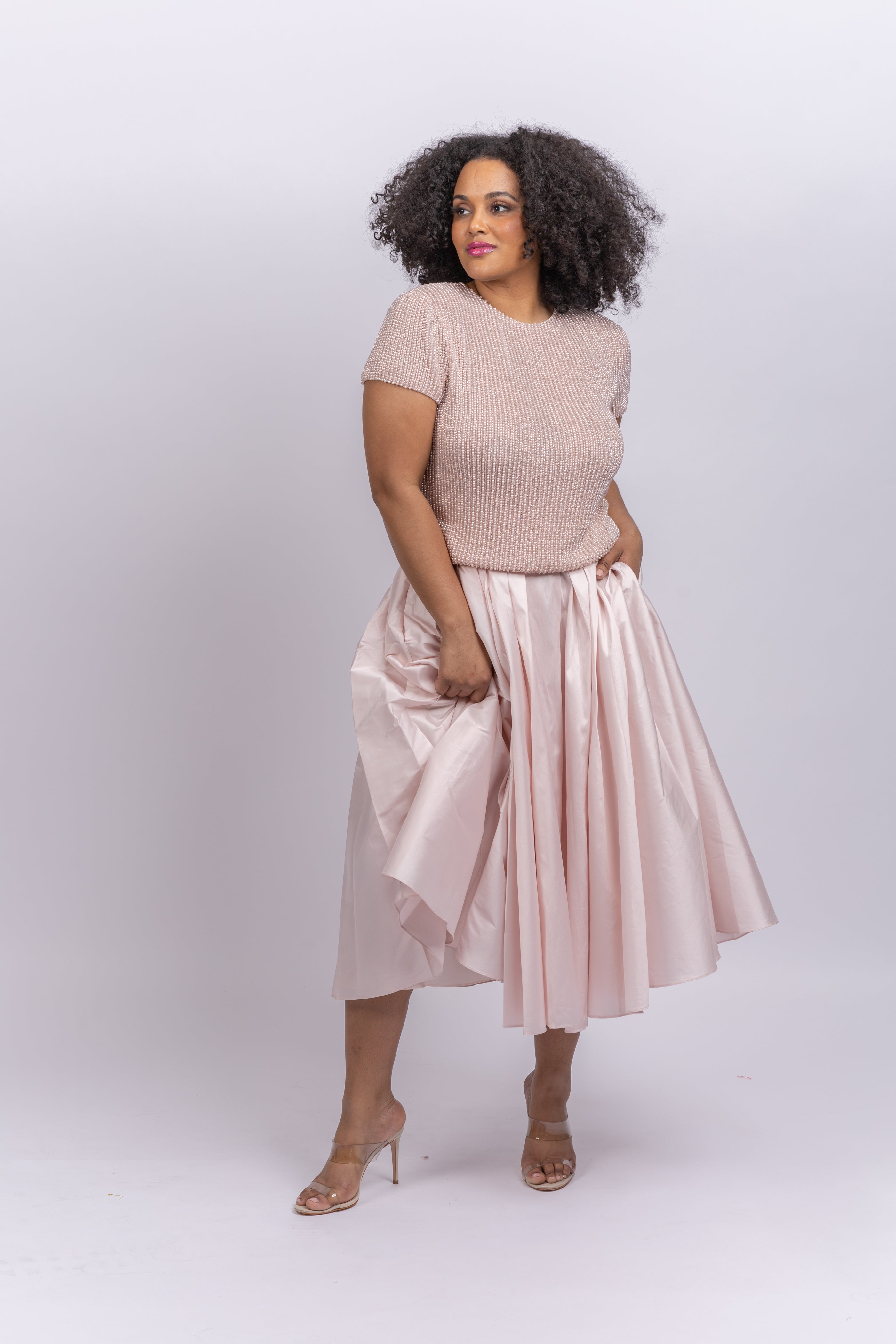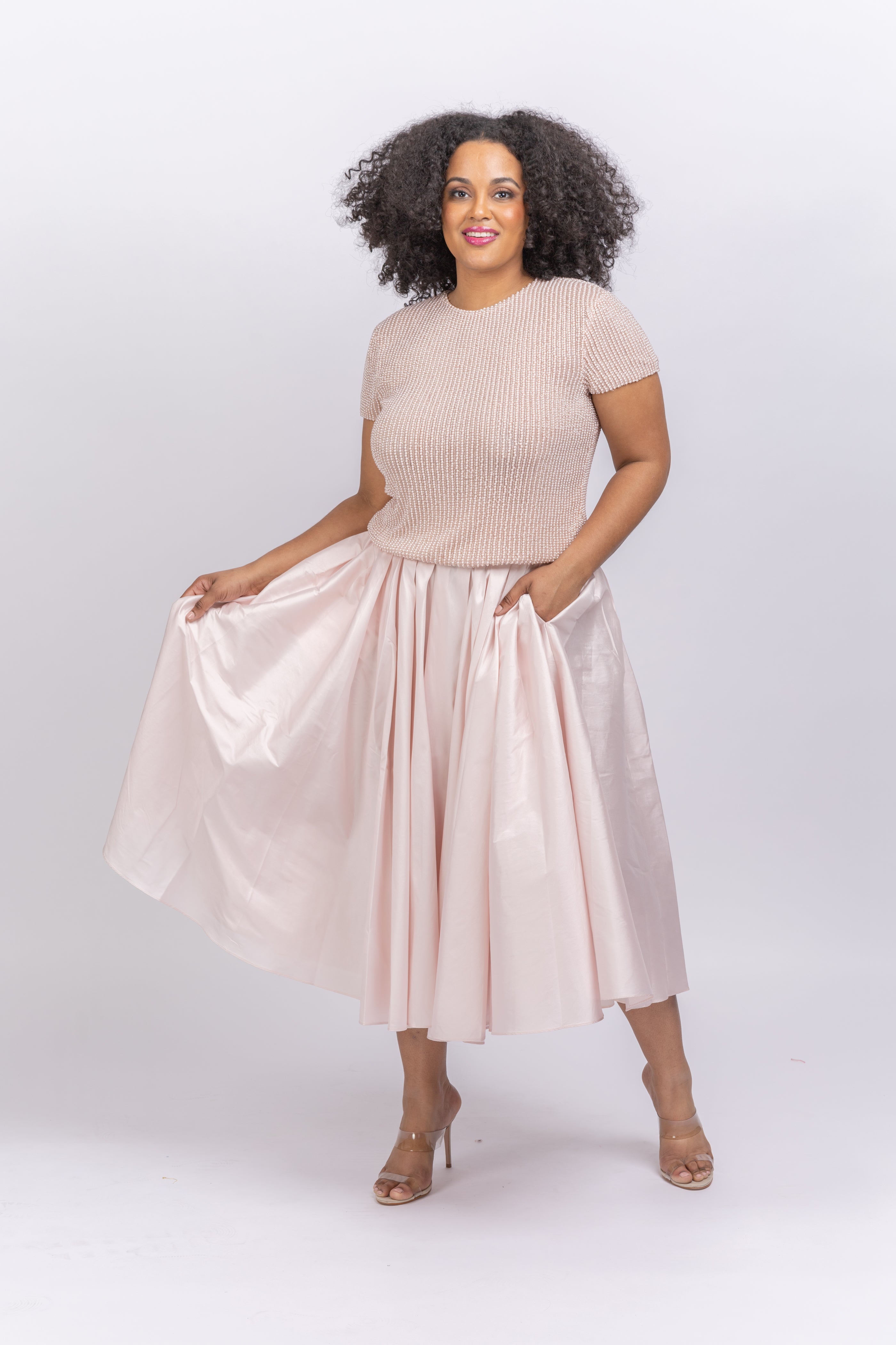 Emily Shalant Taffeta Tea Length Midi Skirt Blush