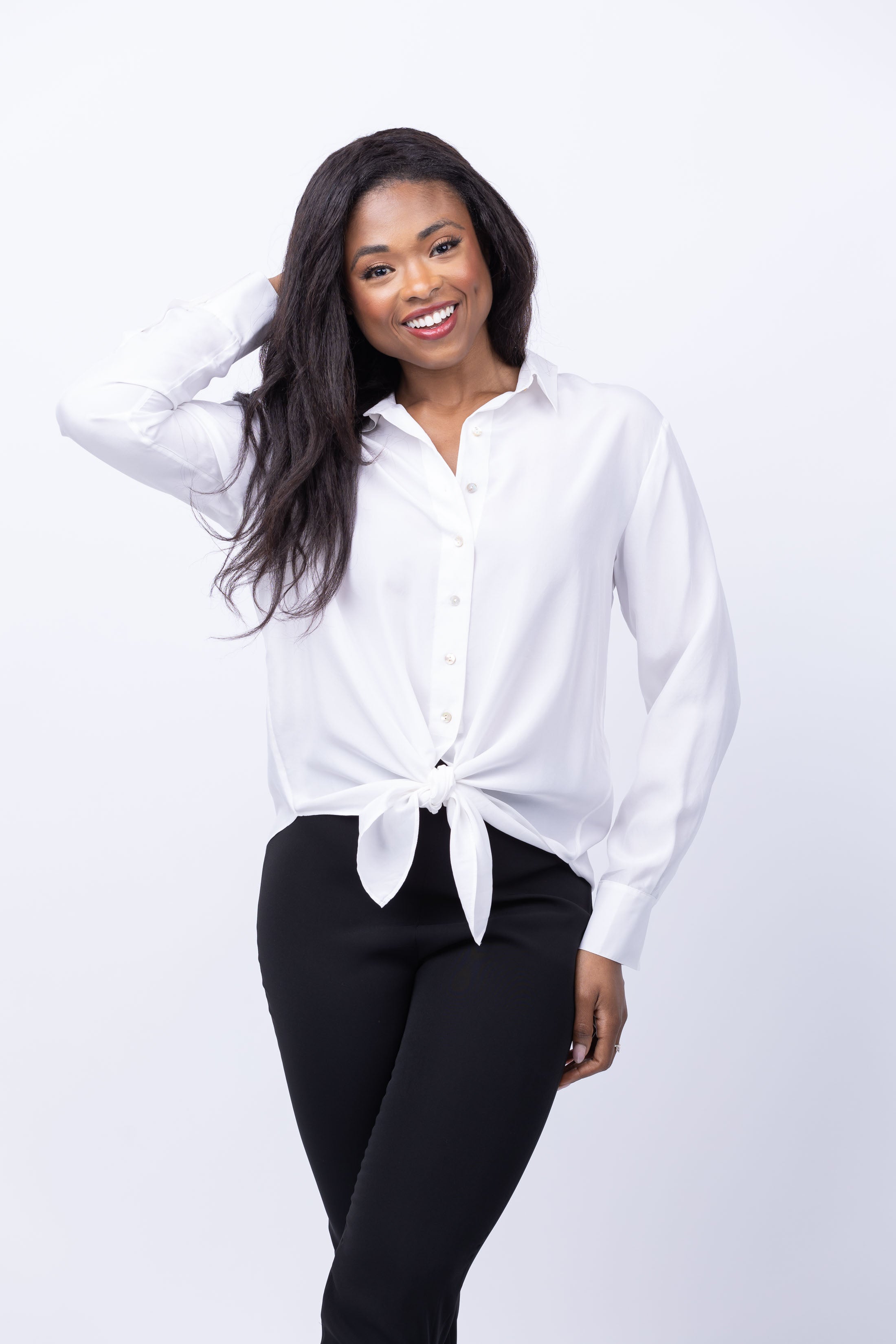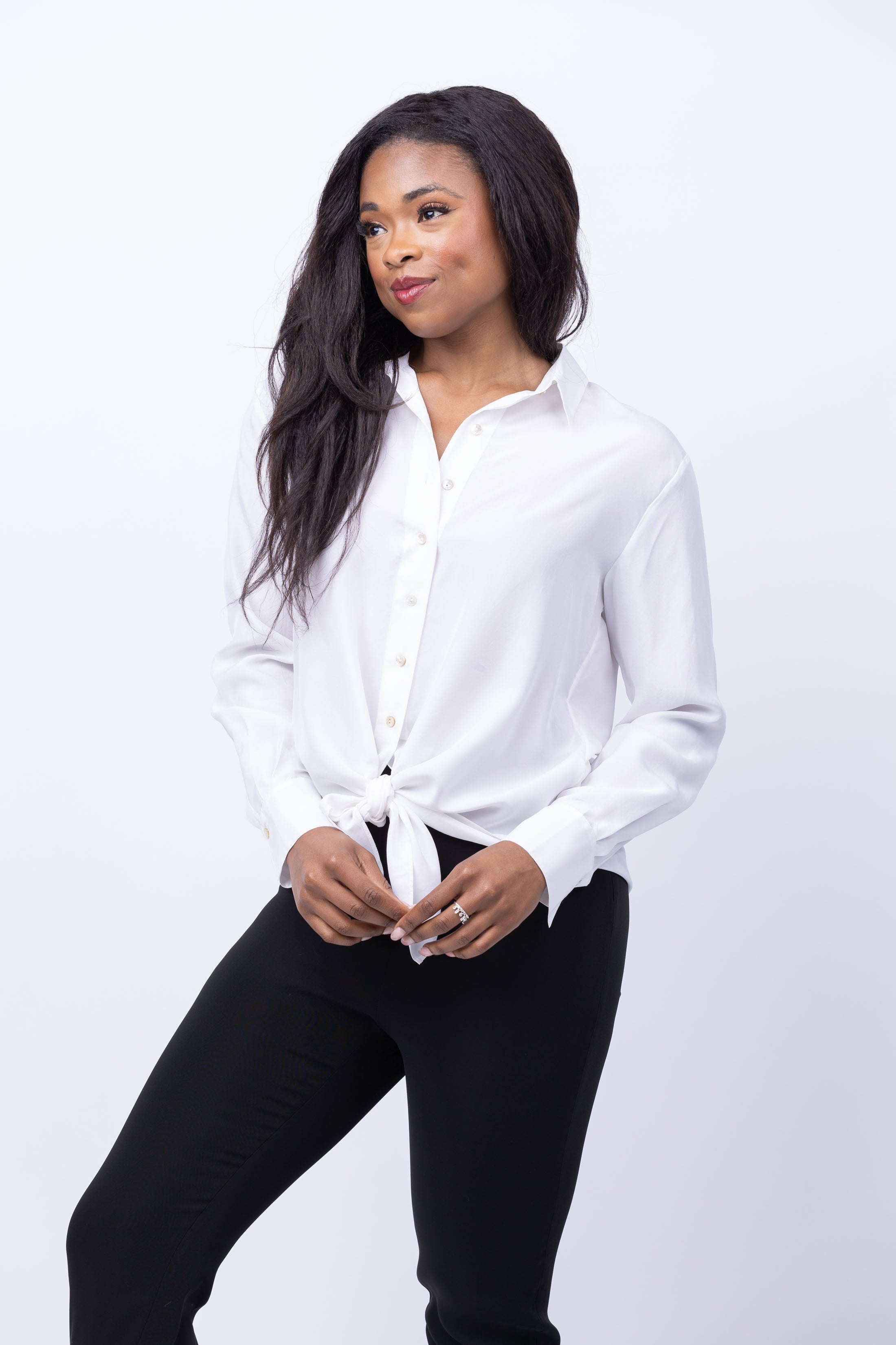 The ultimate wardrobe staple - the button down shirt - now updated with a stylish tie front detail. Effortless and essential, this forever-favorite shirt will step up season-after-season.