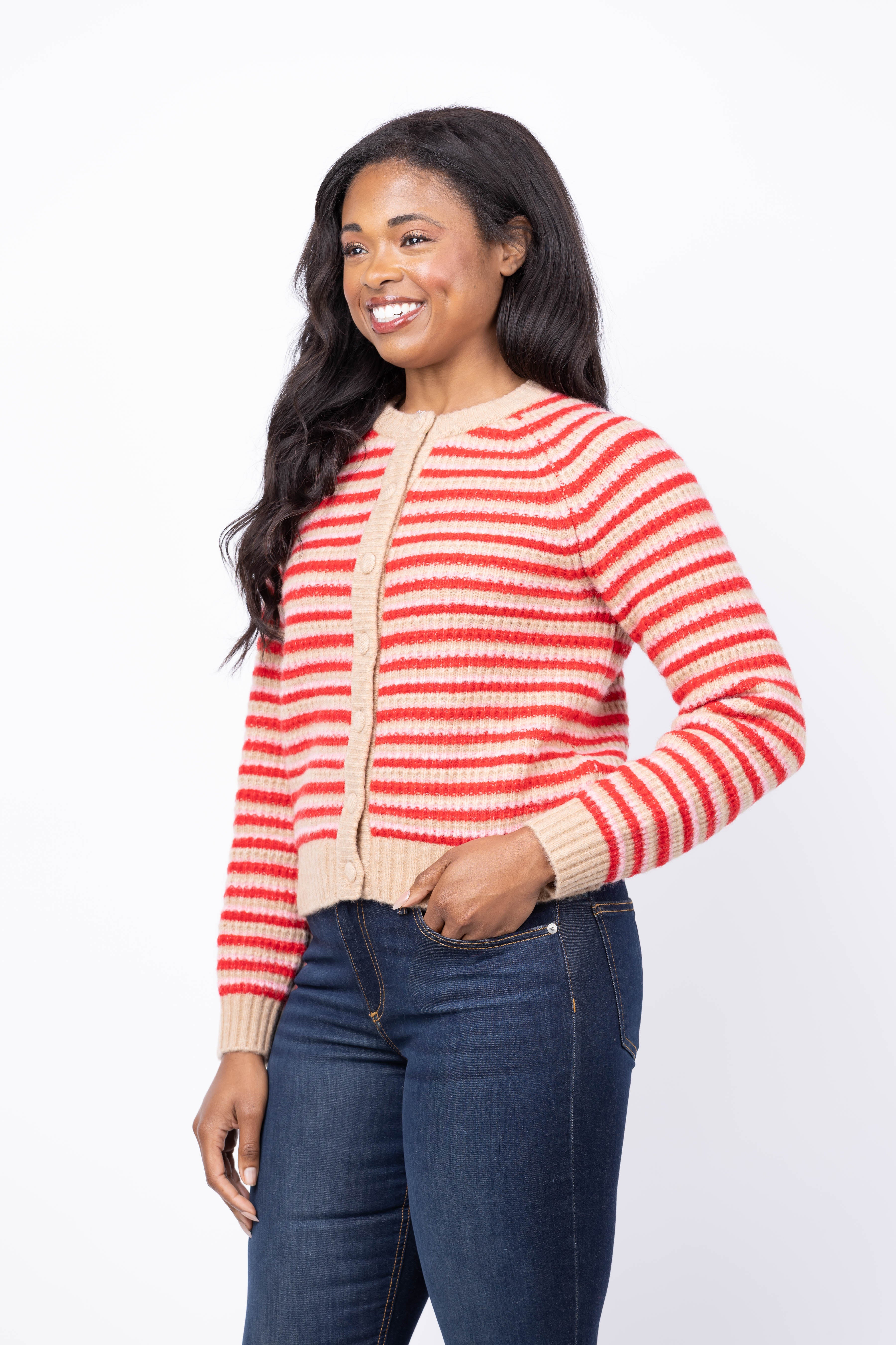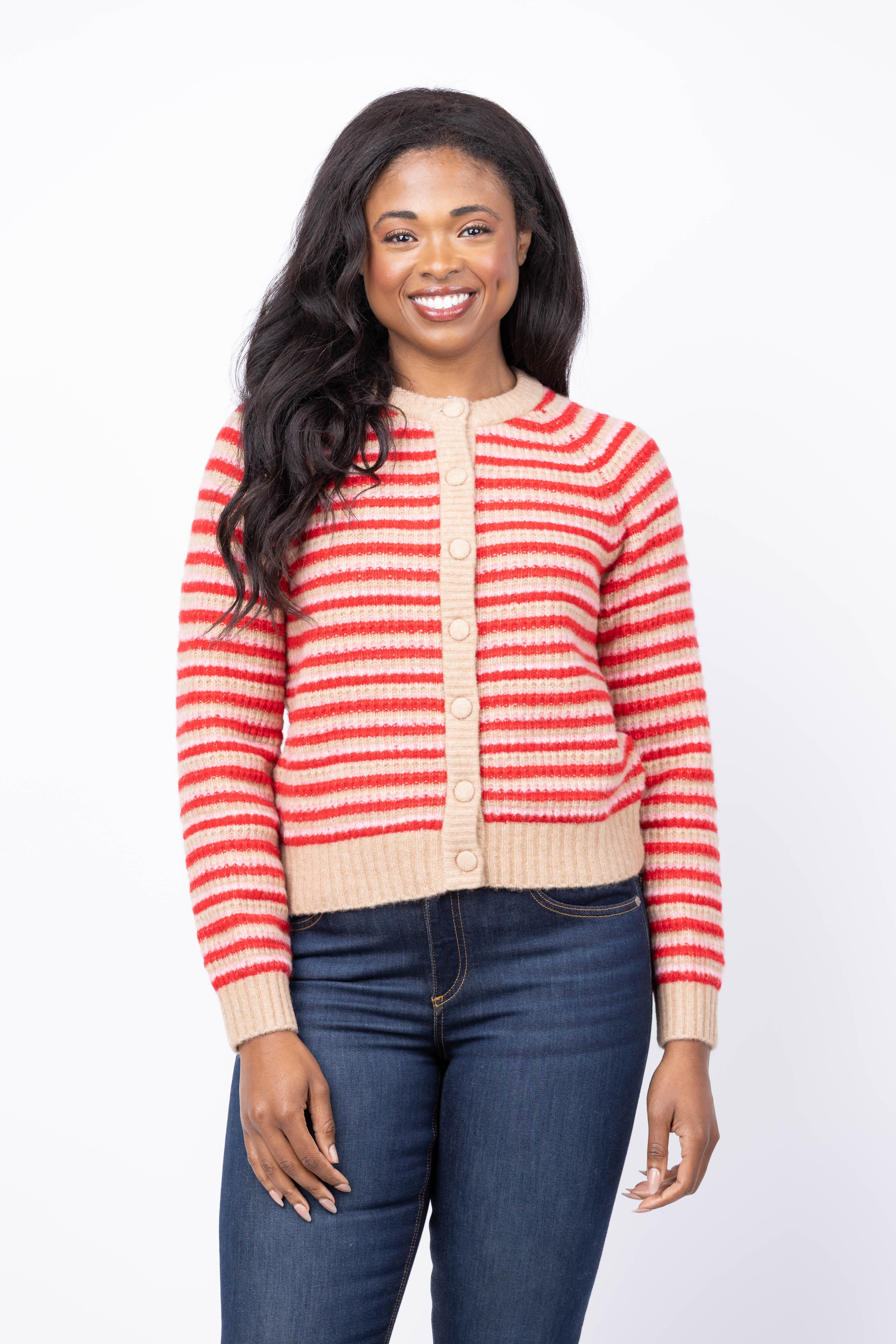 Lilla P Button Front Striped Cardigan in Holly Stripe