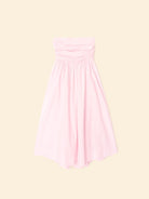 The XiRENA Clea Dress in Gloss Pink combines crisp paper poplin fabric with a refined touch for a standout look. This strapless midi sundress features a gathered bodice with a smocked back for a comfortable fit, convenient side seam pockets, and a stylish high-low hem that adds movement and flair. Perfect for warm days when you want to feel effortlessly chic and feminine.