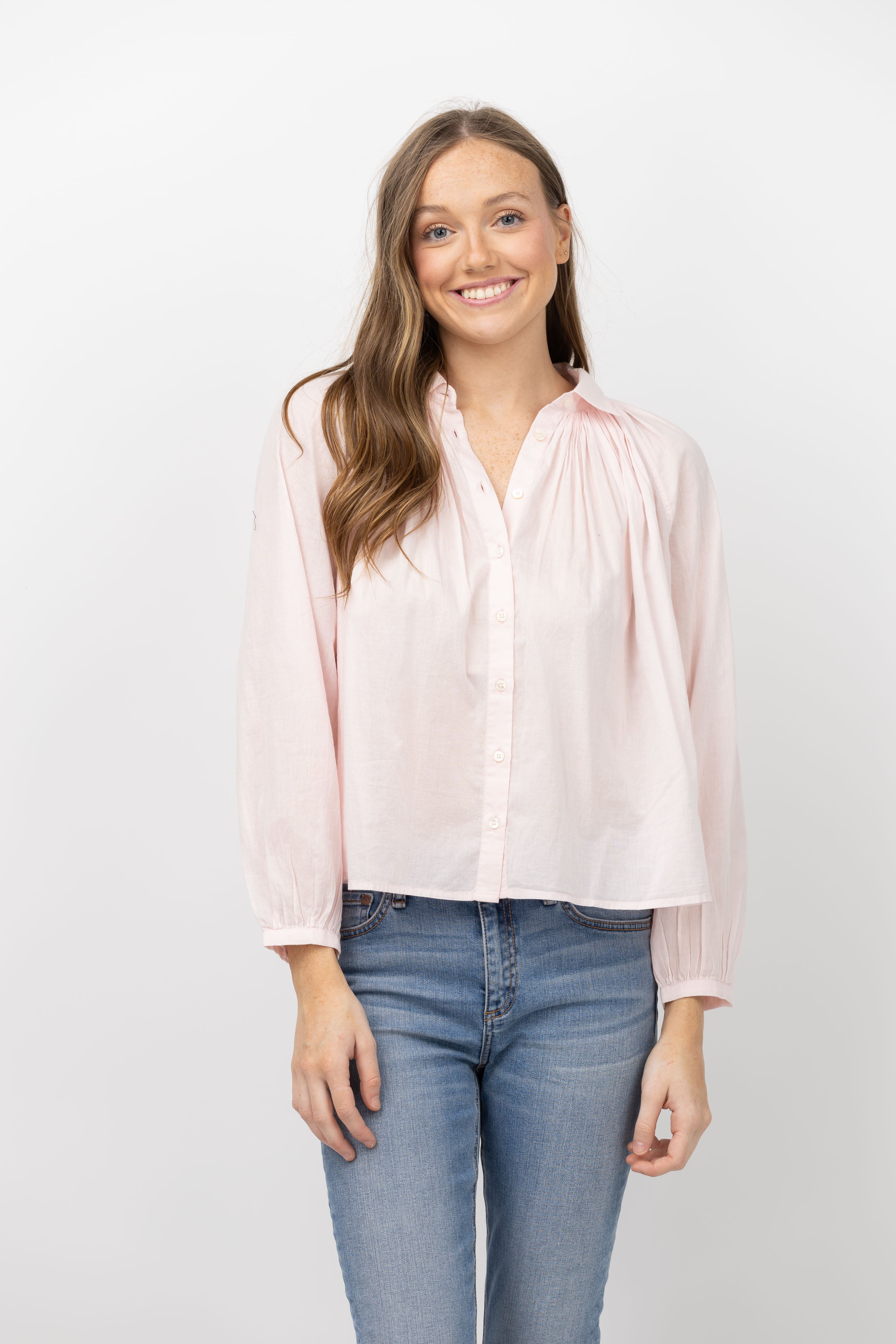 Introducing the Xirena Fabienne Shirt in Biscuit. Made with superfine cotton voile, this billowy blouse features raglan sleeves and shirring details for a soft, luxurious feel. Perfect for any occasion, add this versatile piece to your wardrobe today!