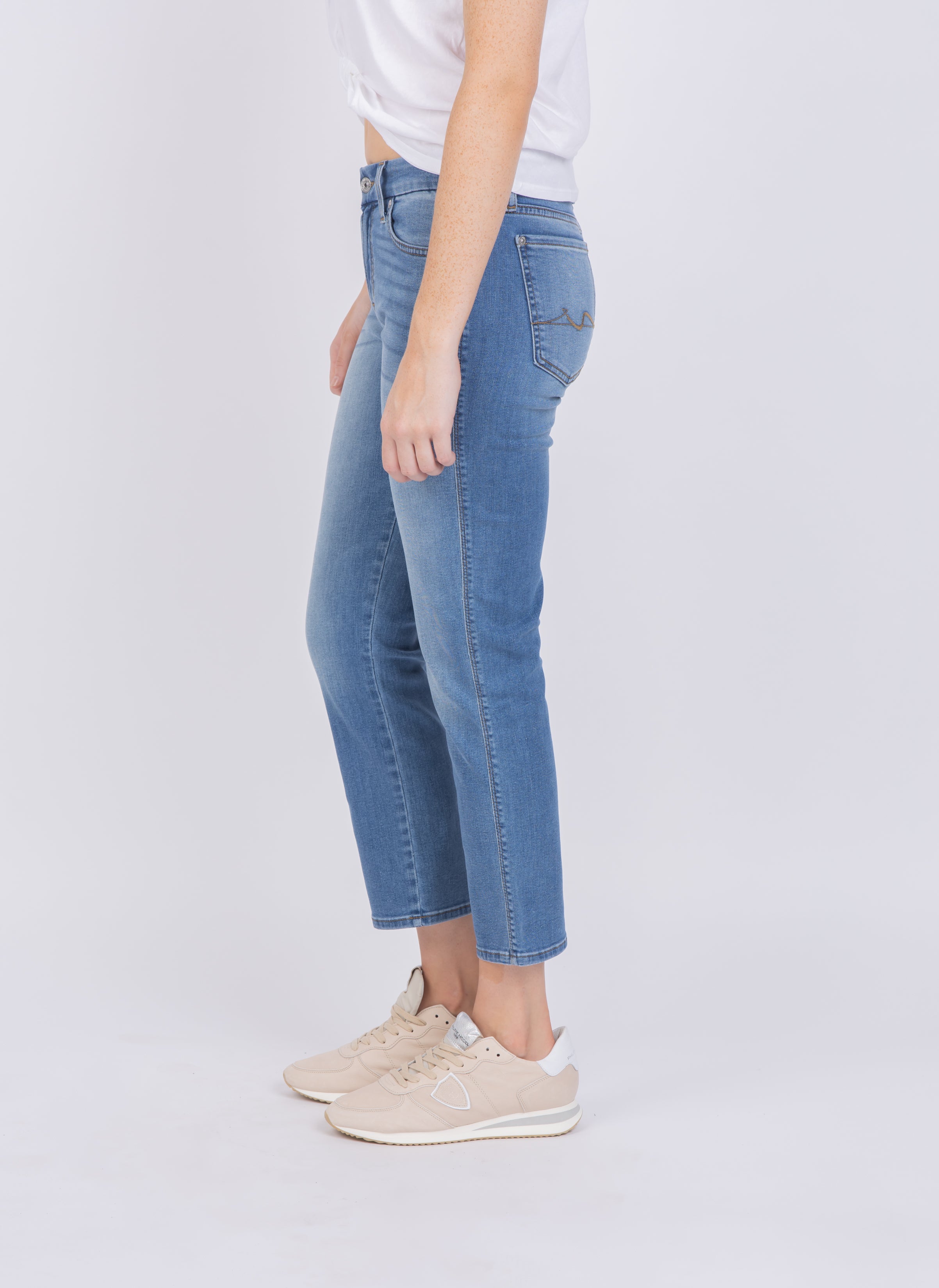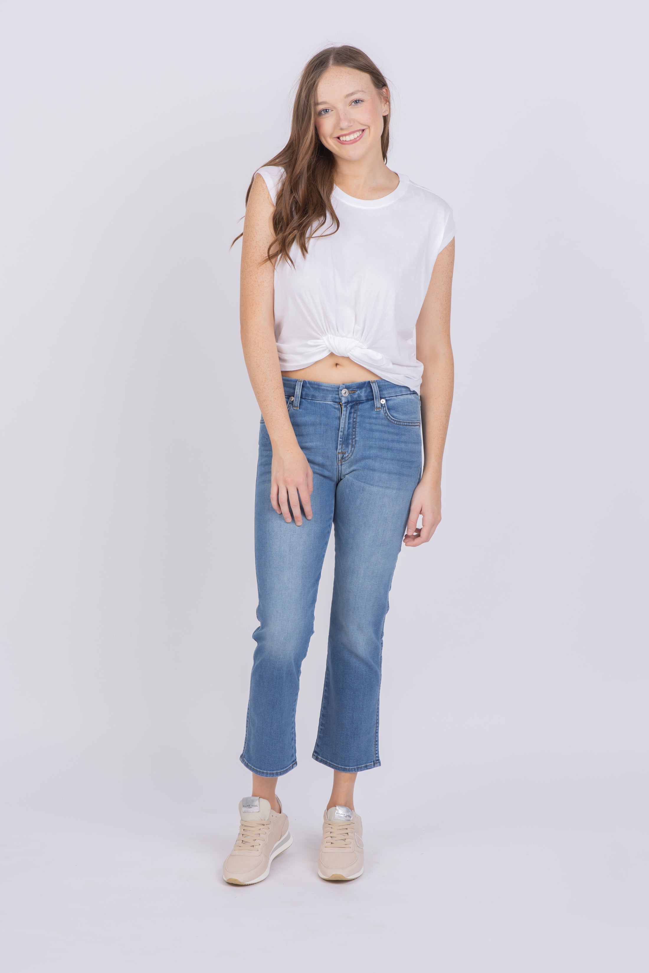 Bring an effortless touch of style to your everyday look with the 7 for All Mankind Kimmie Jean in Sapphire Blue! Crafted from premium denim for lasting comfort, this jean features a slim silhouette for a modern look and feel. With a versatile blue hue, you can pair with any top for a chic and timeless outfit. Unmatched luxury and quality, everyday.