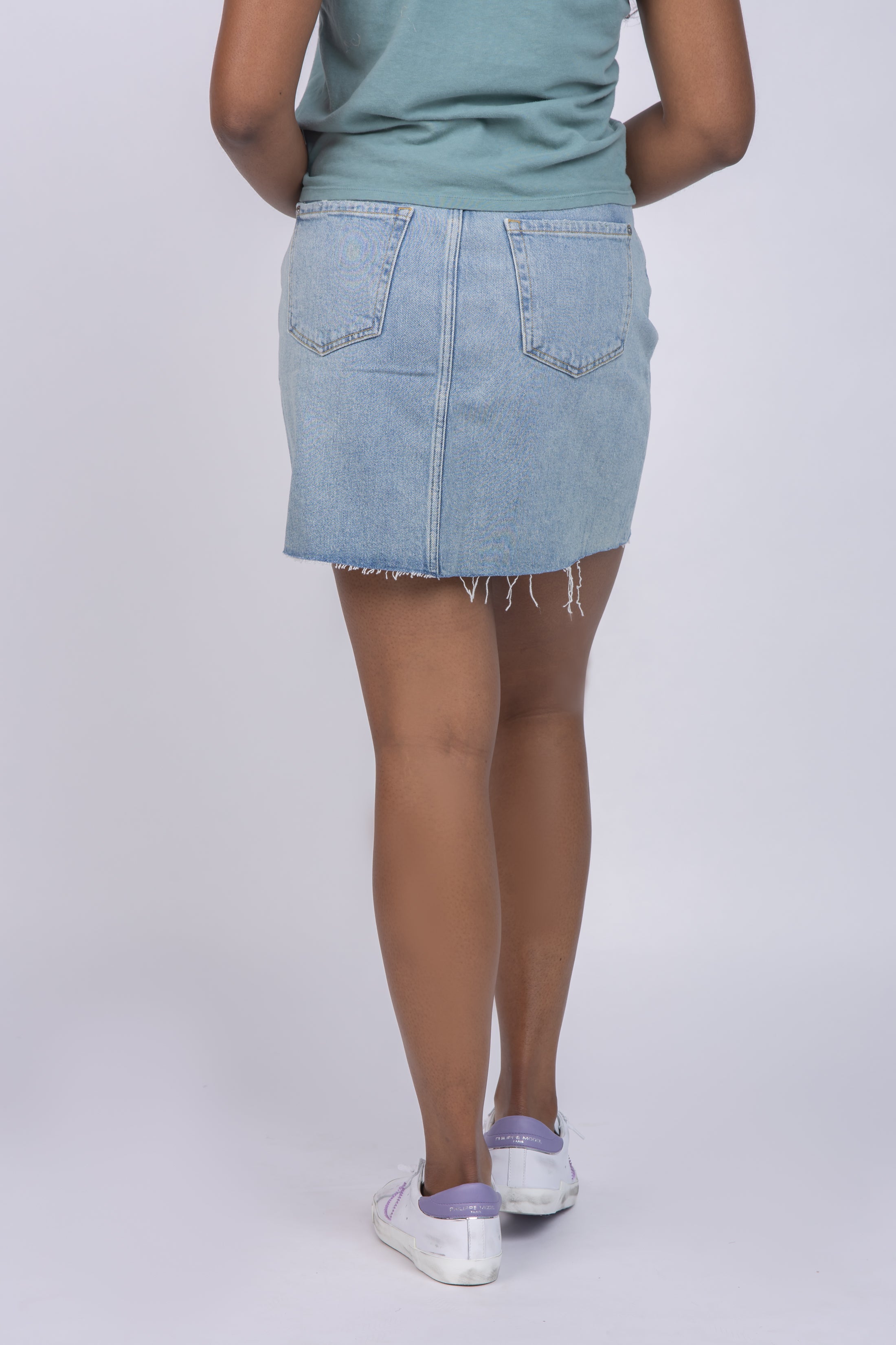 Turn heads with the 7 for All Mankind Mia Skirt, designed with a light air wash and trendy destructed fringed hem. Set yourself apart from the crowd and enjoy maximum comfort in this stylish piece. Create a fashion statement today with this staple skirt!