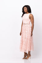 Alice + Olivia Babette Crewneck Sleeveless Midi Dress in Pink Bloom