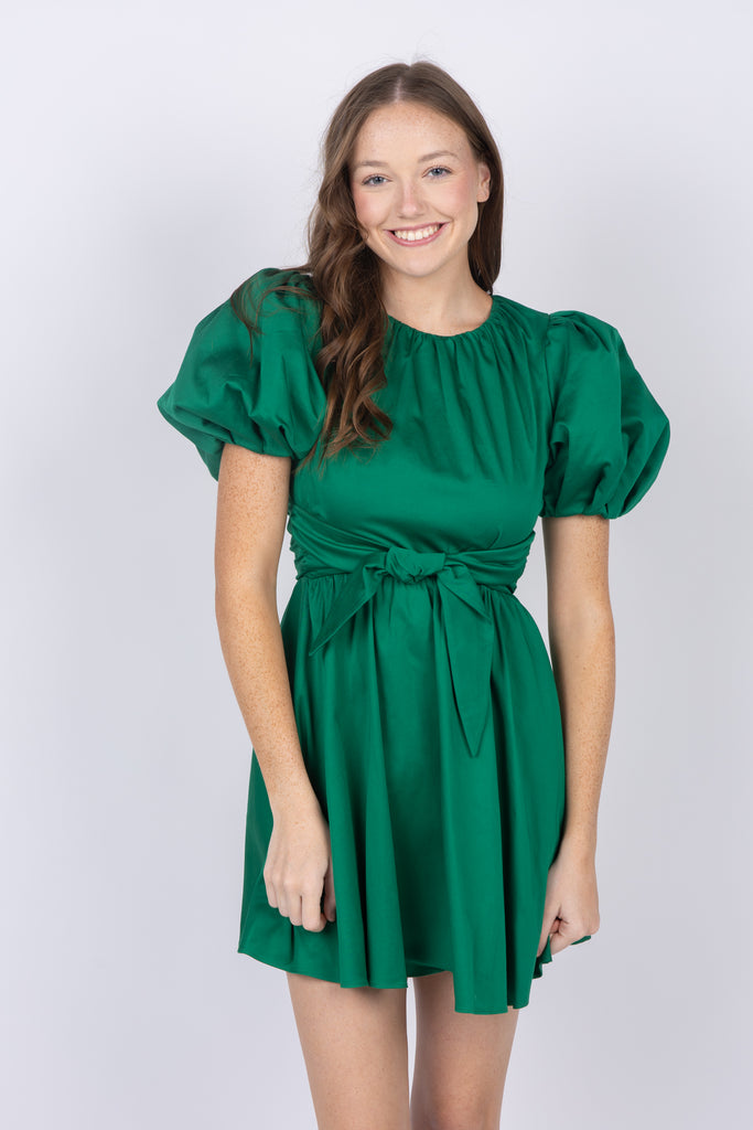 Alice+Olivia Kylan Puff Sleeve Mini Dress in Emerald