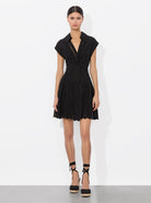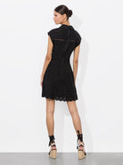 Alice + Olivia Mila Eyelet Deep V Twist Front Mini Dress in Black