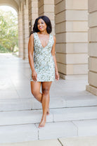 Alice + Olivia Tatum Deep V Mini Dress in Mineral Blue