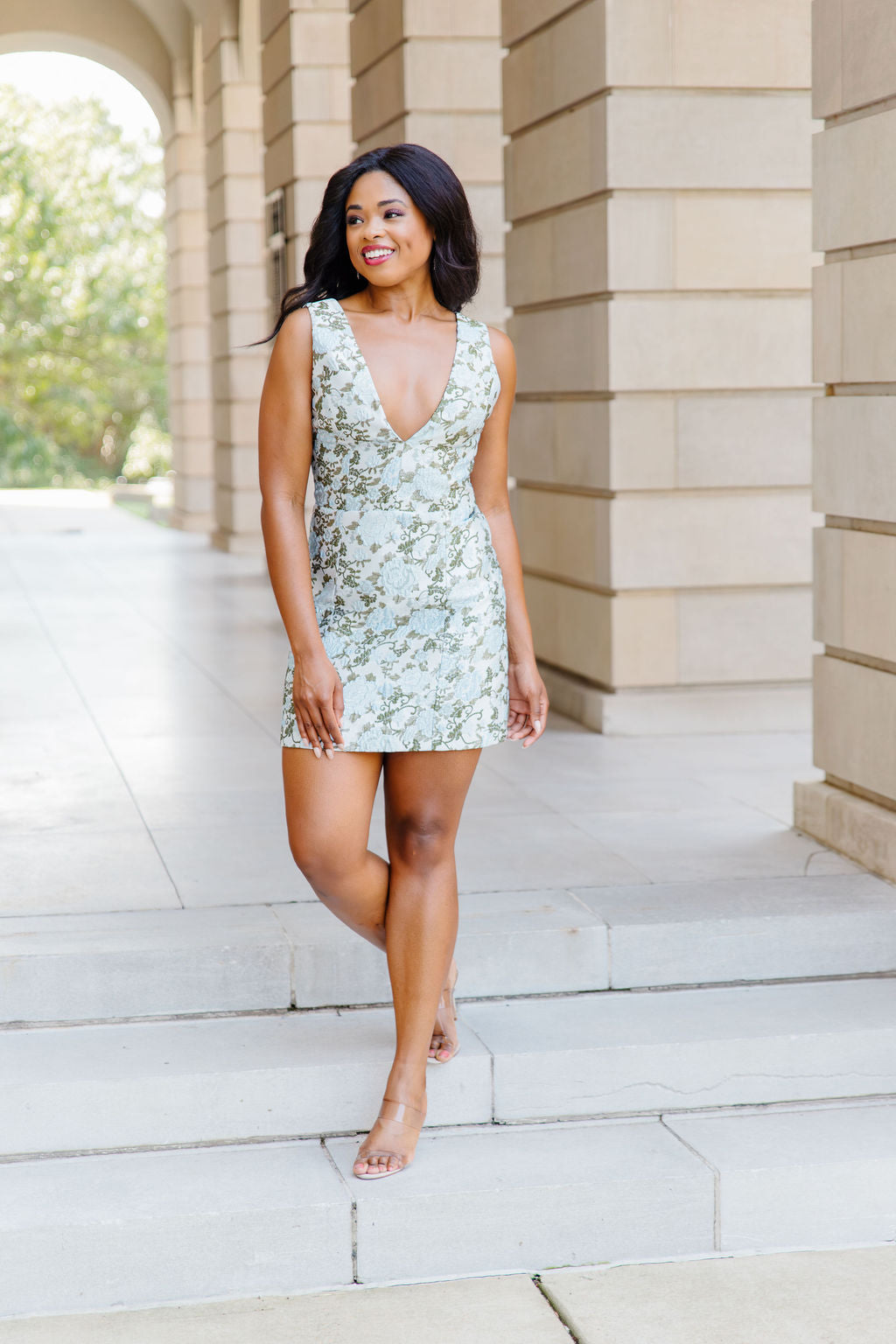 Make a dazzling entrance with the Alice + Olivia Tatum Deep V Mini Dress. Crafted from shimmering printed jacquard, its A-line silhouette flatters every figure while flowing gracefully with your movements. The plunging V-neckline adds a bold touch of allure, complemented by a smocked back and hidden zipper for a flawless, comfortable fit. With its subtle sheen and eye-catching details, this mini dress is designed to turn heads and spark conversations wherever you go.