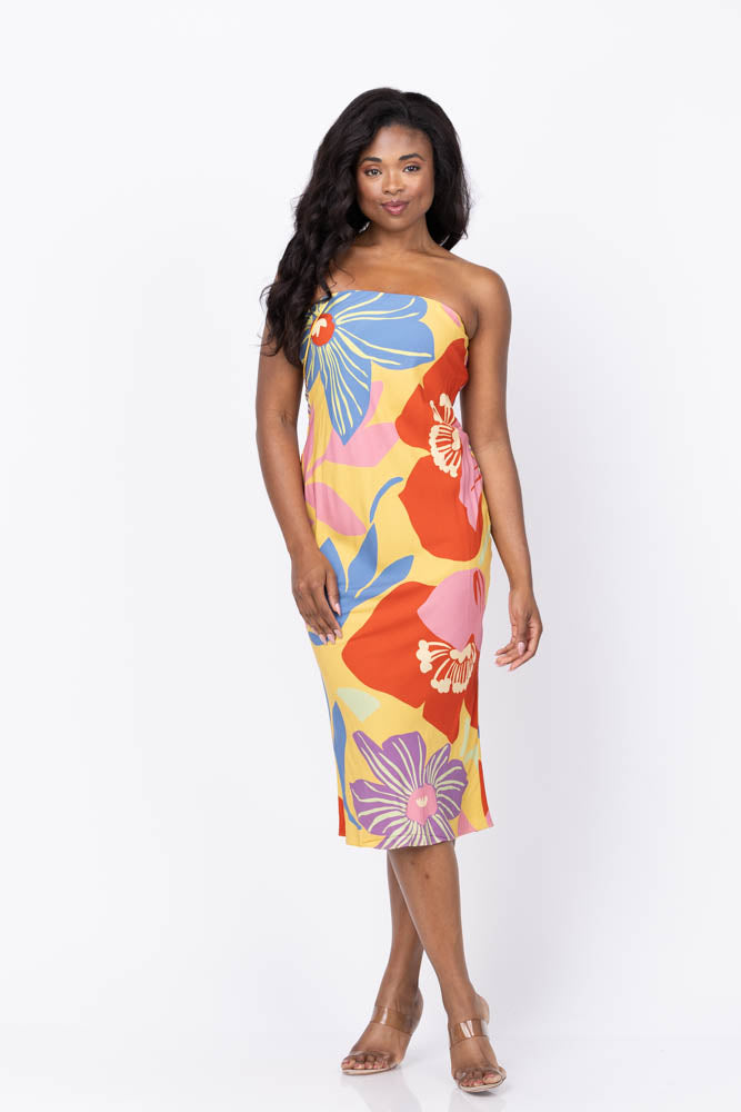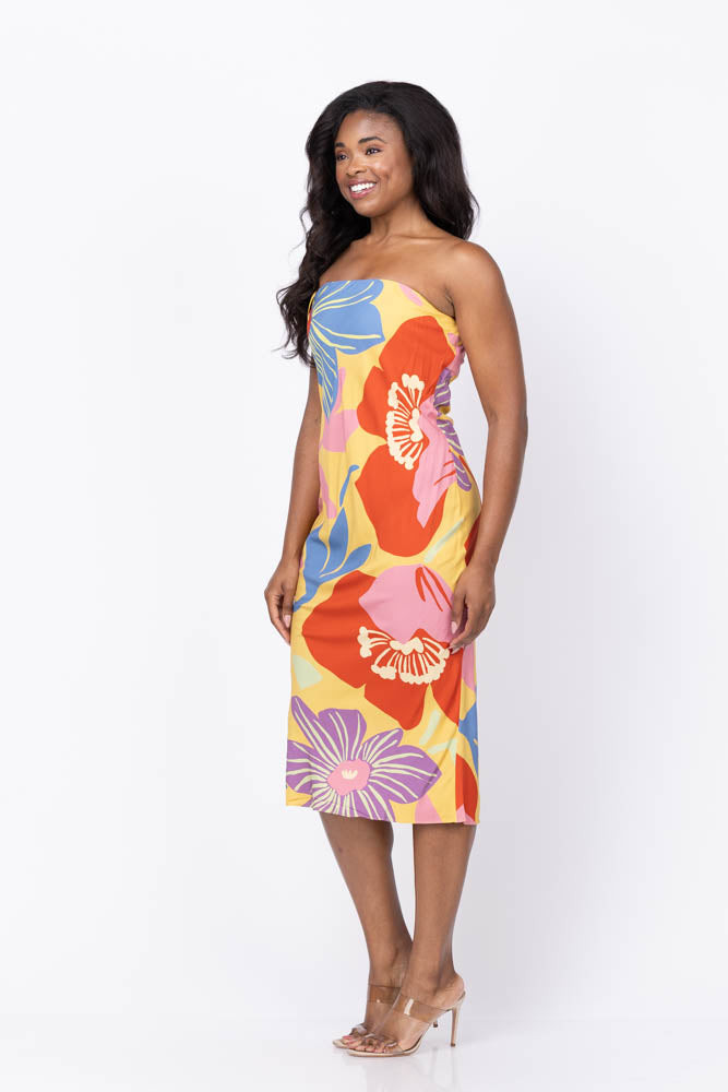 The Amanda Upricard Shiran Dress in Pensacola Print combines elegant midi length with a strapless silhouette, showcasing a vibrant floral pattern that brightens any occasion. Its flattering cut highlights your shoulders and neckline, making it perfect for warm-weather events or evening outings. Embrace effortless style and confident charm with this standout dress designed to turn heads.