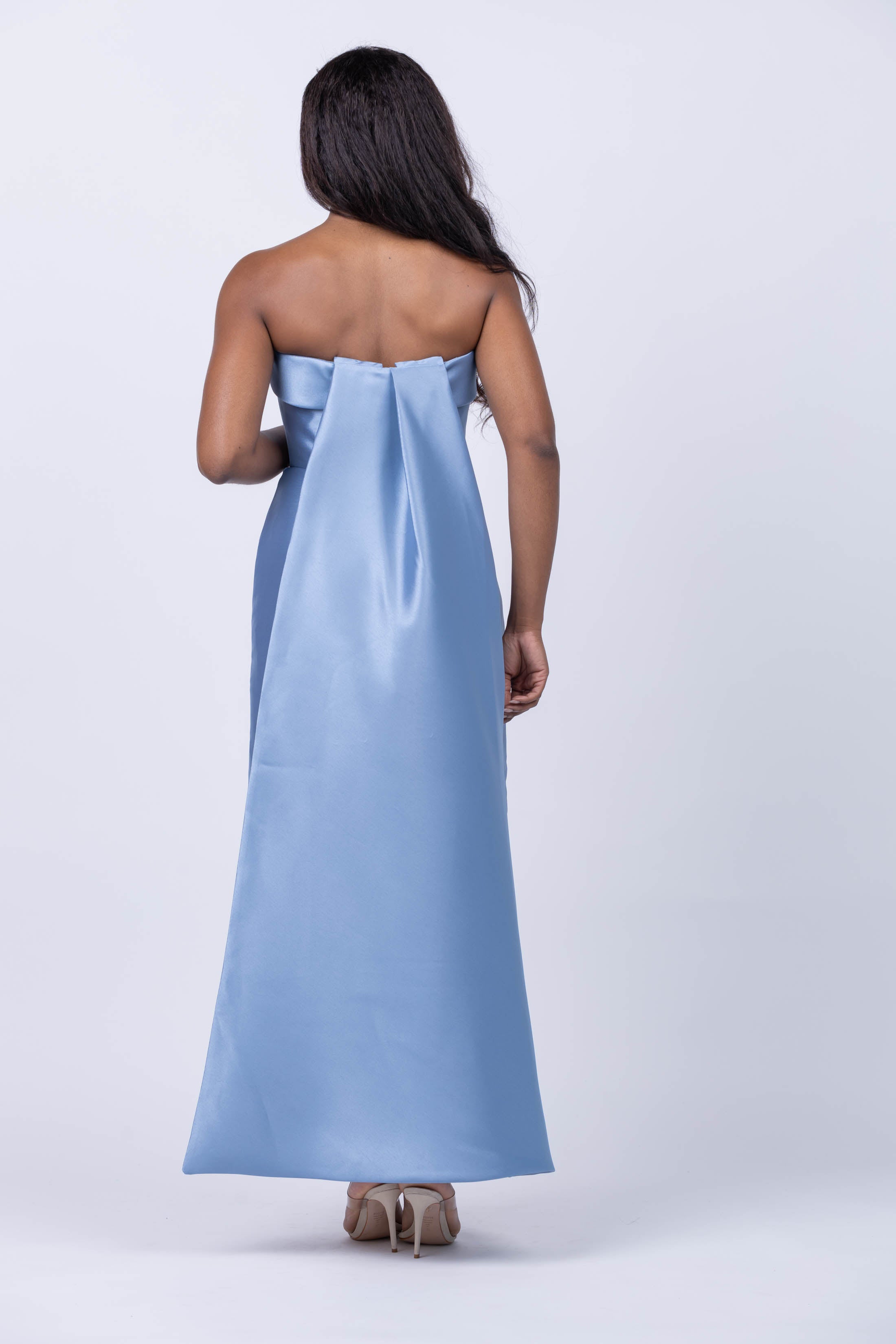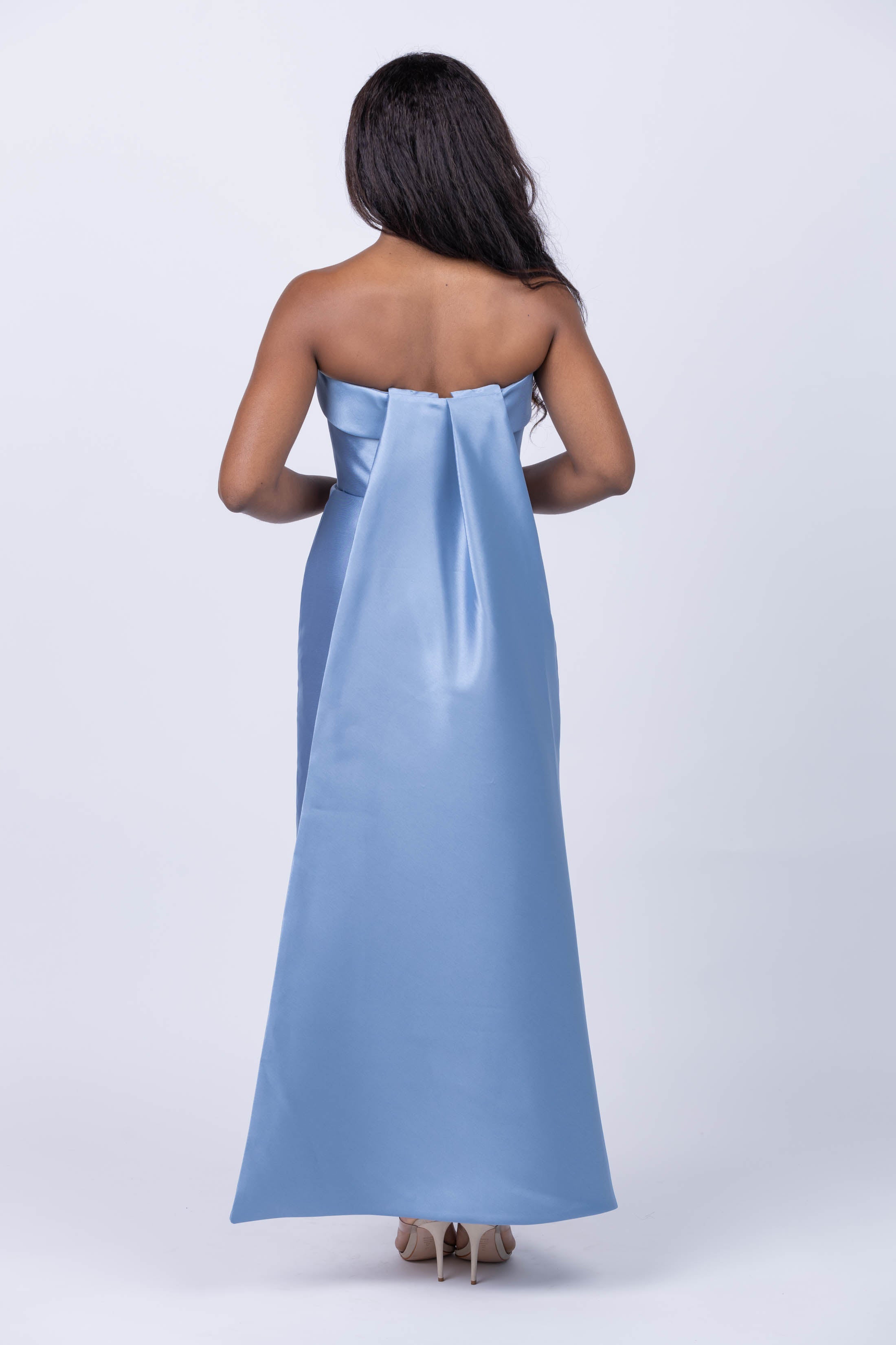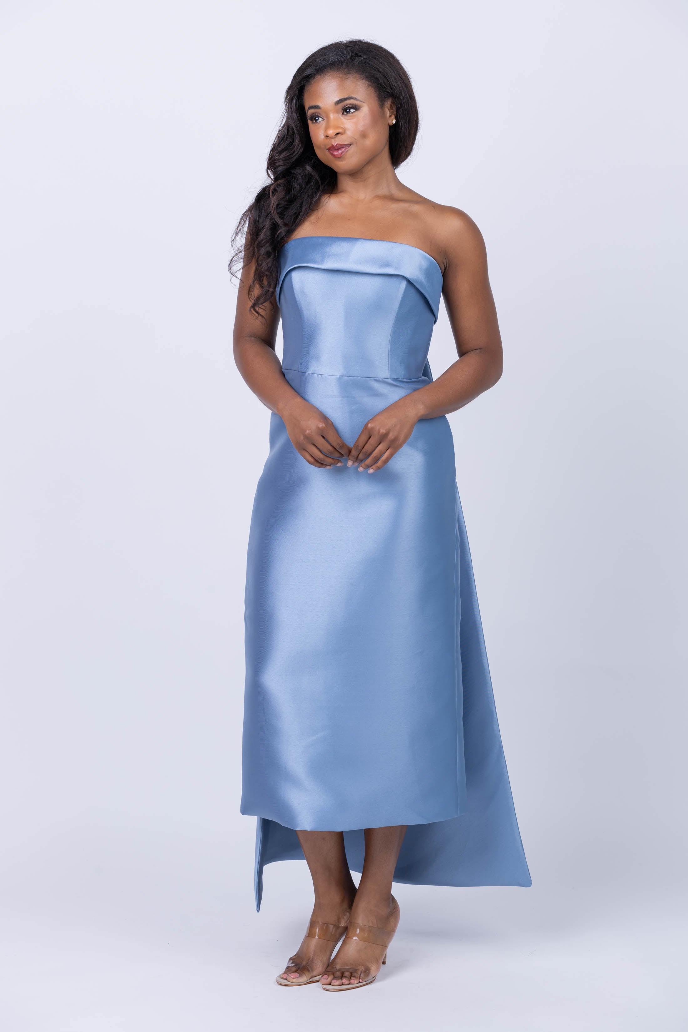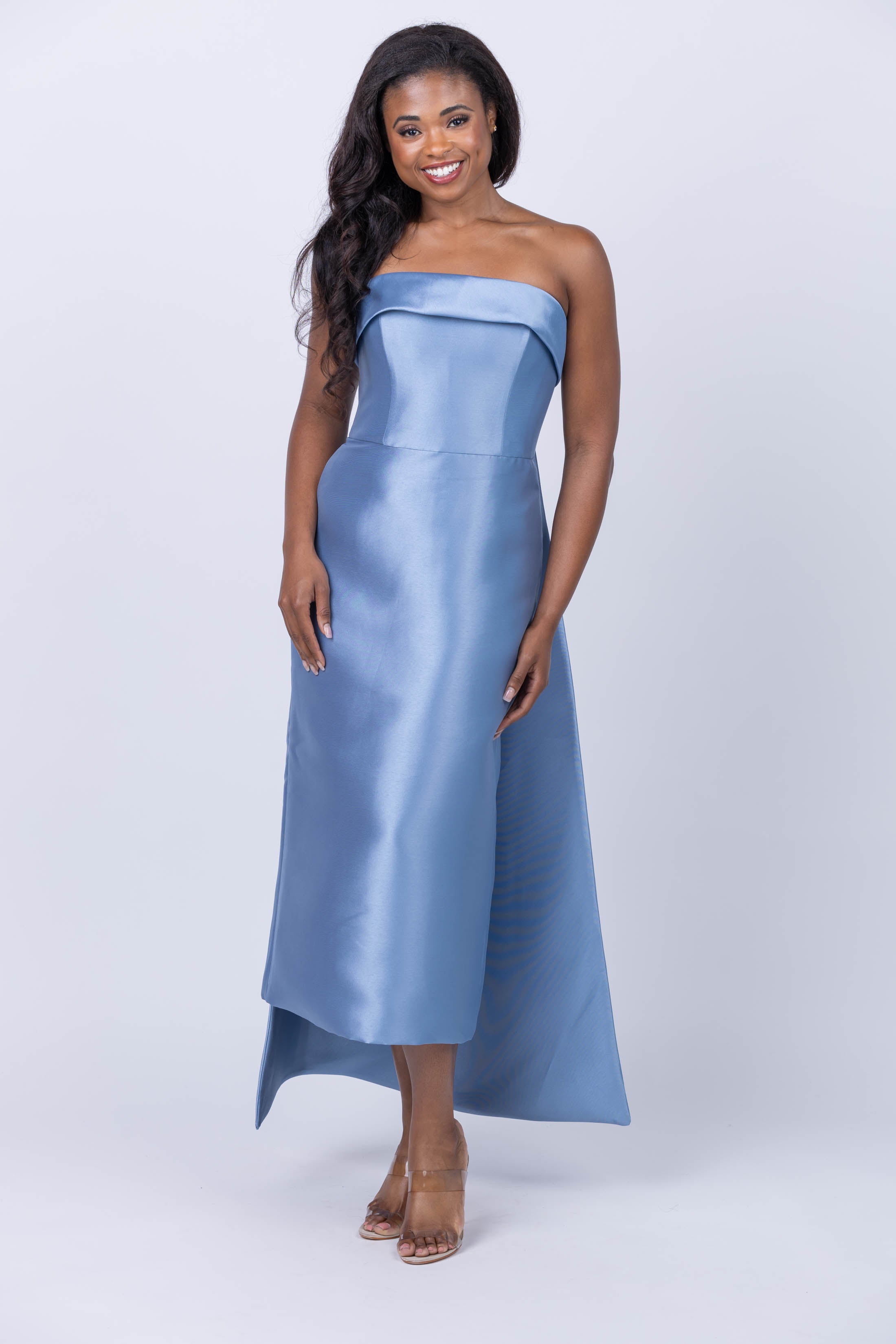 Discover timeless grace with the Amsale Dress in SMB. This elegant piece is adorned with a perfect blue color and a back drape detail for added sophistication. Let the classic beauty of this dress make you look and feel your best.