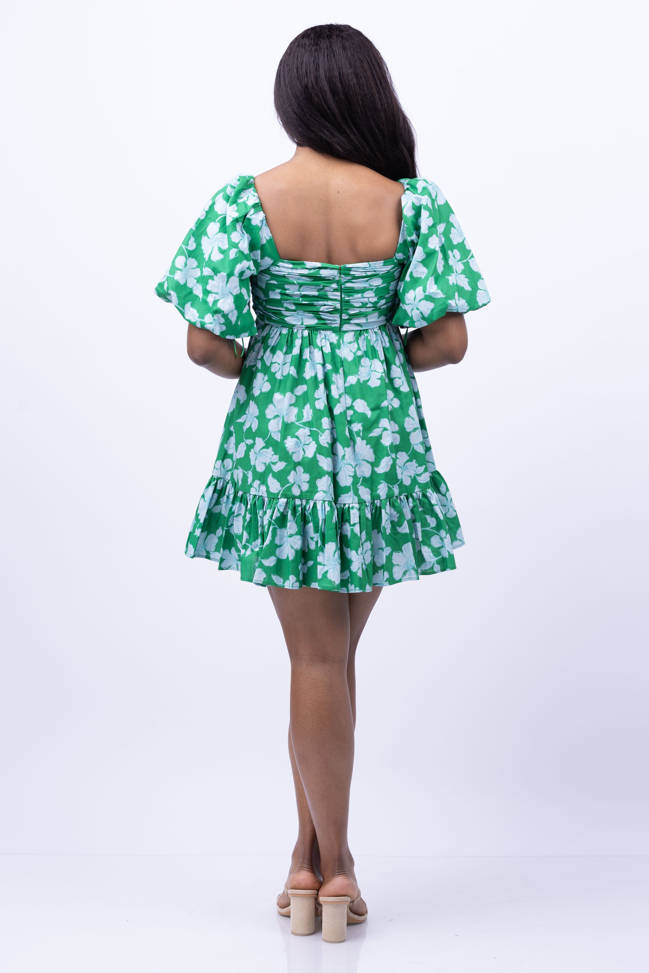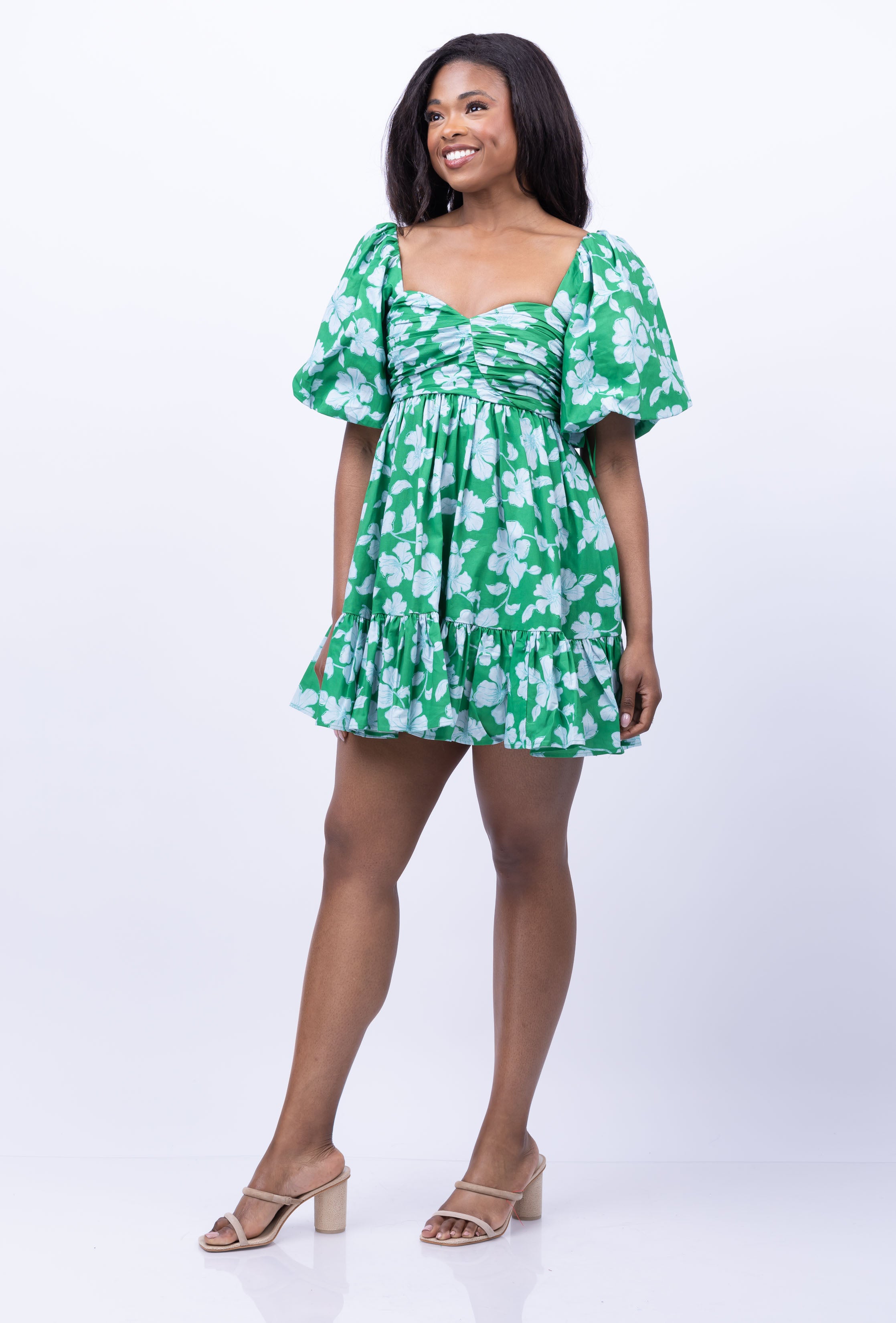 Experience the exquisite charm of the Amur Martine Mini Dress in Frog Flower! This stunning mini dress features a sweetheart neckline and puff sleeves, creating a flattering style that will enhance your figure. Adorned with lush green florals, this dress will bring out your natural beauty and leave you feeling confident and beautiful. Embrace the elegance and grace of this must-have piece.