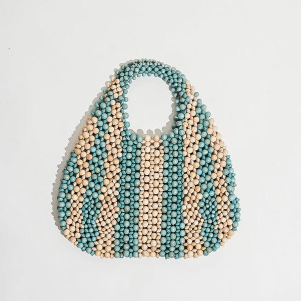 Show off your stylish stripes with the Luha Stripes handbag! This unique bag has woven wood beads arranged in eye-catching summery stripes. Get ready to turn heads and make a statement with this bold and fun accessory!