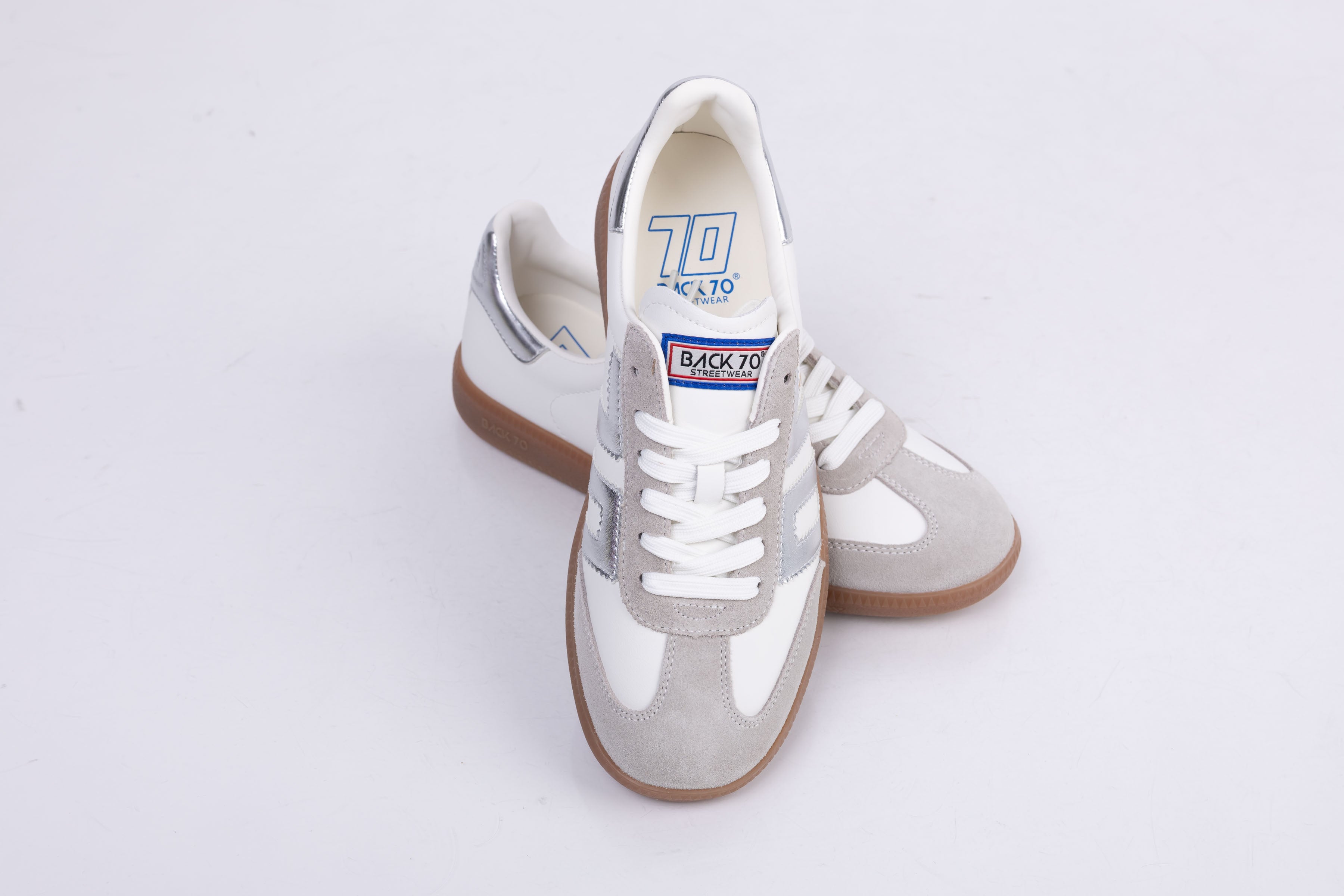 Elevate your street style with the Back 70 Cloud Sneakers in Light Grey. Inspired by European fashion and classic soccer shoes, these kicks effortlessly blend retro coolness and modern edge. Stand out with bold color blocking and make a statement wherever you go.
