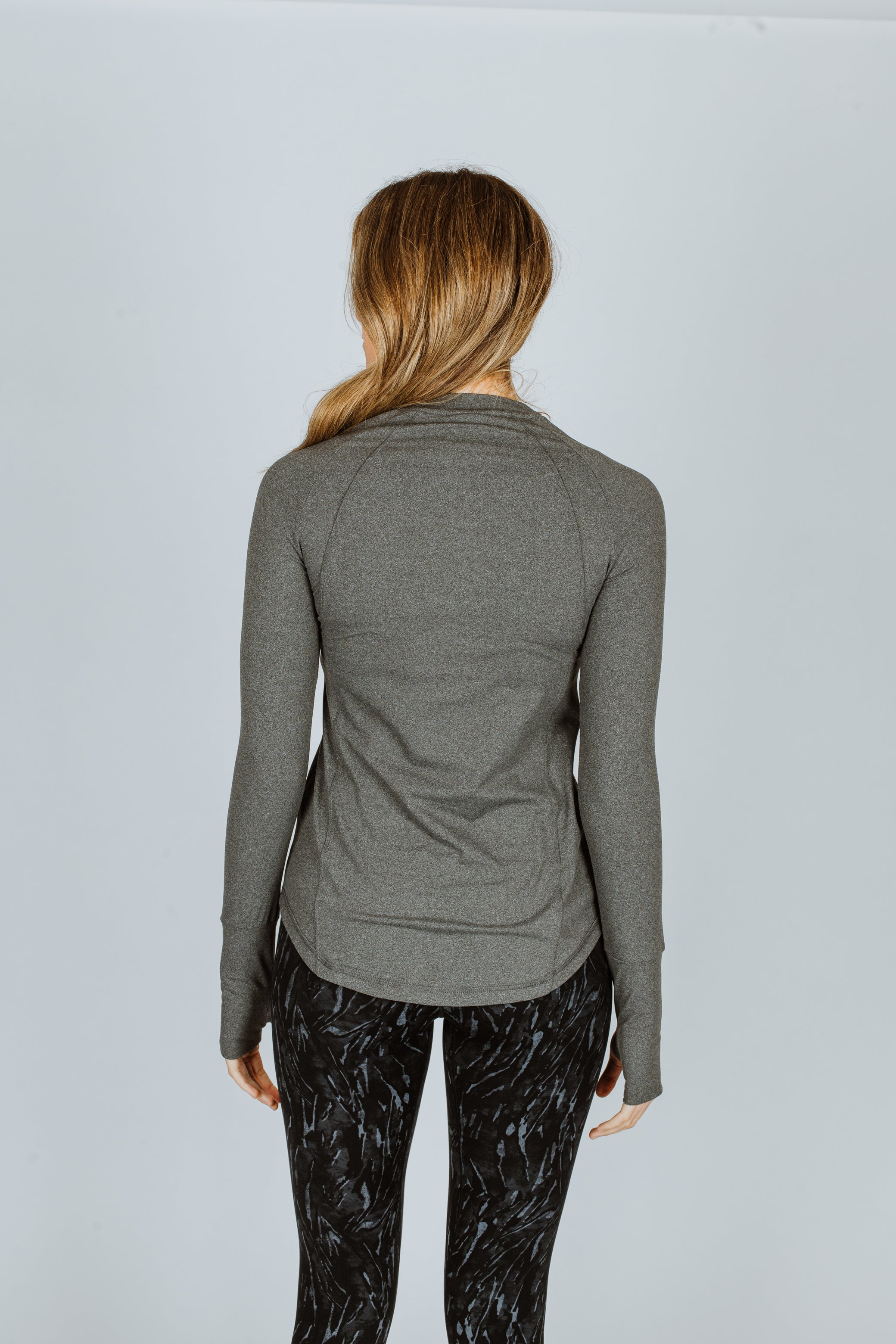 A stylish and timeless lightweight workout layer, the Bradford is a relaxed fit, long sleeved crewneck with a flattering, scooped back hem. Ashley is wearing a size small!