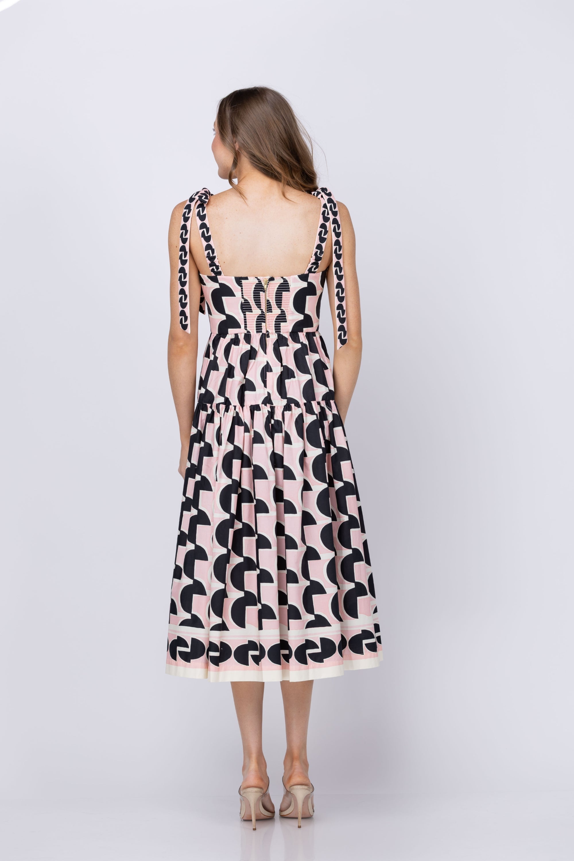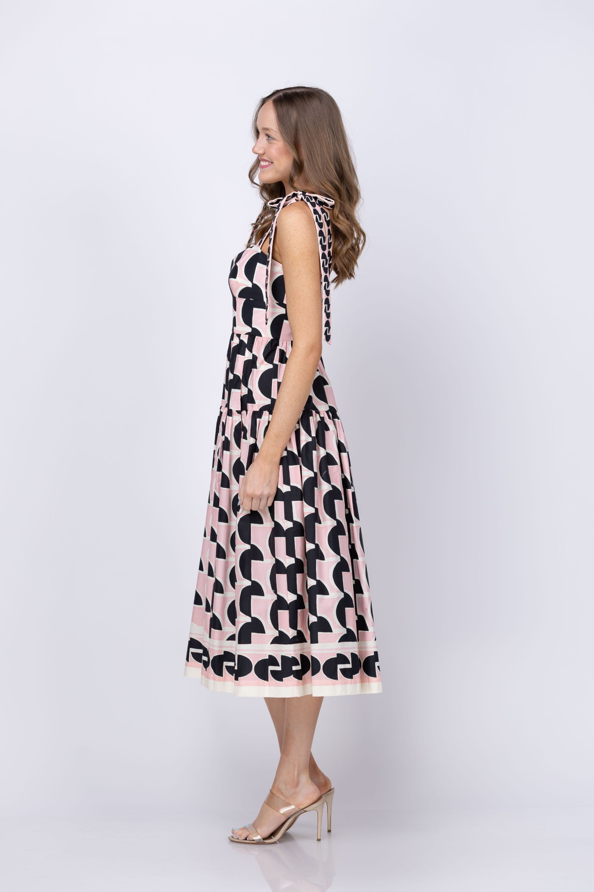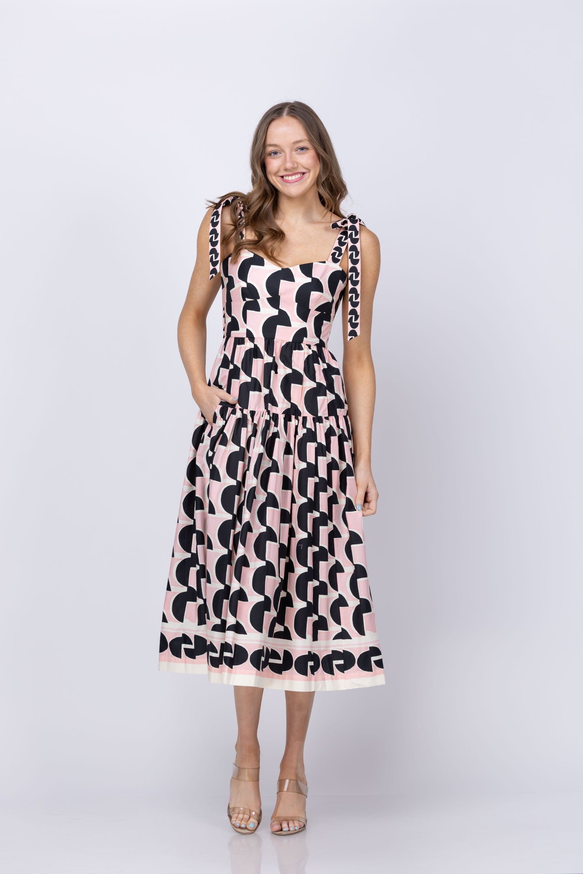 The Cara Cara Faiza Dress brings effortless elegance to your wardrobe with its striking Forma Geo Blush print. Crafted from 100% cotton, this dress offers breathable comfort perfect for warm weather styling. The geometric pattern adds visual interest while the soft blush tones keep the look refined and versatile. Whether dressed up for an occasion or down for everyday wear, this piece transitions seamlessly through your day.